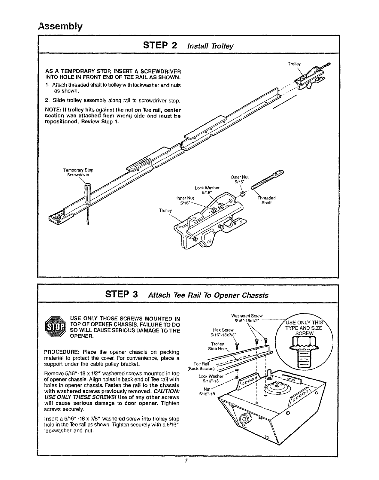 BRIEFLY, THEN WON'T WORK 2. The trolley may be jammed into stop bolts. Putl or push on door while motor is