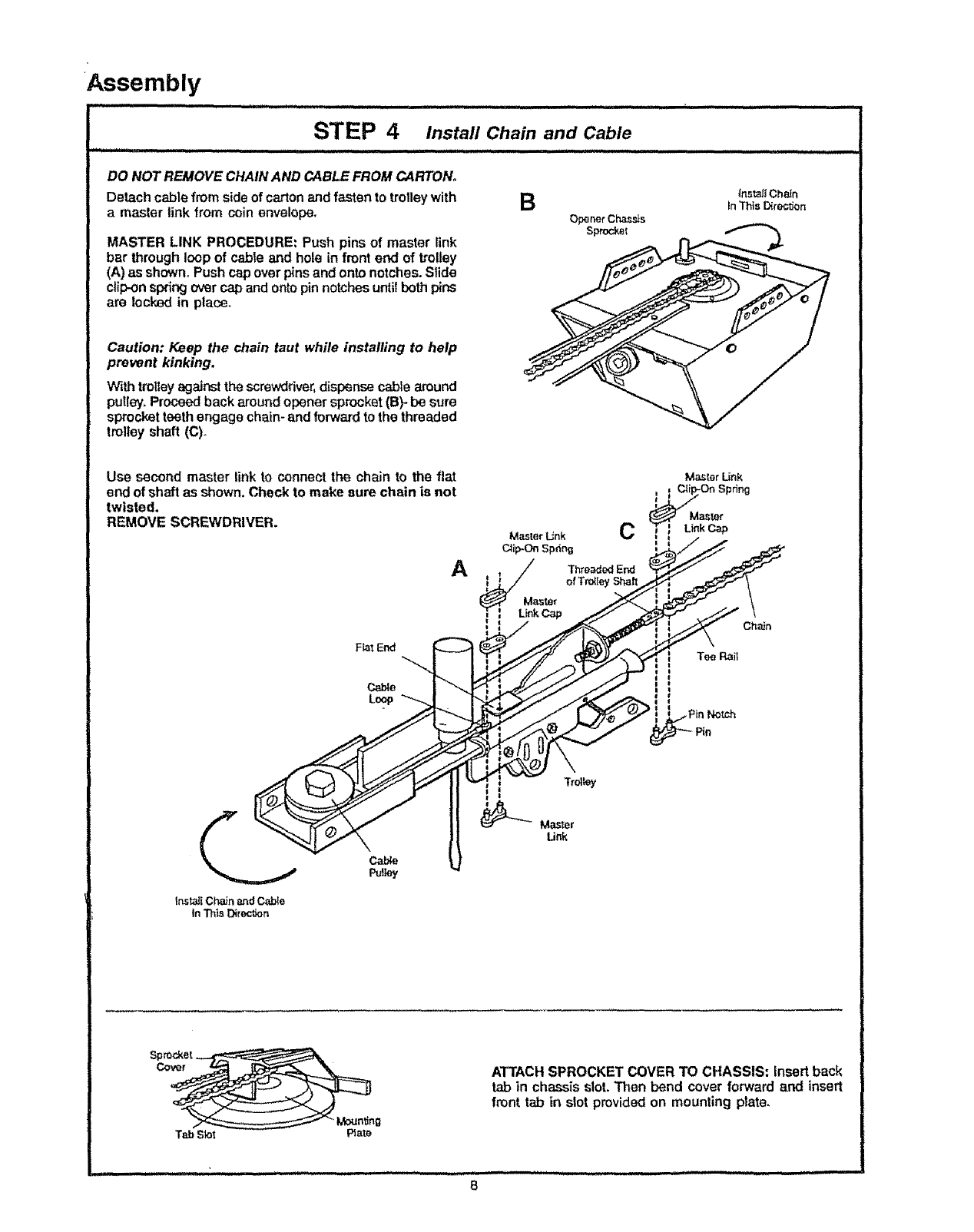 I it is normal for chain to droop slightly in the closed door position Use emergency
