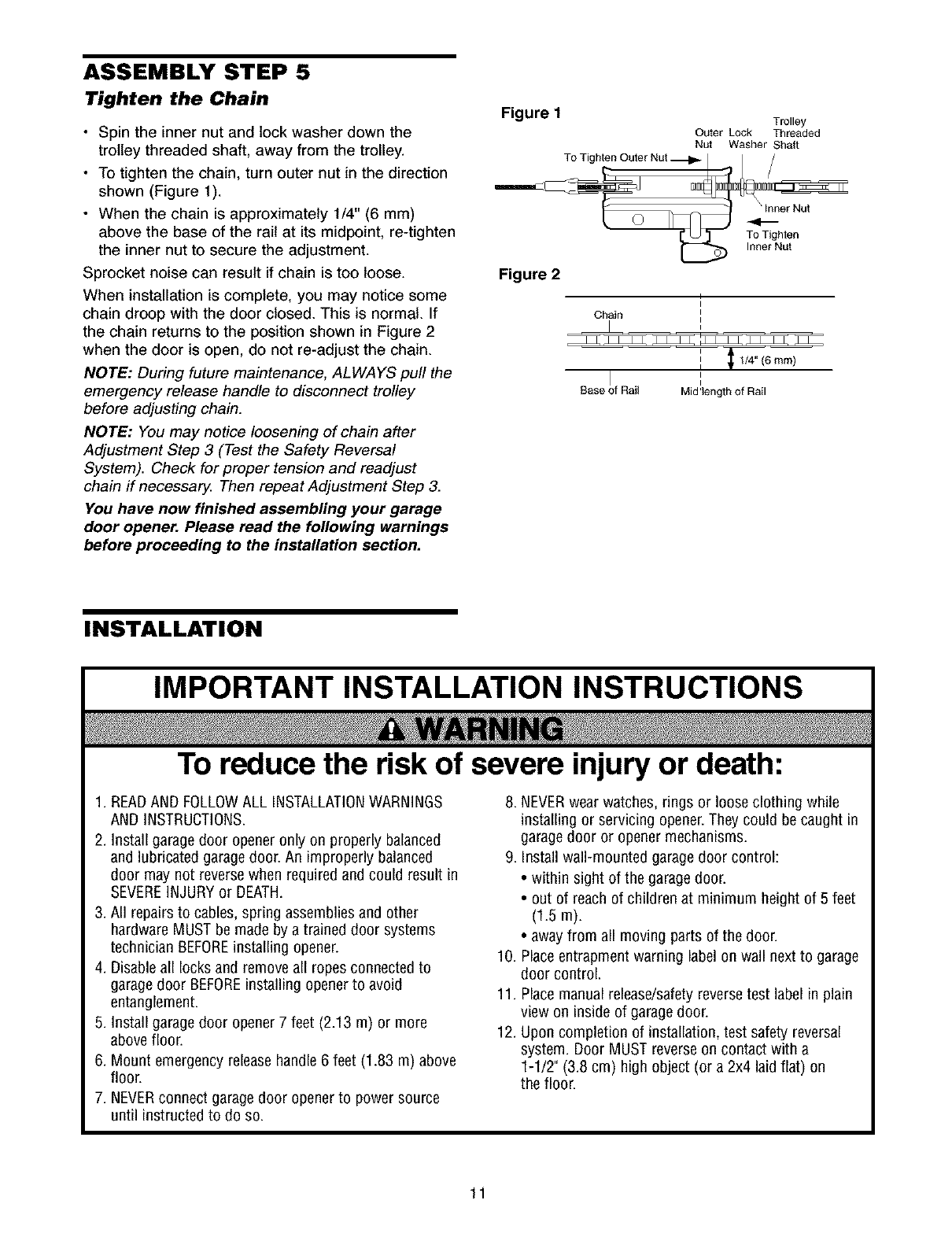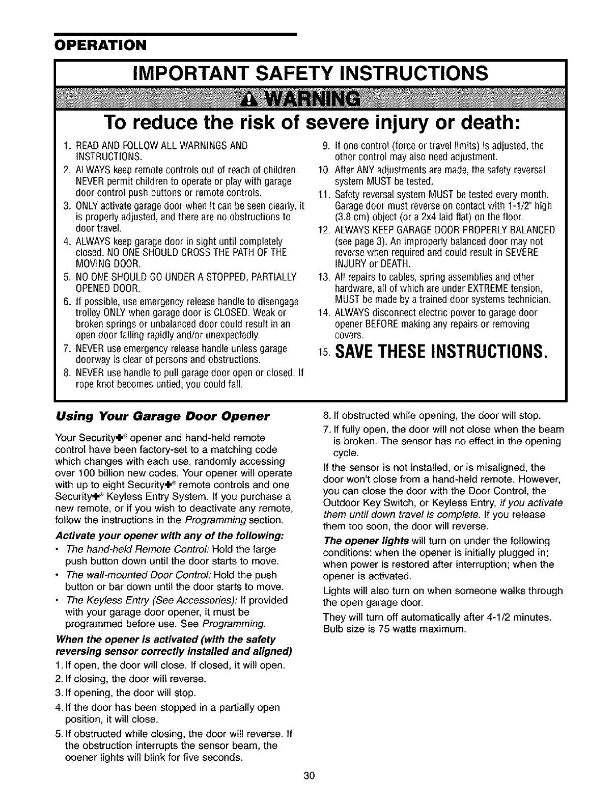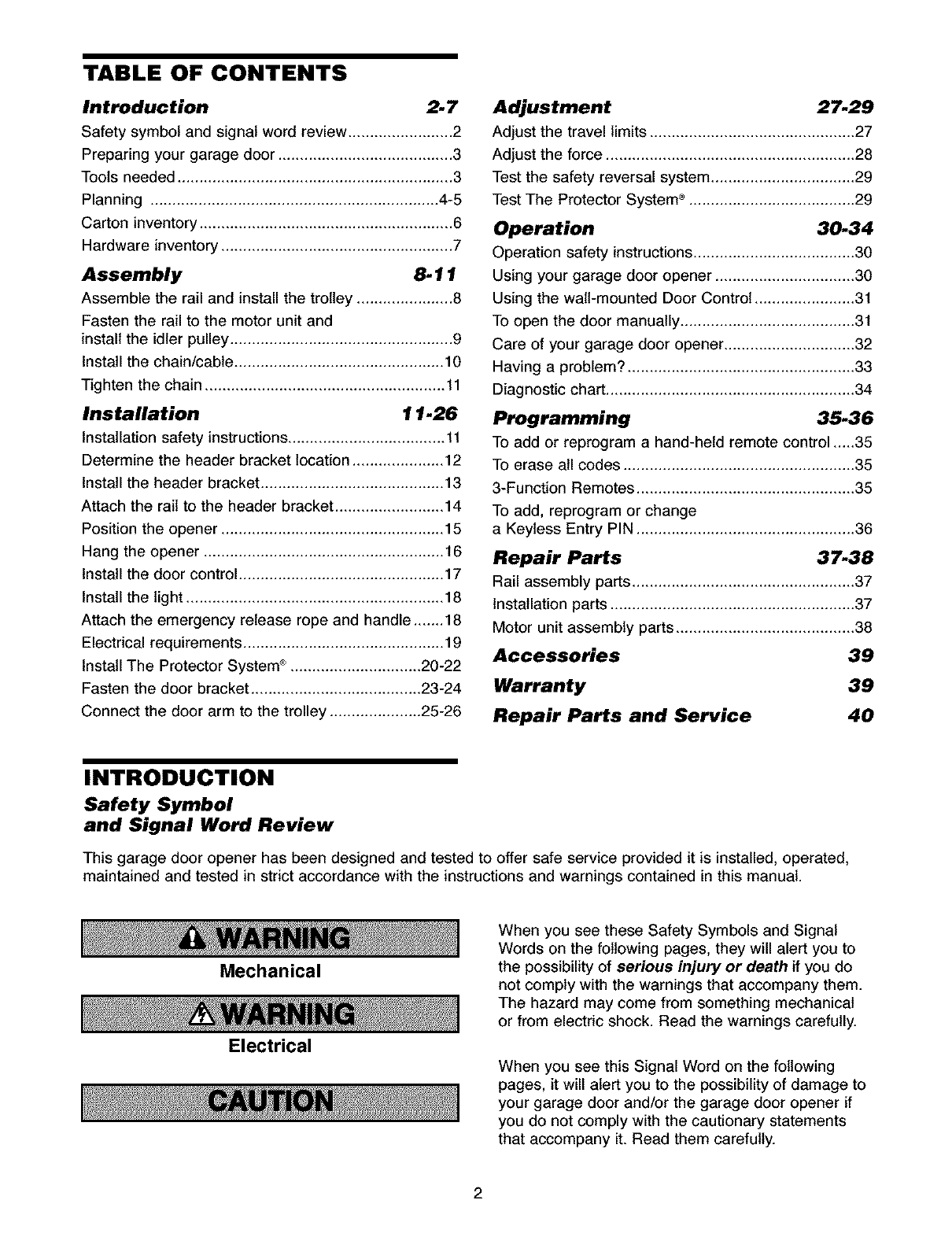 This garage door opener has been designed and tested to offer safe service provided it is installed, operated,