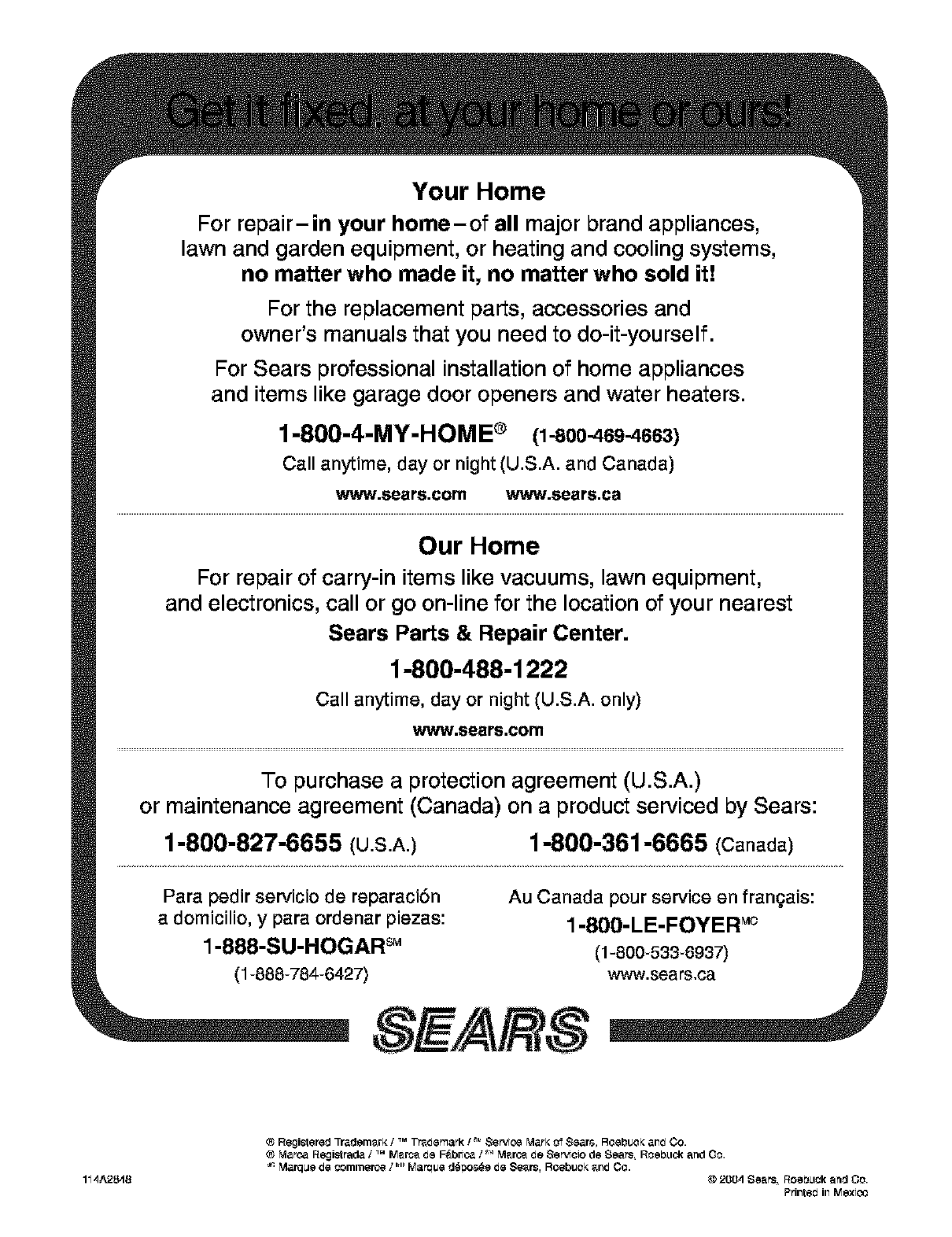 ® Marca Registrada !_" M_rc_ de F_brica ! _ M_rc_ de 8ervicio de Sears, Roeb_lck arid Co.