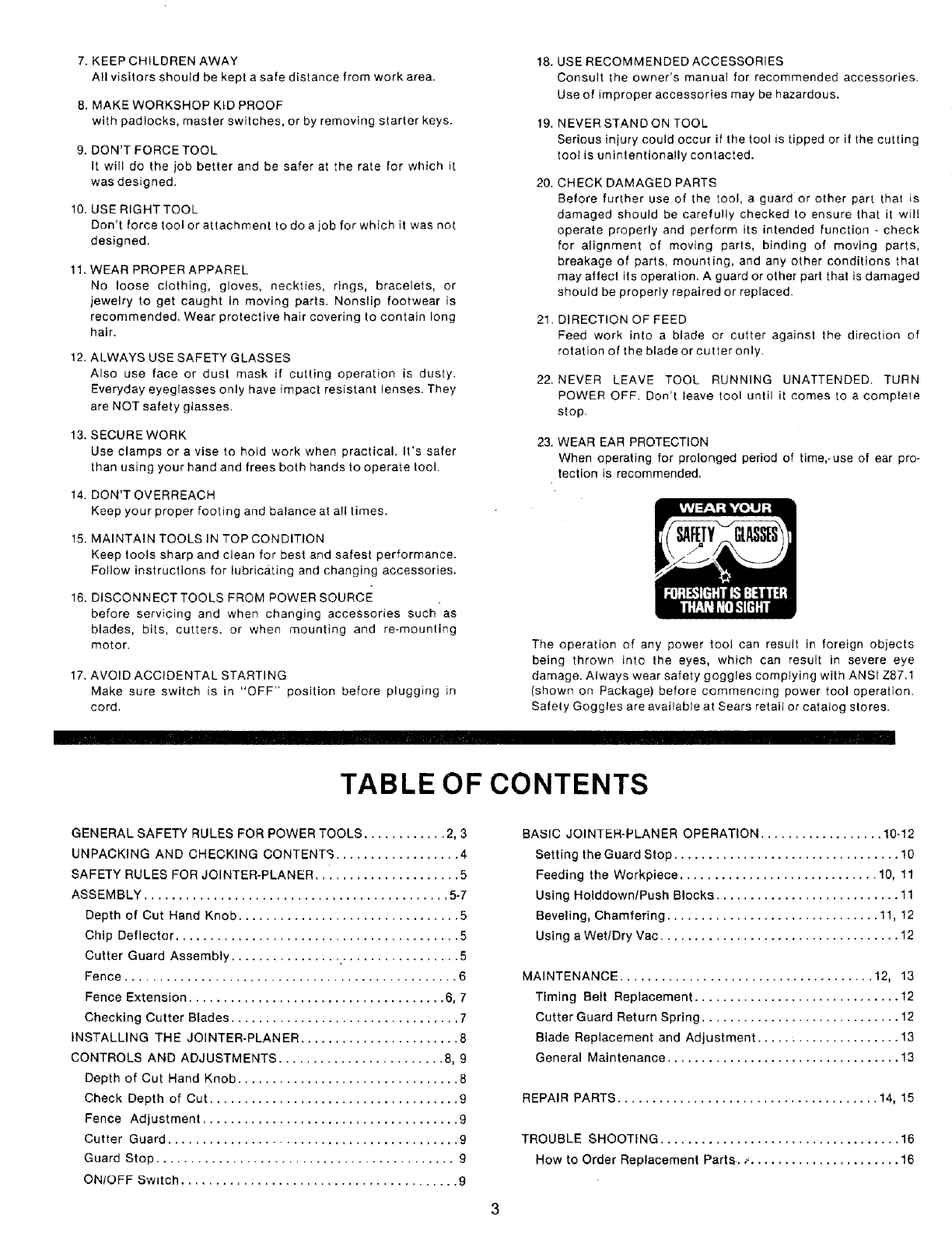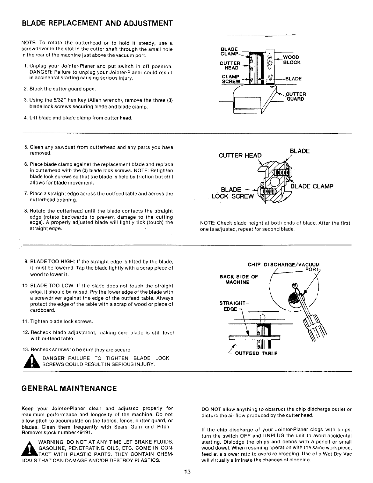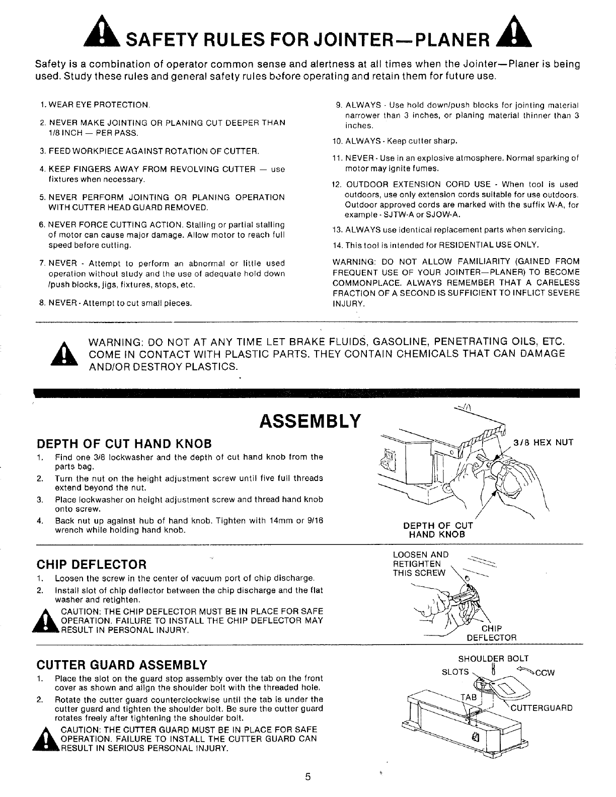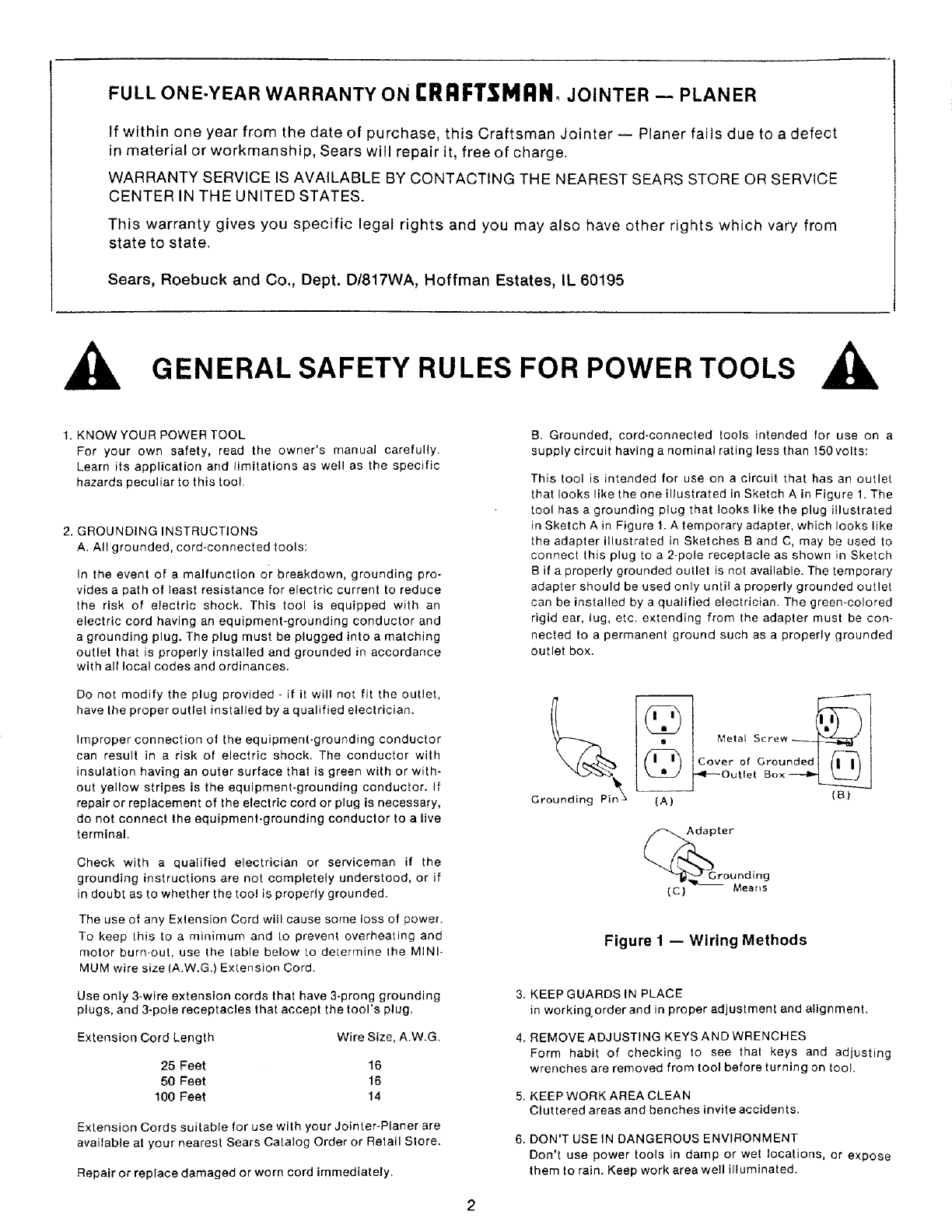 CRAFTSMAN Jointer/Planer Manual L0806251 CRAFTSMAN Jointer/Planer Owner's Manual, CRAFTSMAN Jointer/Planer installation guides