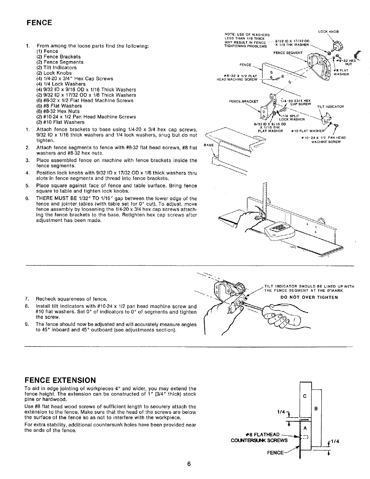 90° and 45° cuts inaccurate 1. Fenceandtilt indicators not adjusted