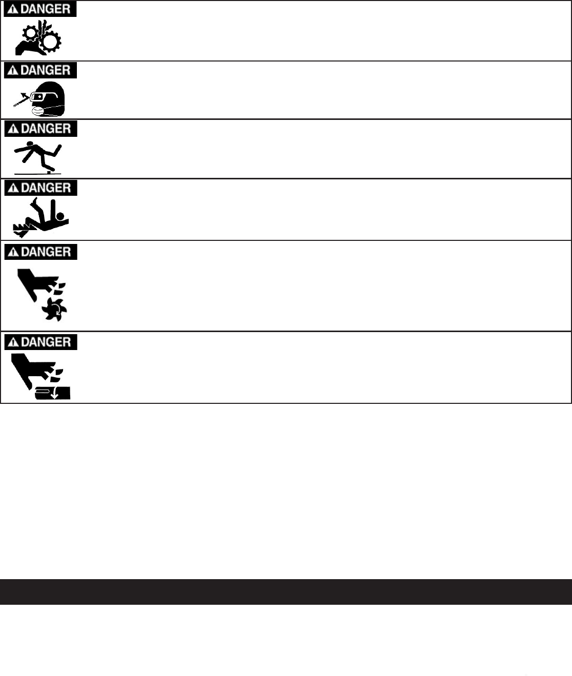 Never wear loose clothing or jewelry that might get caught in moving parts. Rubber-soled footwear is recommended