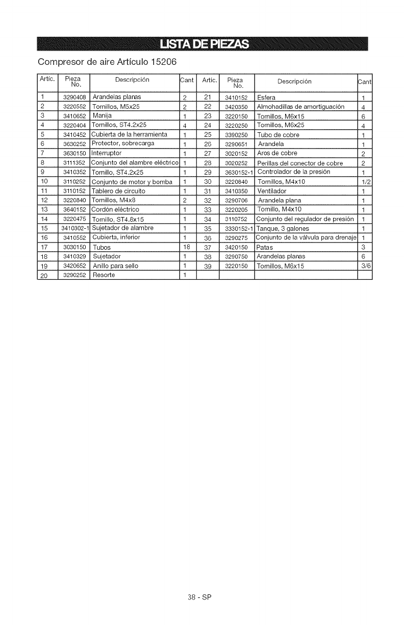 Attic. Pieza Descripci6n Cant Artic. Pieza Descripcion 3an1