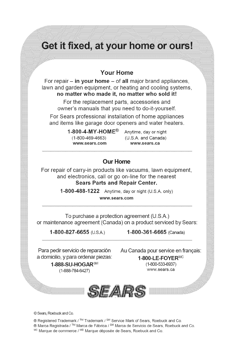 ® Registered Trademark /TMTrademark /SMService Mark of Sears, Roebuck and Co.