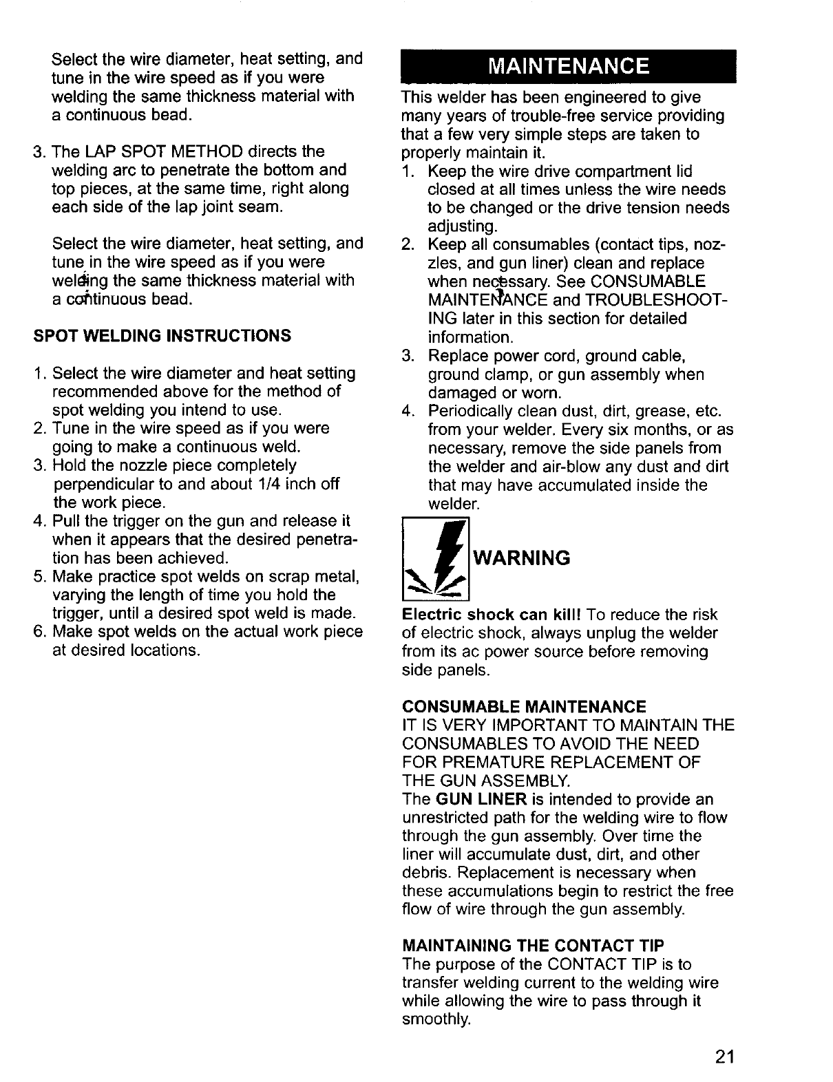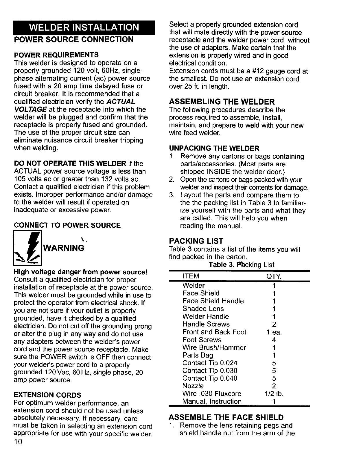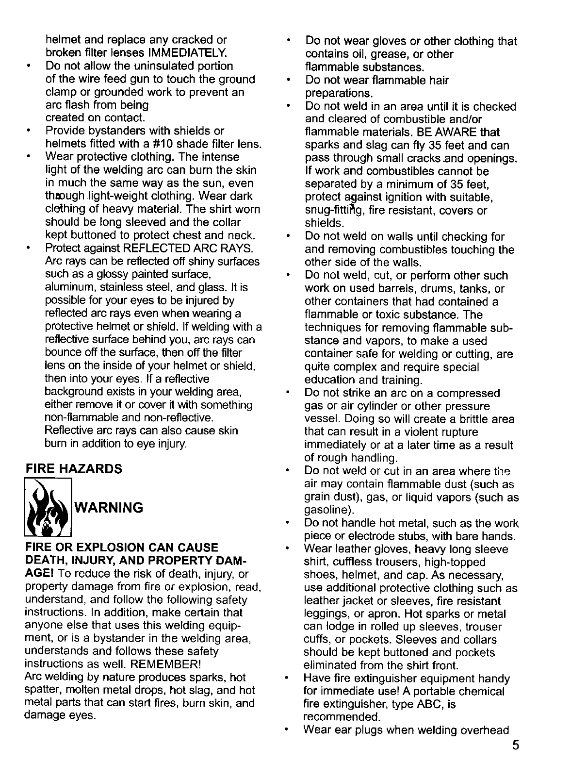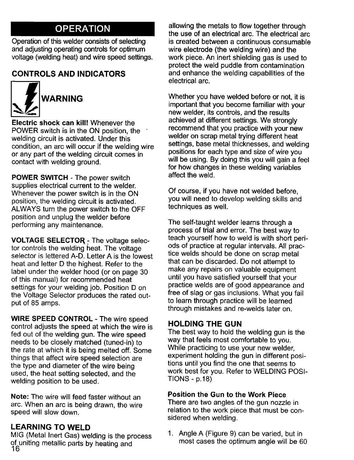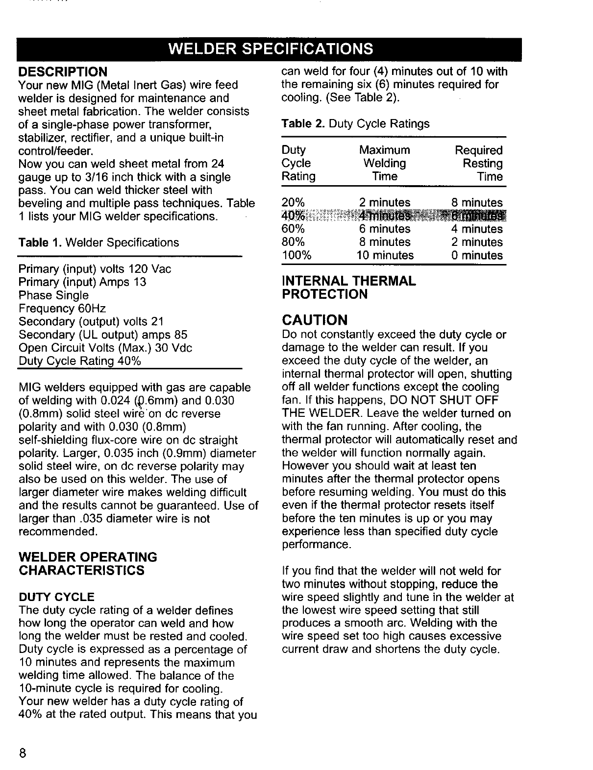wire feed welder and gives instructions on set-up, installation and actual use of the welder.