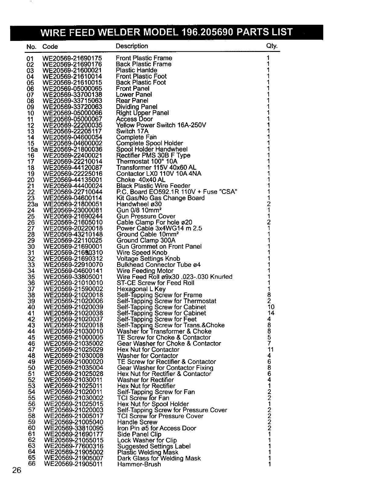 196205690 196205690 CRAFTSMAN WELDER - Manuals and Guides L0403478 View the owners manual for your CRAFTSMAN WELDER #196205690. Home:Tool Parts:Craftsman Parts:Craftsman WELDER Manual