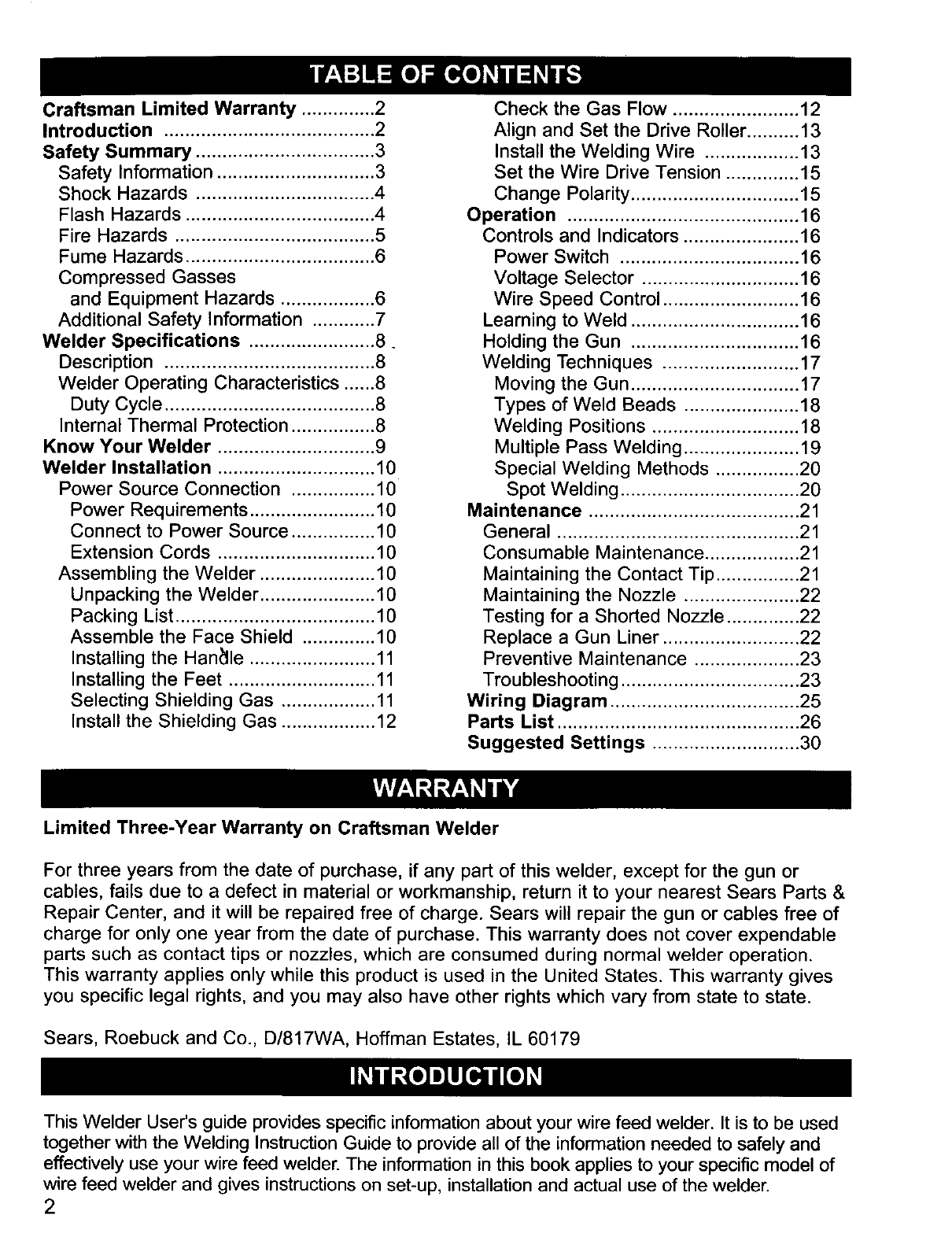 This Welder User's guide provides specific information about your wire feed welder. It is to be used