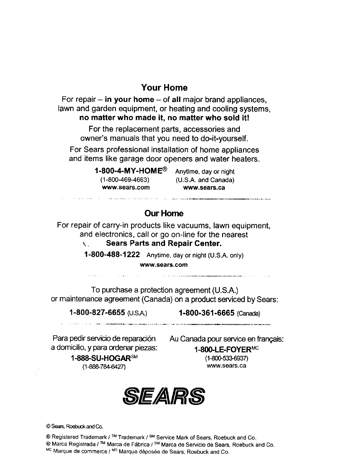 ® Registered Trademark /TMTrademark /SMService Mark of Sears, Roebuck and Co.