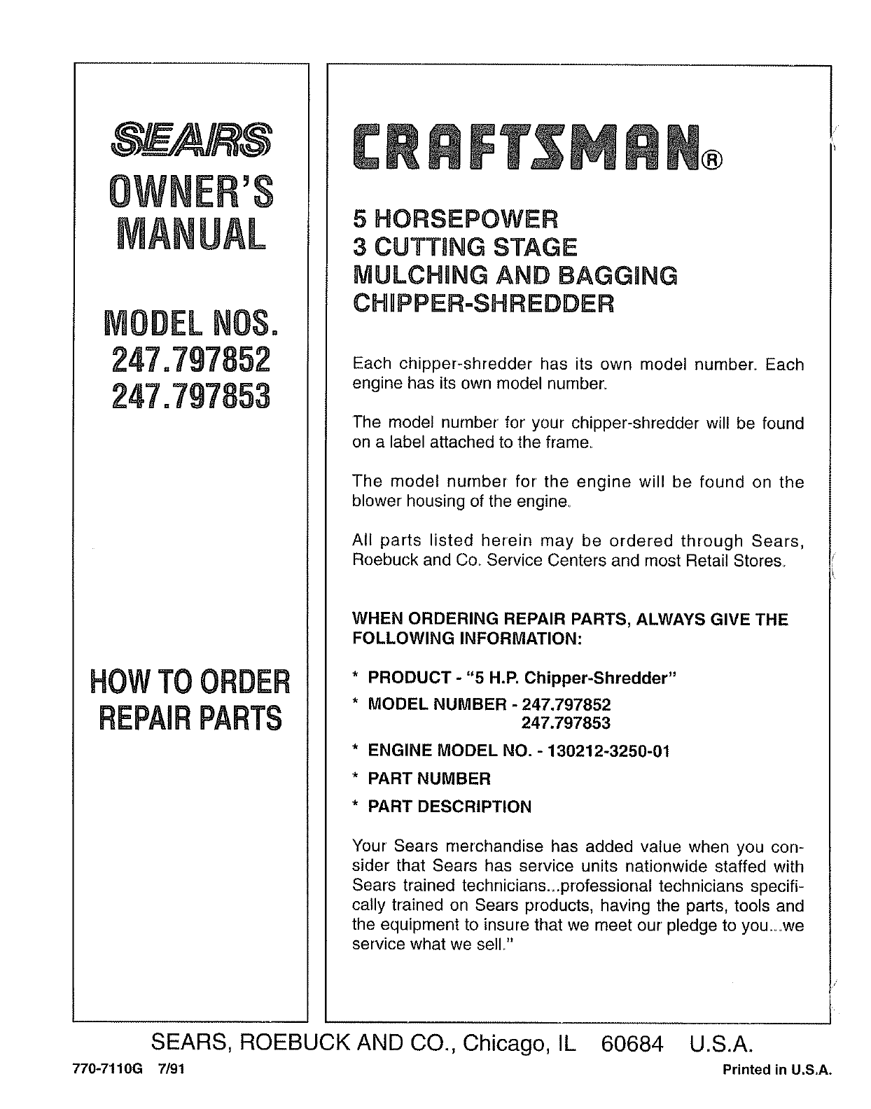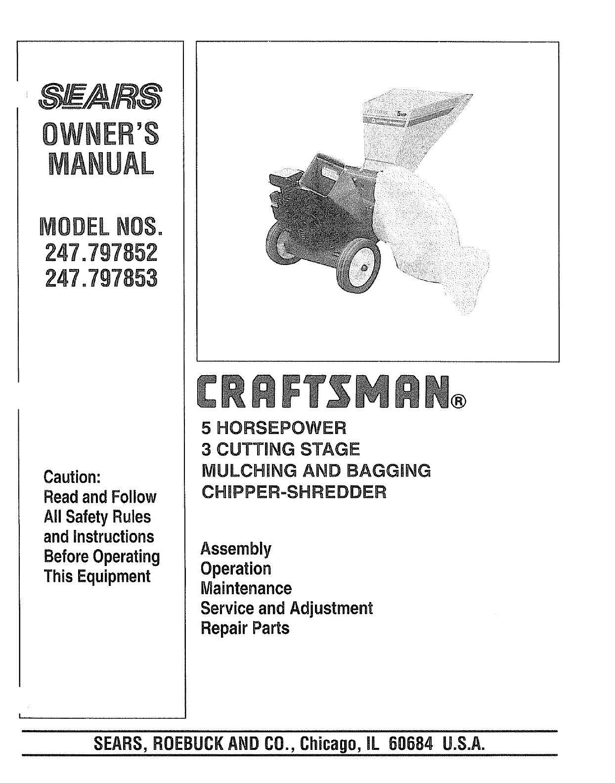247797852 247797852 CRAFTSMAN CHIPPER SHREDDER - Manuals and Guides L0807210 View the owners manual for your CRAFTSMAN CHIPPER SHREDDER #247797852. Home:Lawn & Garden Parts:Craftsman Parts:Craftsman CHIPPER SHREDDER Manual