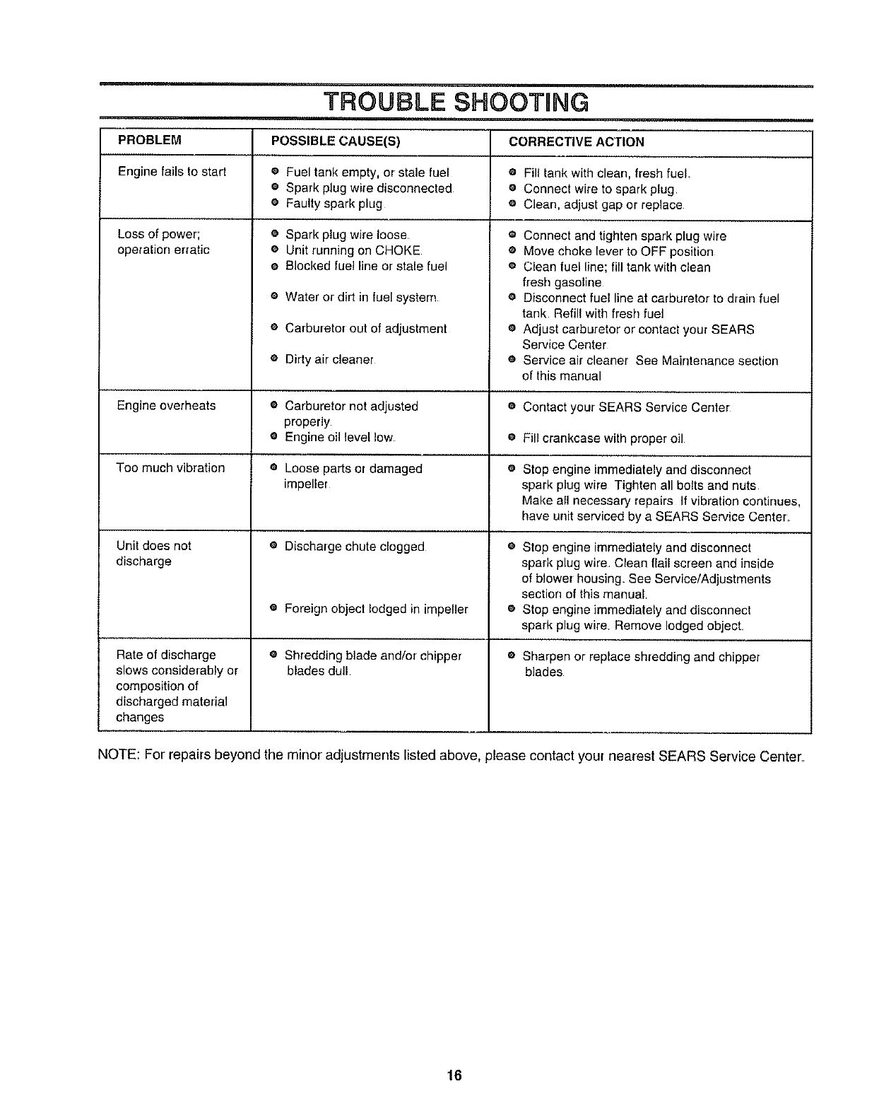 All parts listed herein may be ordered through Sears,