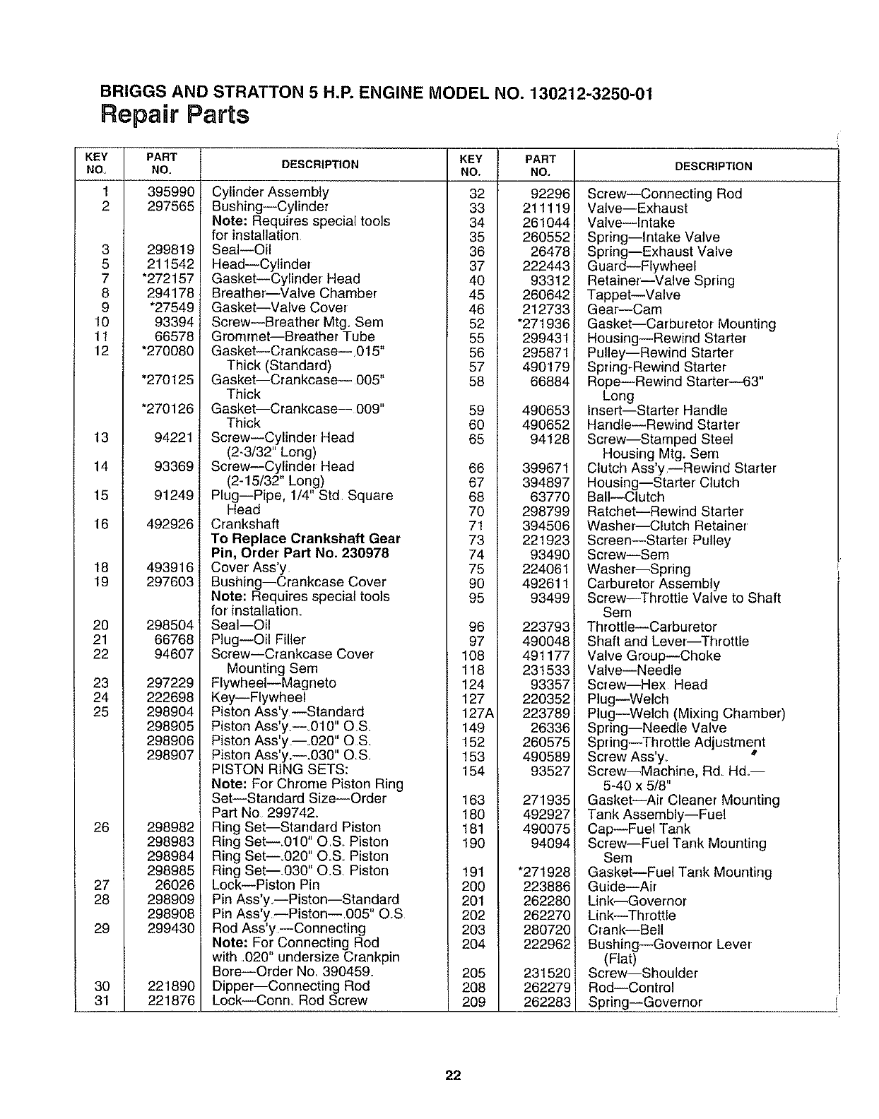 * ENGINE MODEL NO. - 130212-3250-01