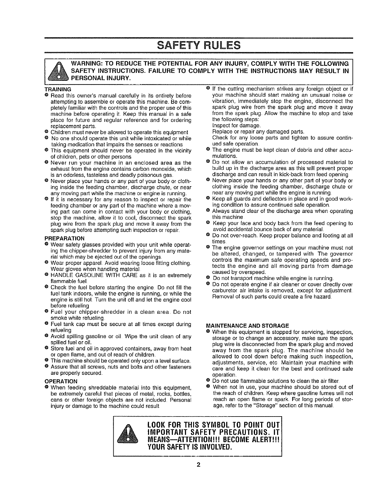 ing the chipper-shredder to prevent injury from any mate-