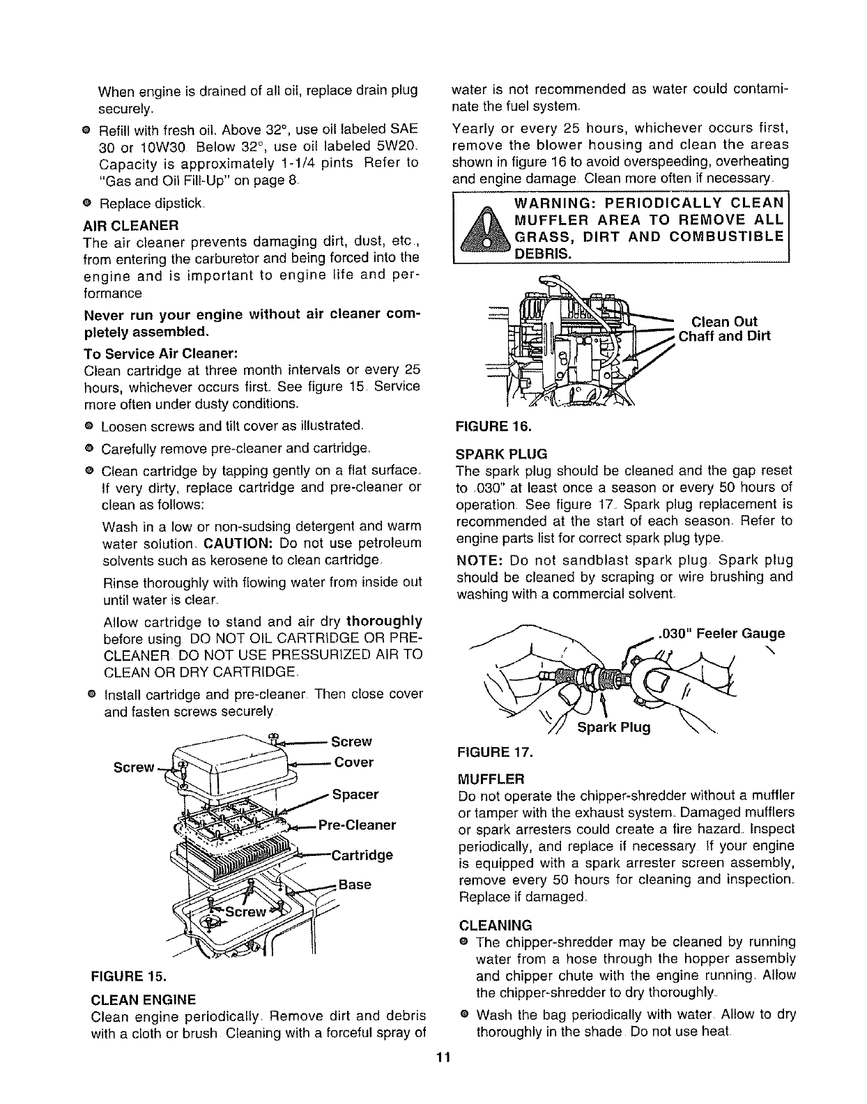 e The engine must be kept clean of debris and other accu-