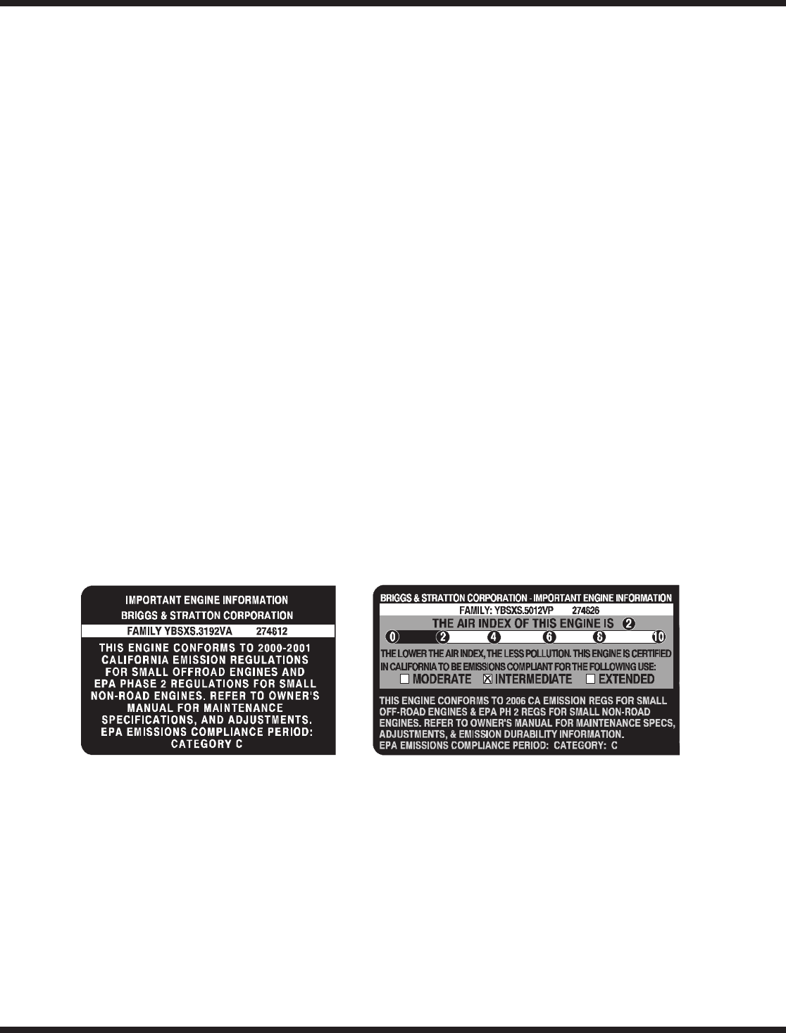 el motor cumple con las reglas de emisión, descontando el mantenimiento adecuado del mismo según las instrucciones de oper-
