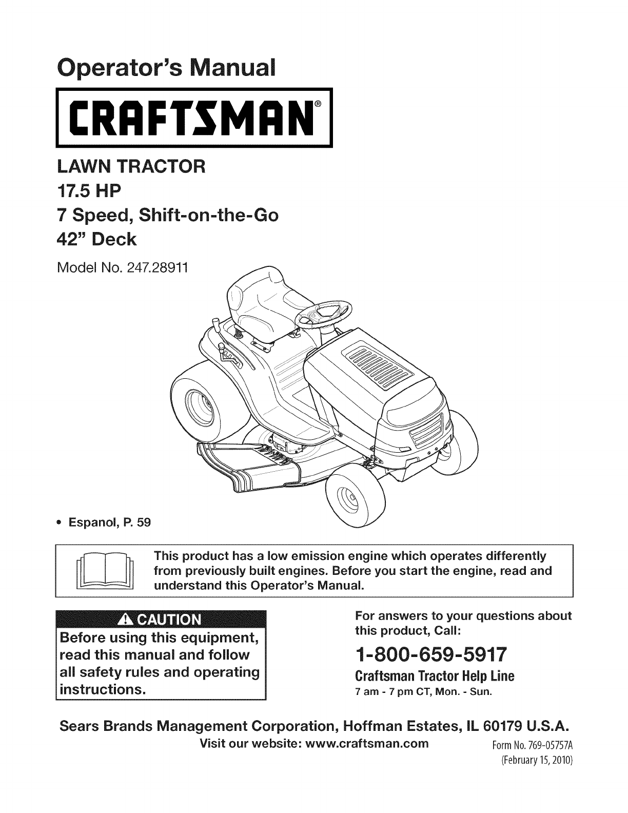 Visit our website: www.craftsman.com FormNo.769-05757A