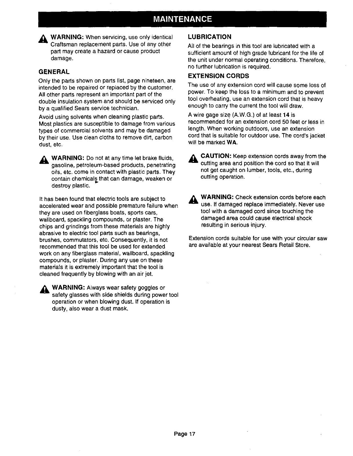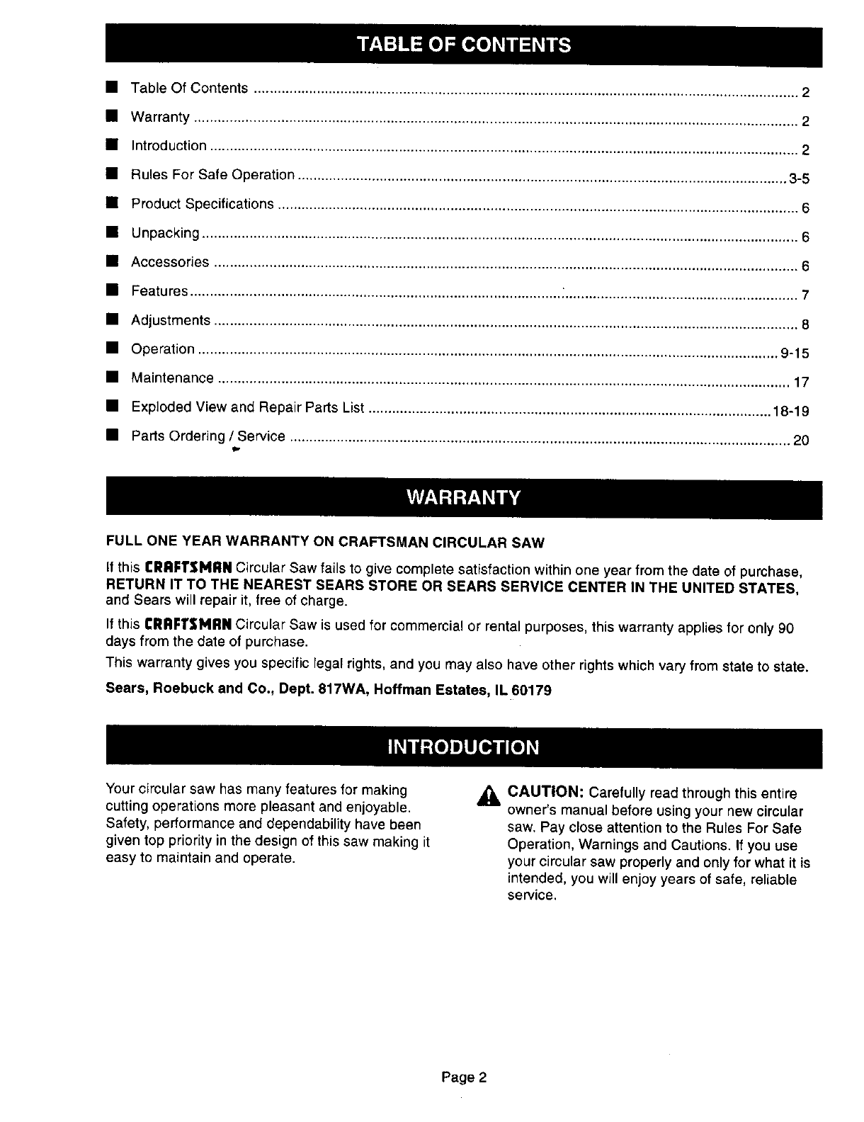 FULL ONE YEAR WARRANTY ON CRAFTSMAN CIRCULAR SAW