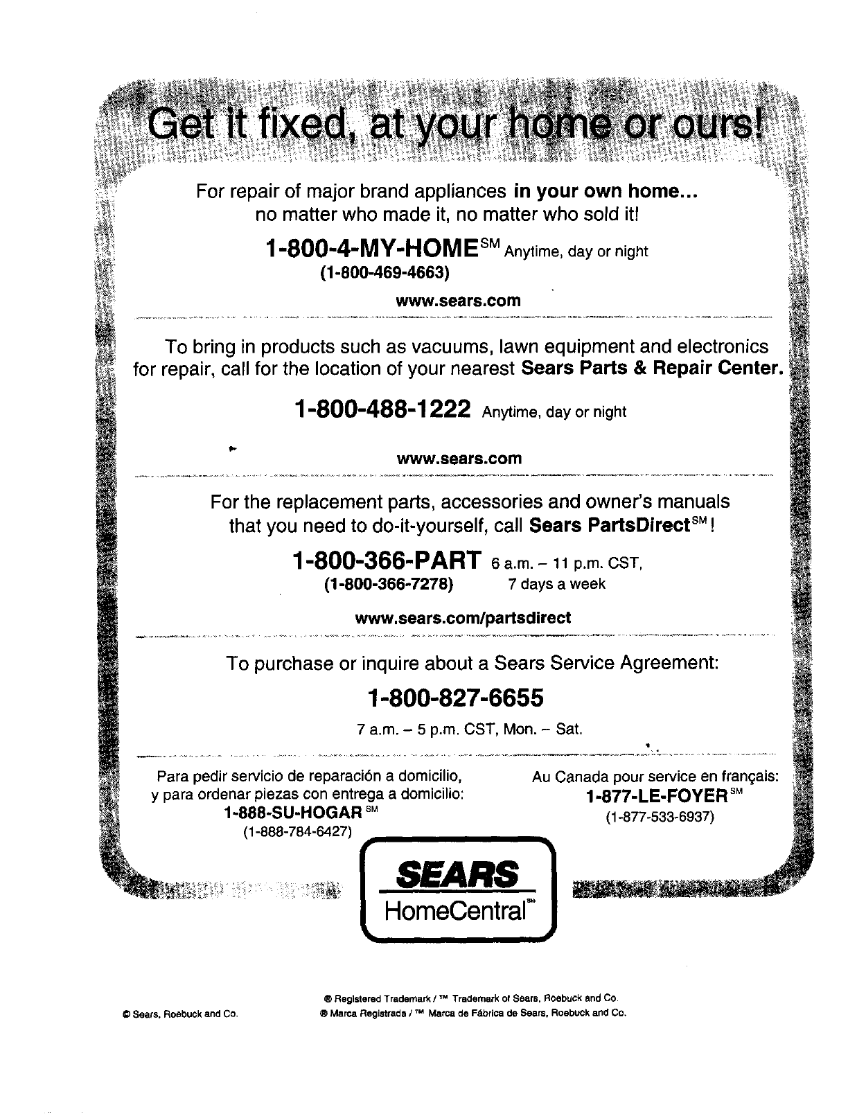 for repair, call for the location of your nearest Sears Parts & Repair Center.