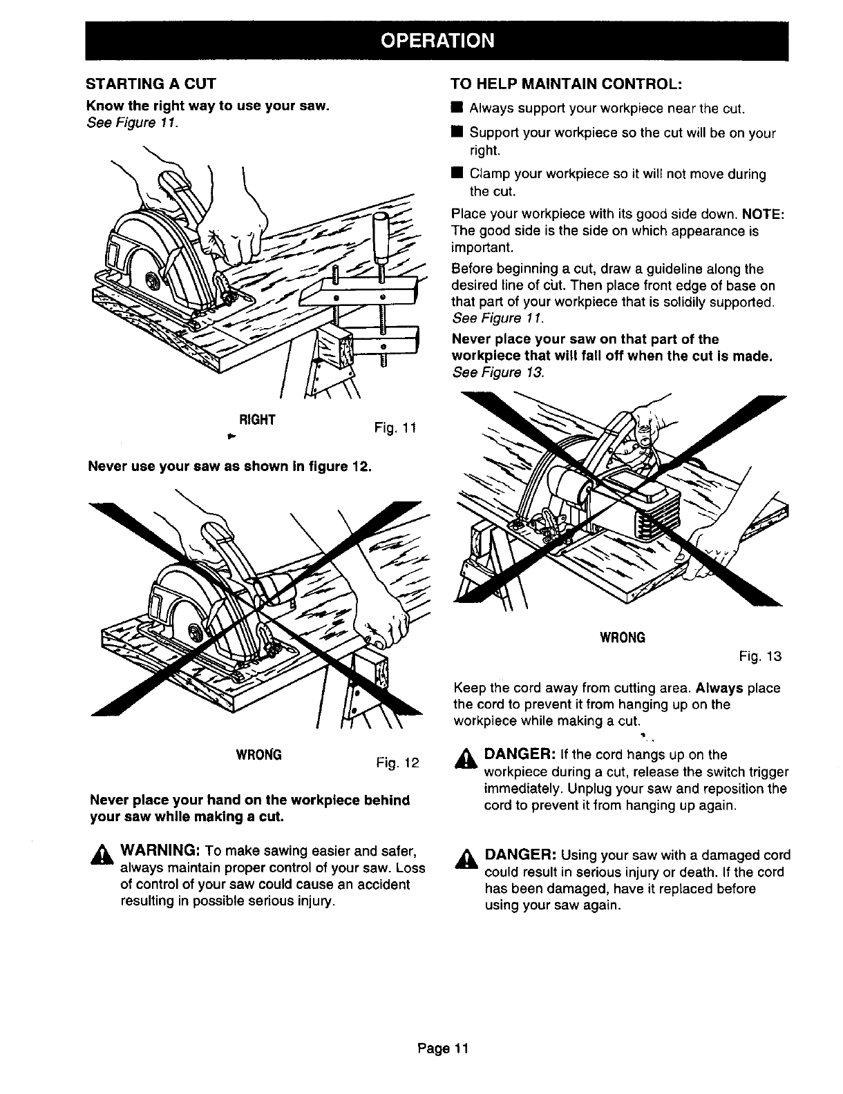 DANGER: Failure to obey a safety warning will result in serious injury to yourself or to others.