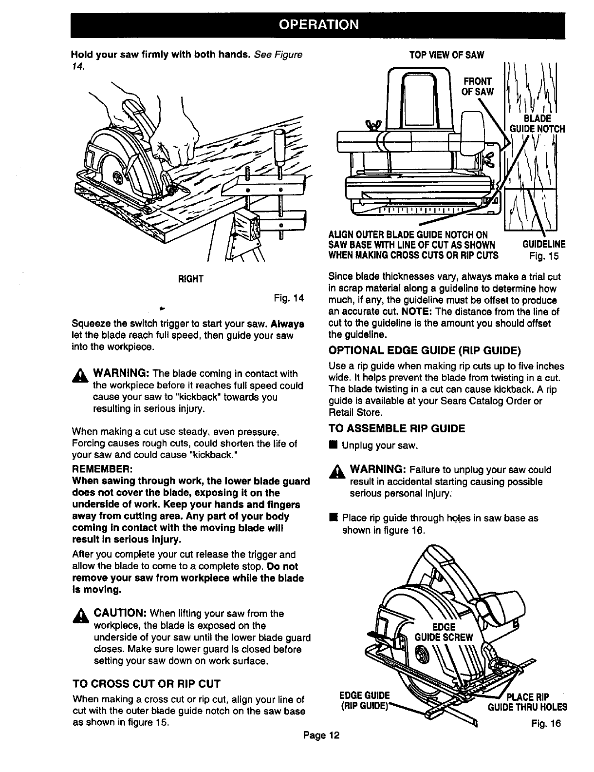 CRAFTSMAN Saw Circular Manual L0090007 CRAFTSMAN Saw Circular Owner's Manual, CRAFTSMAN Saw Circular installation guides
