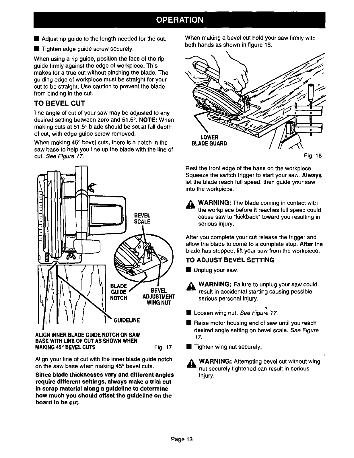 WARNING: Failure to obey a safety warning can result in serious injury to yourself erto others.