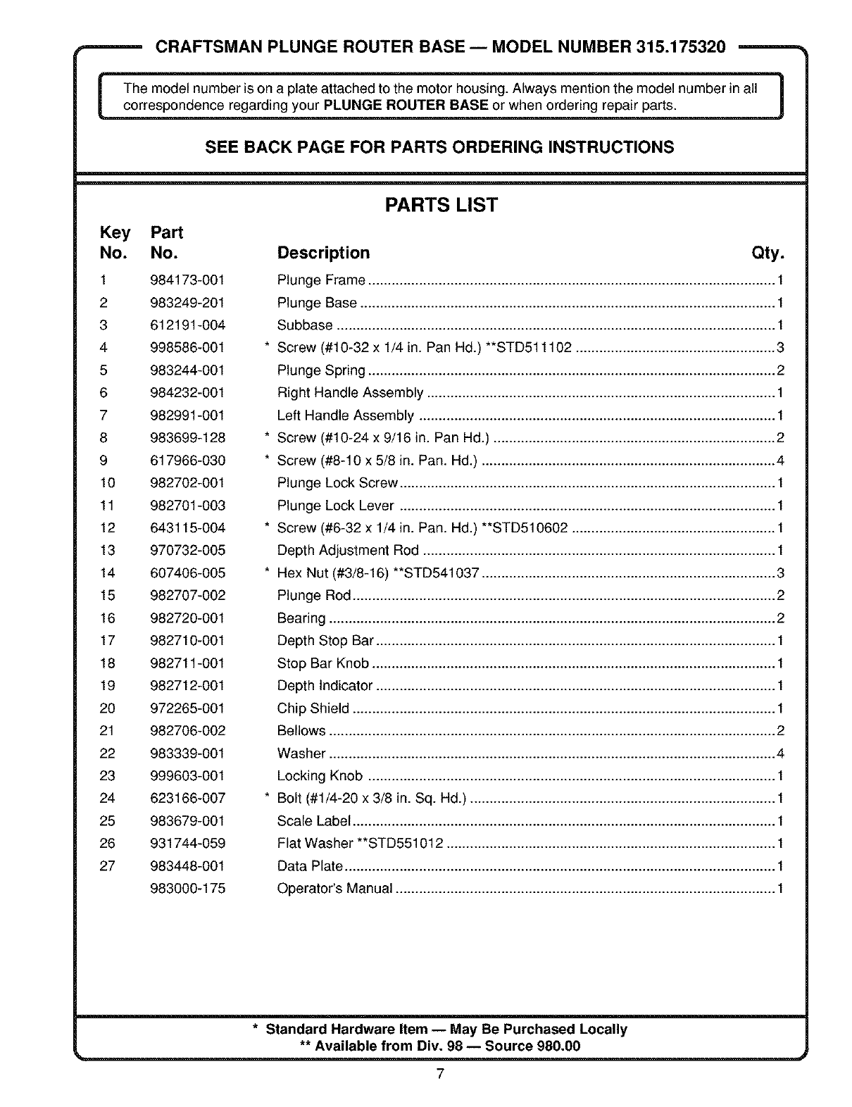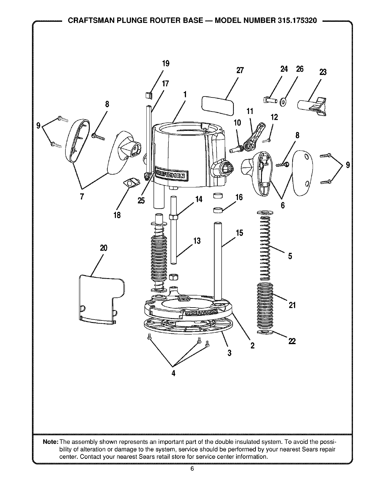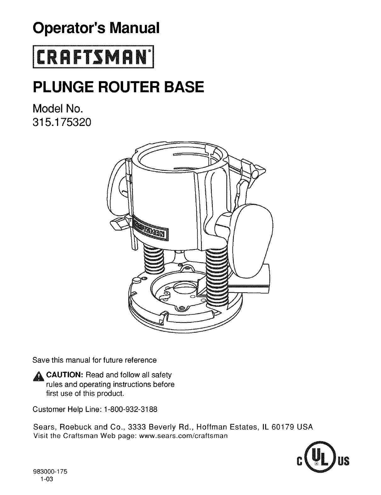 315175320 315175320 CRAFTSMAN ROUTER - Manuals and Guides L0310346 View the owners manual for your CRAFTSMAN ROUTER #315175320. Home:Tool Parts:Craftsman Parts:Craftsman ROUTER Manual
