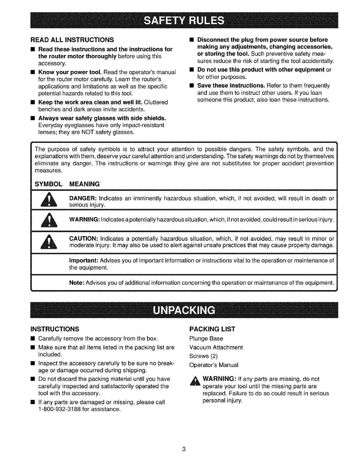correspondence regarding your PLUNGE ROUTER BASE or when ordering repair parts. II