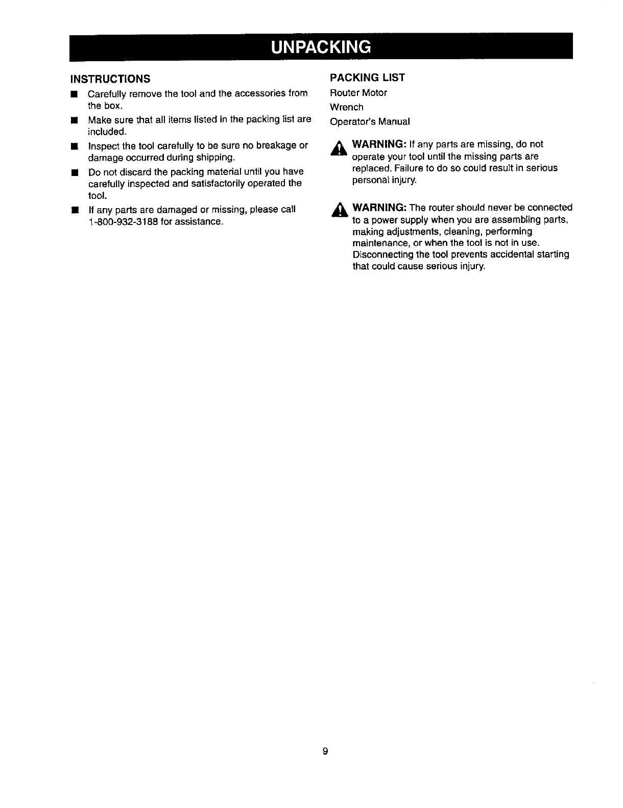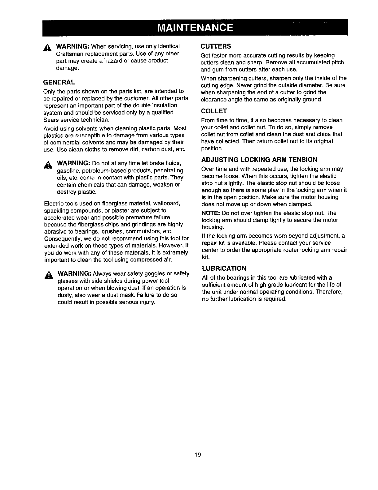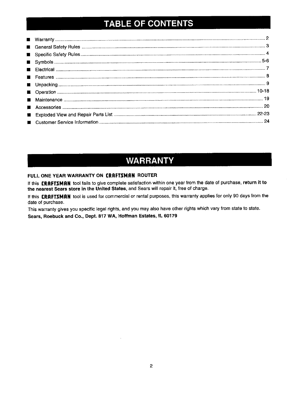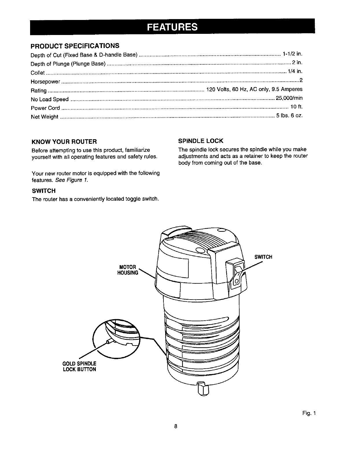 CRAFTSMAN Router Manual L0502186 CRAFTSMAN Router Owner's Manual, CRAFTSMAN Router installation guides