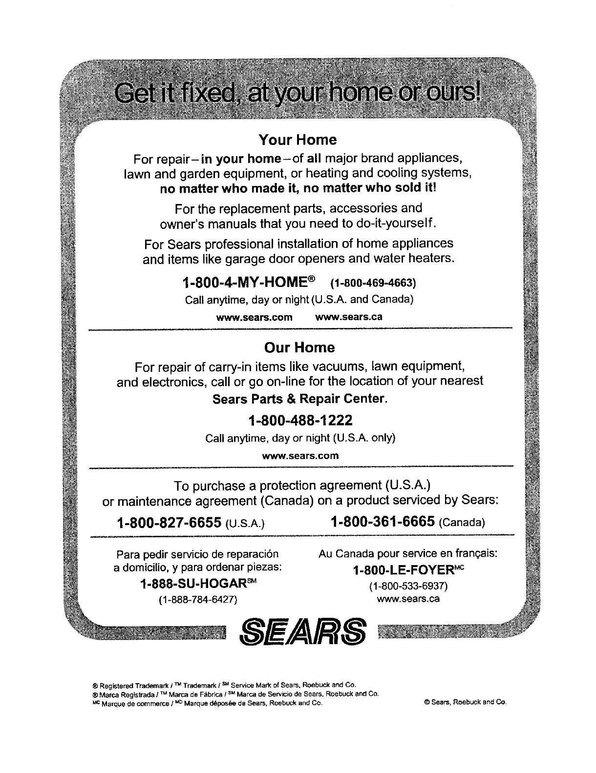 ® Registered Trademark ITM Trademark /su Service Mark of Sears, Roebuck and Co.