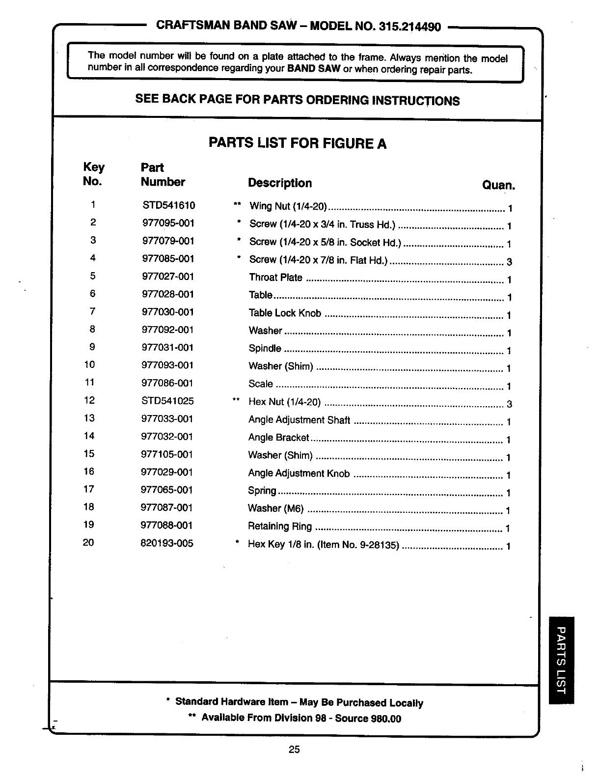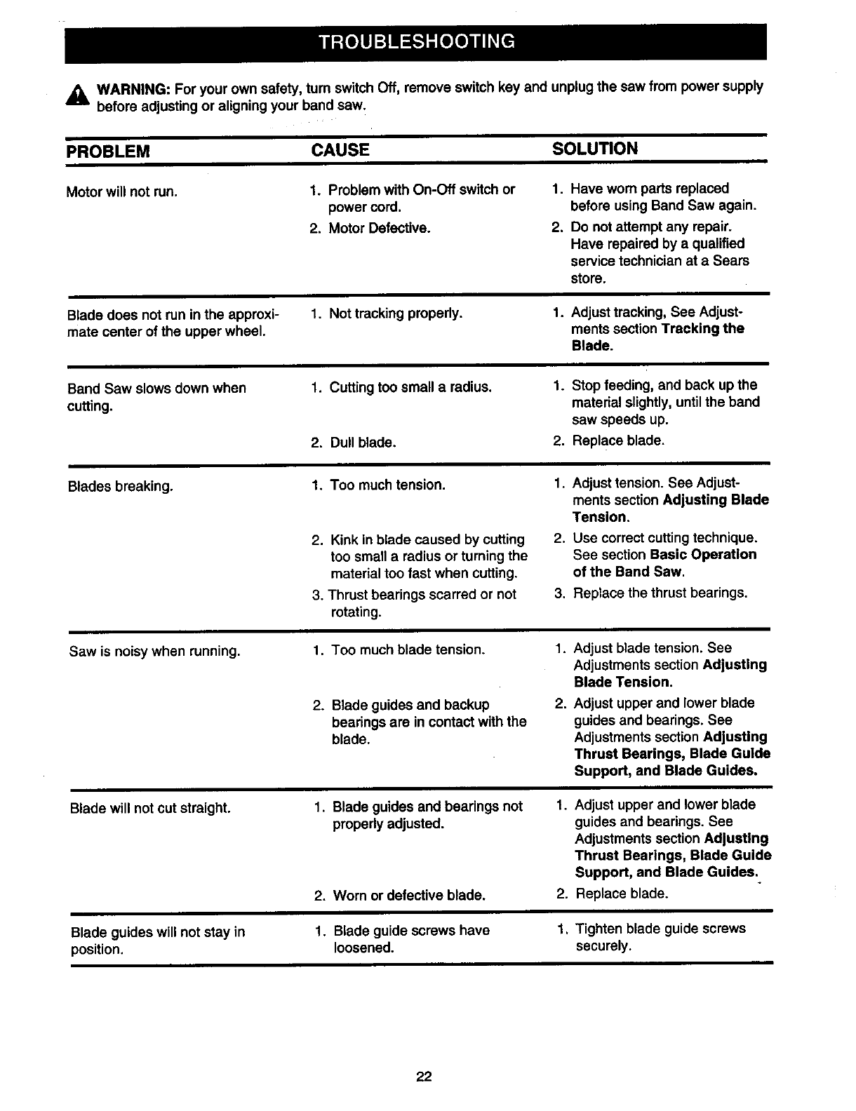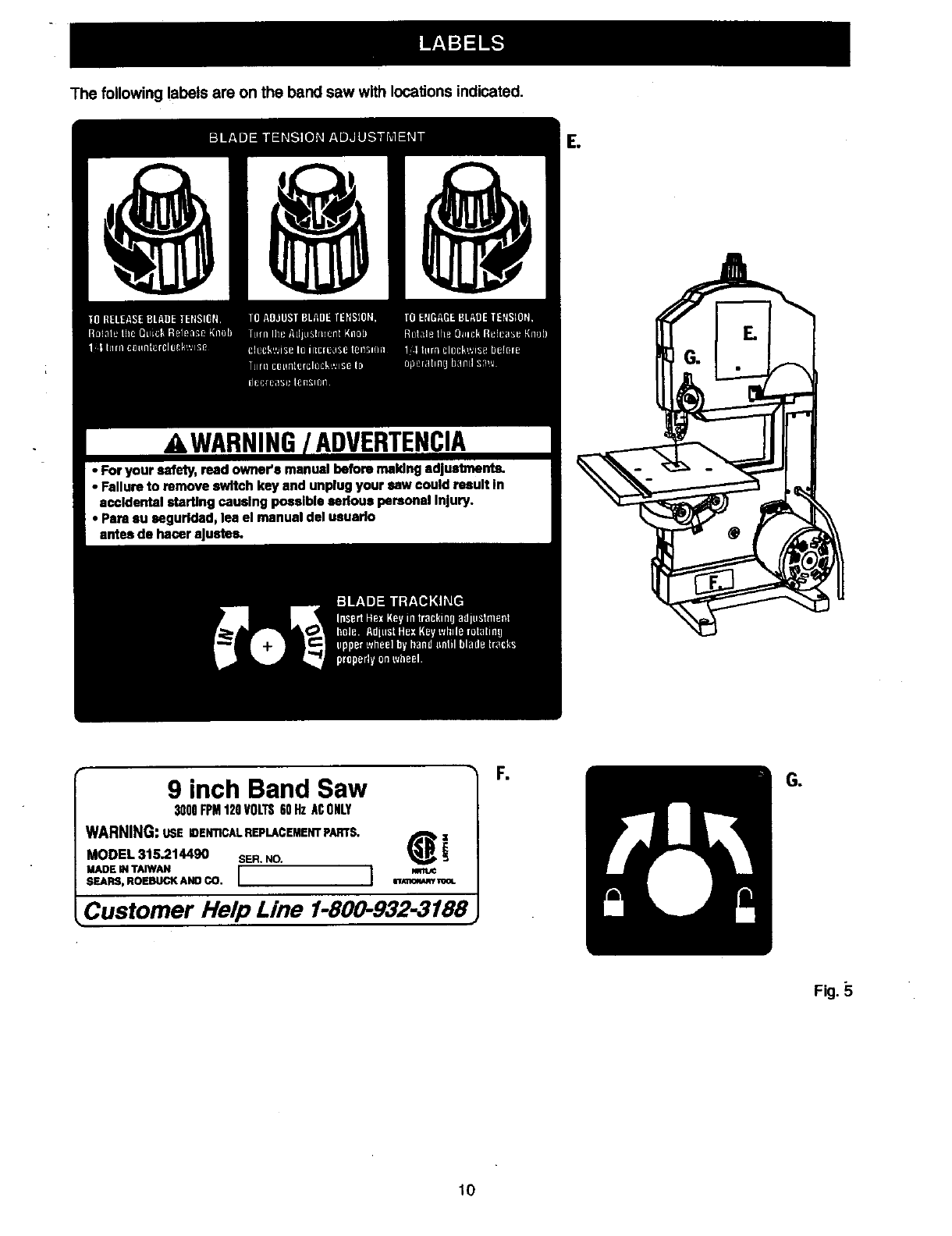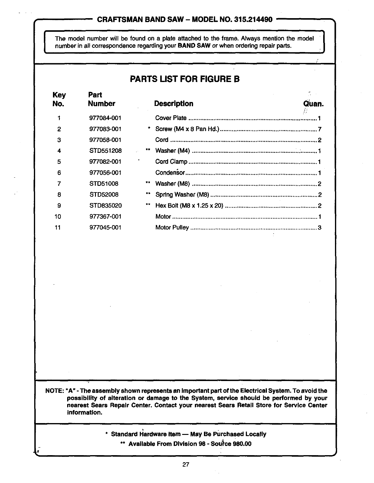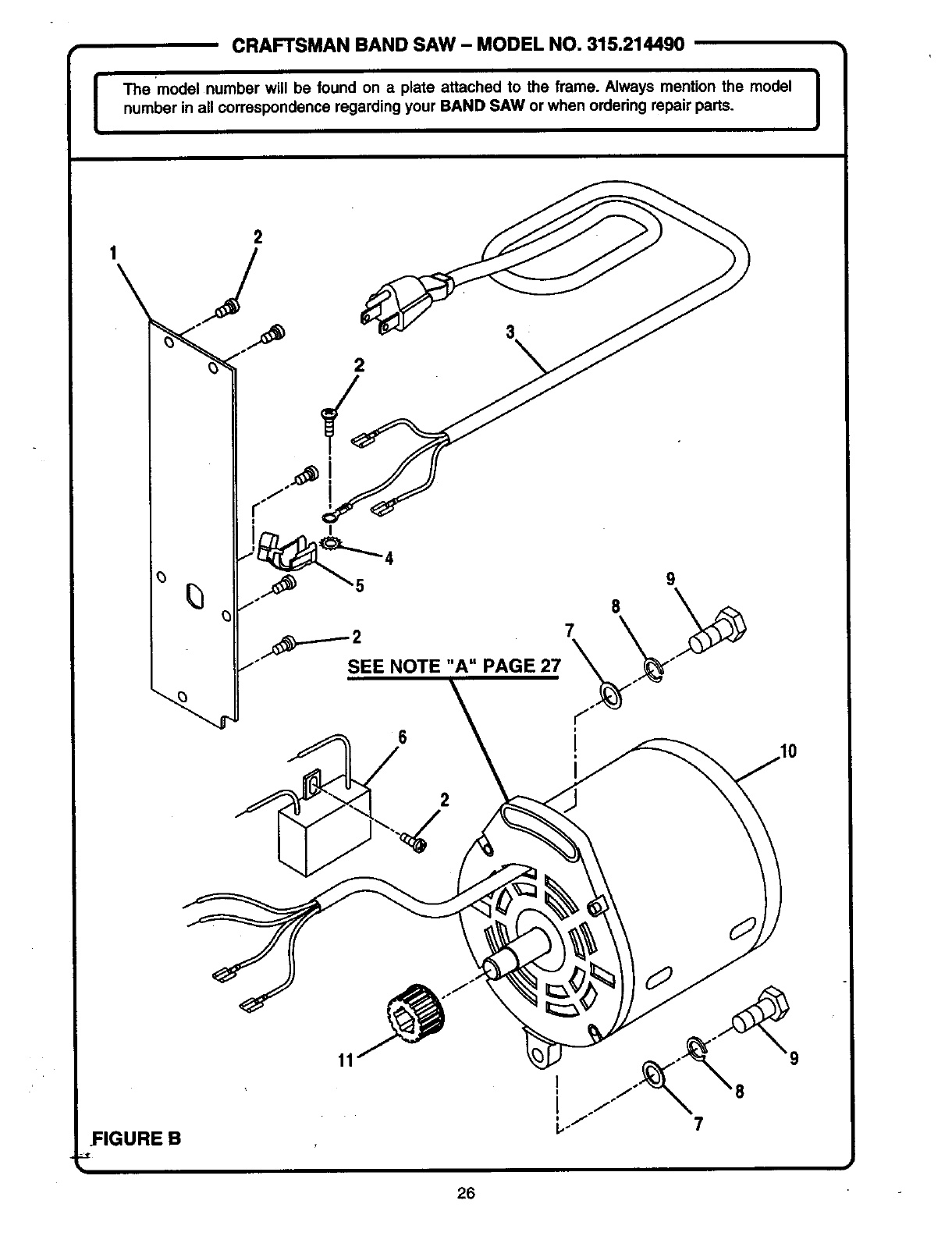 315214490 315214490 CRAFTSMAN 9 in. SINGLE SPEED BAND SAW - Manuals and Guides 98100165 View the owners manual for your CRAFTSMAN 9 in. SINGLE SPEED BAND SAW #315214490. Home:Tool Parts:Craftsman Parts:Craftsman 9 in. SINGLE SPEED BAND SAW Manual