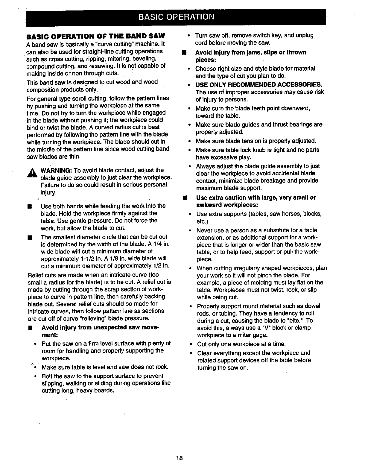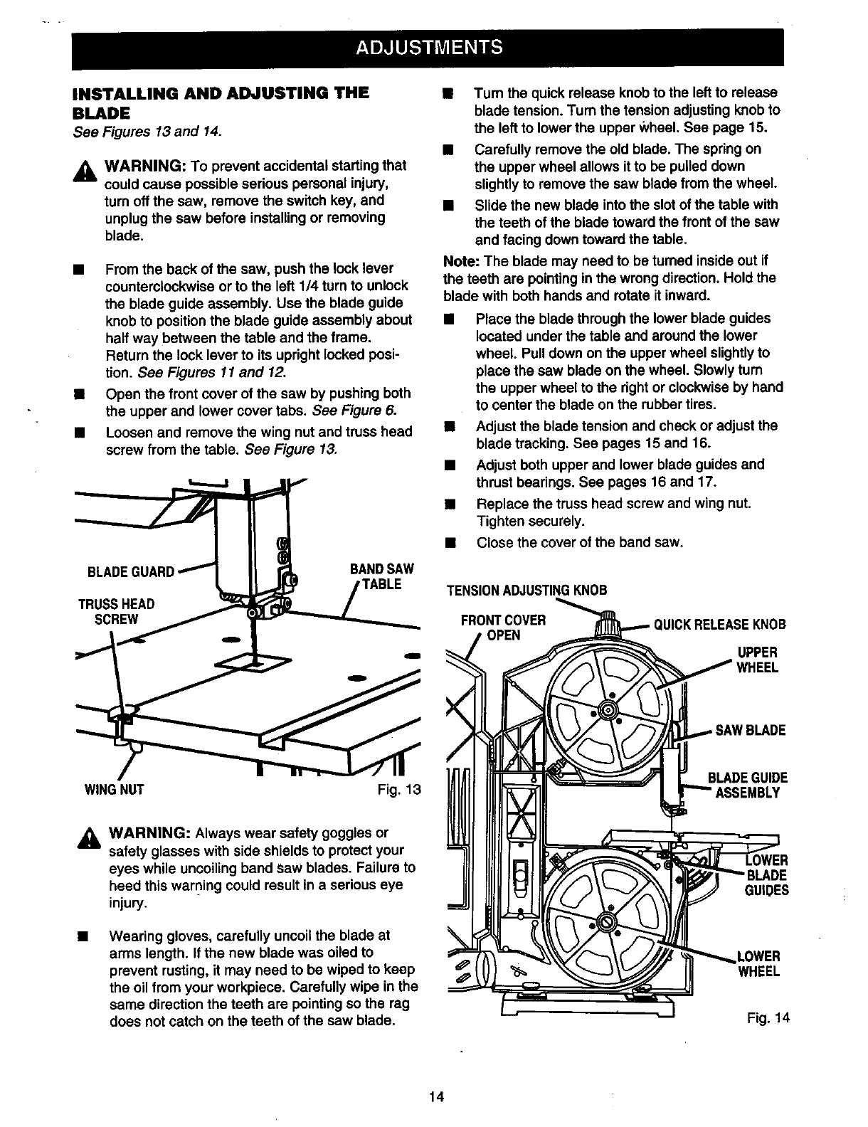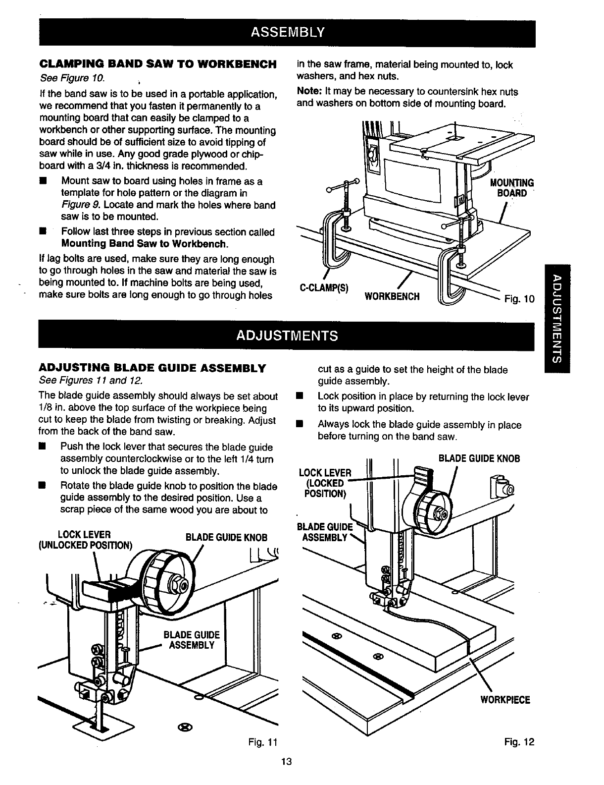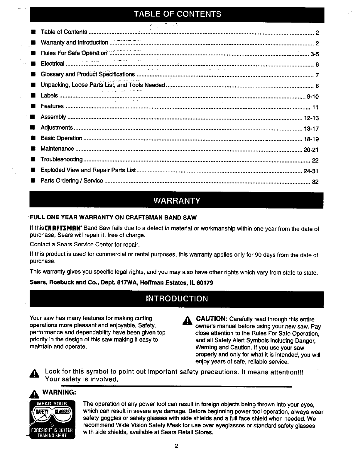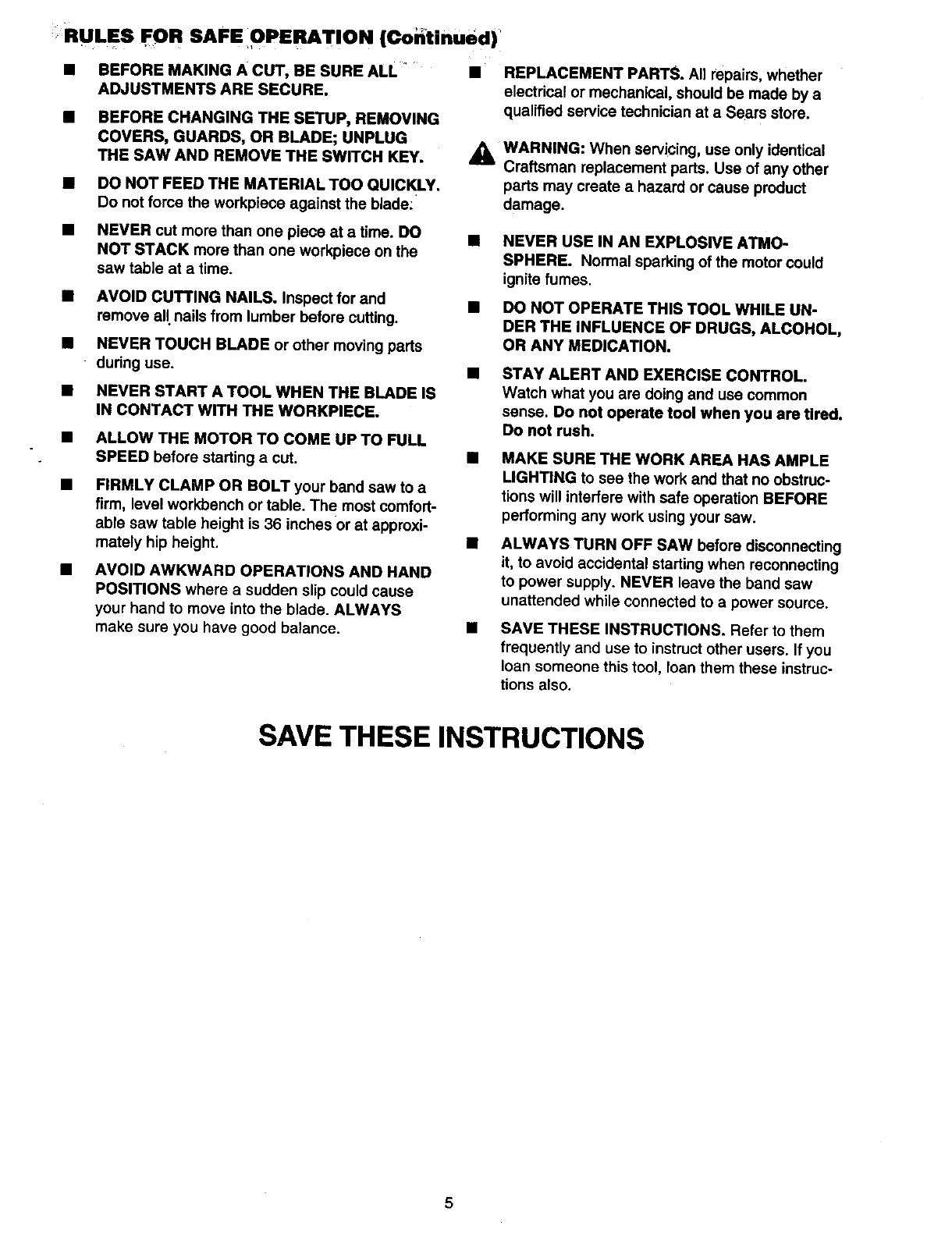CRAFTSMAN Saw Band Manual 98100165 CRAFTSMAN Saw Band Owner's Manual, CRAFTSMAN Saw Band installation guides