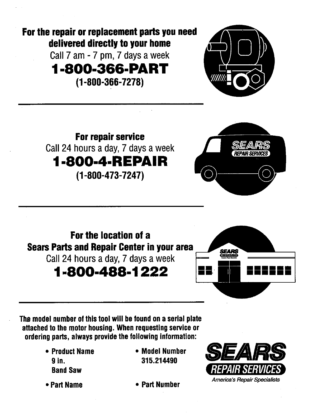 service technician. For service we suggest you return the tool to your nearest Sears store for repair. Always use