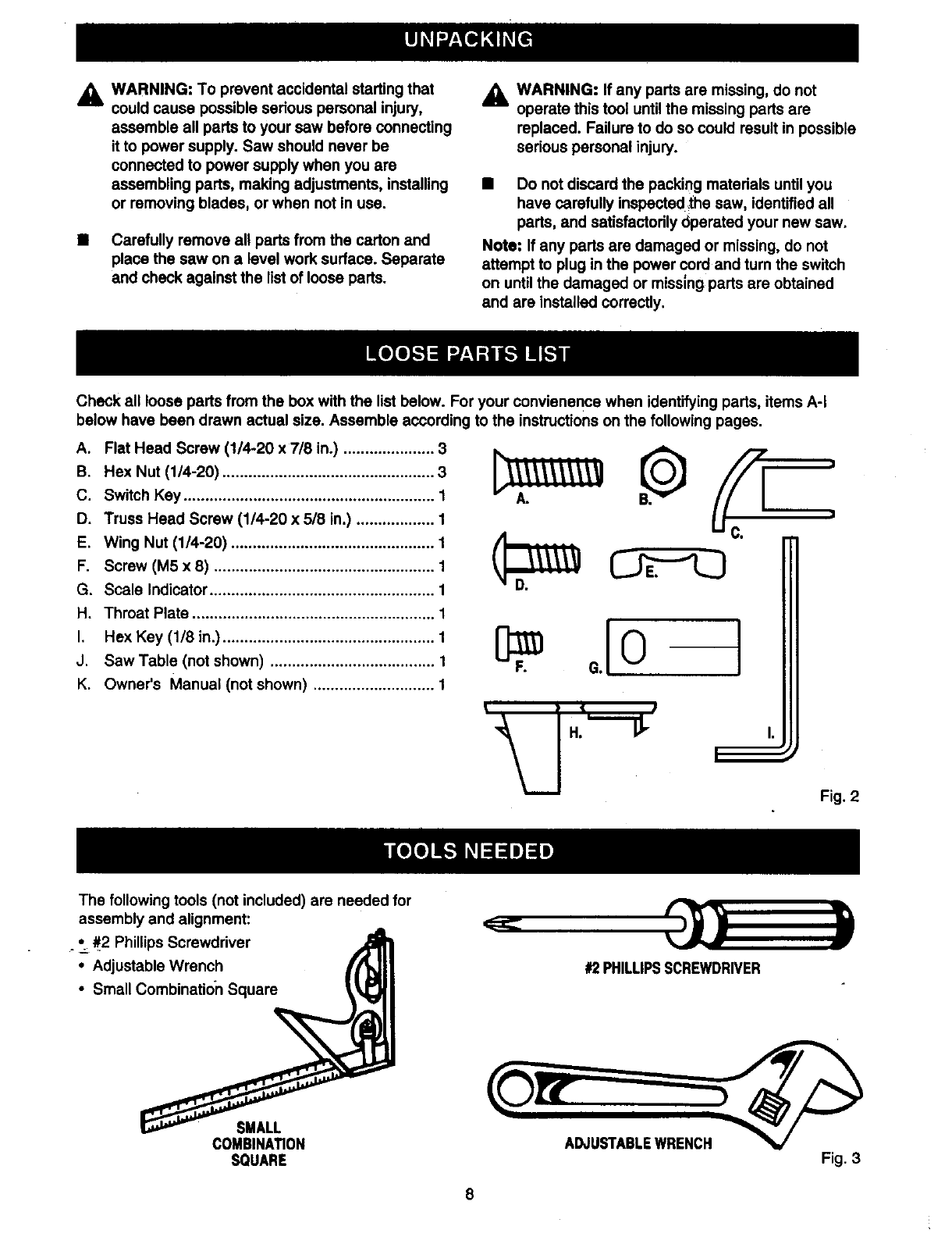 •Unpacking, Loose PartsListian¢l'Toois Needed ........................................................................................... 8