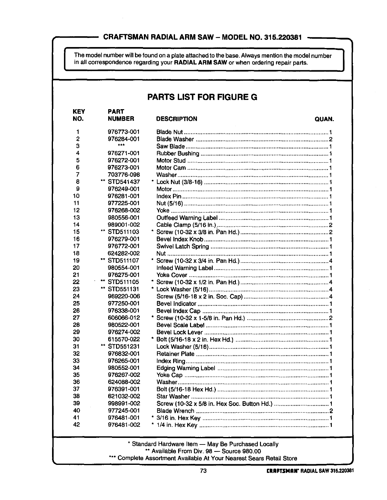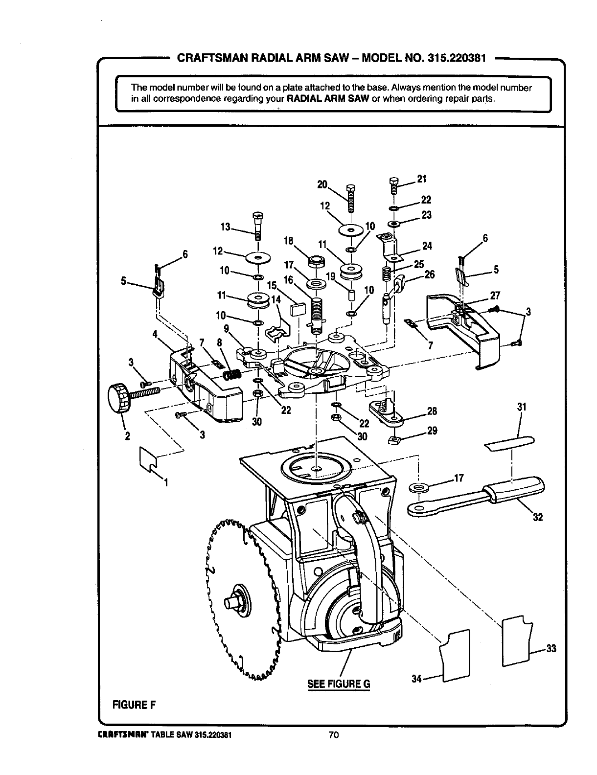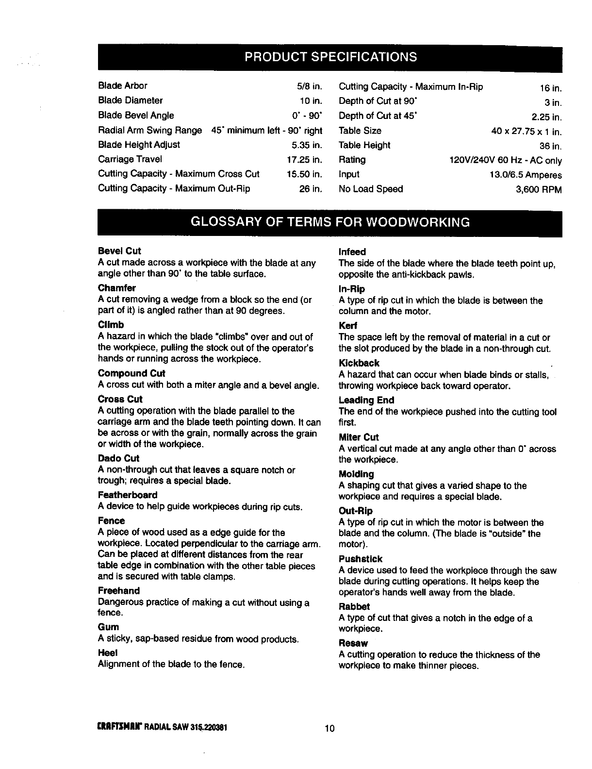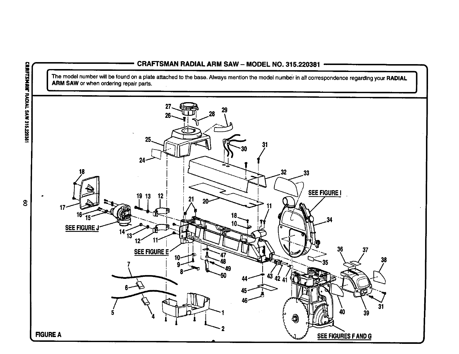 CRAFTSMANRADIAL ARM SAW- MODELNO. 315,220381