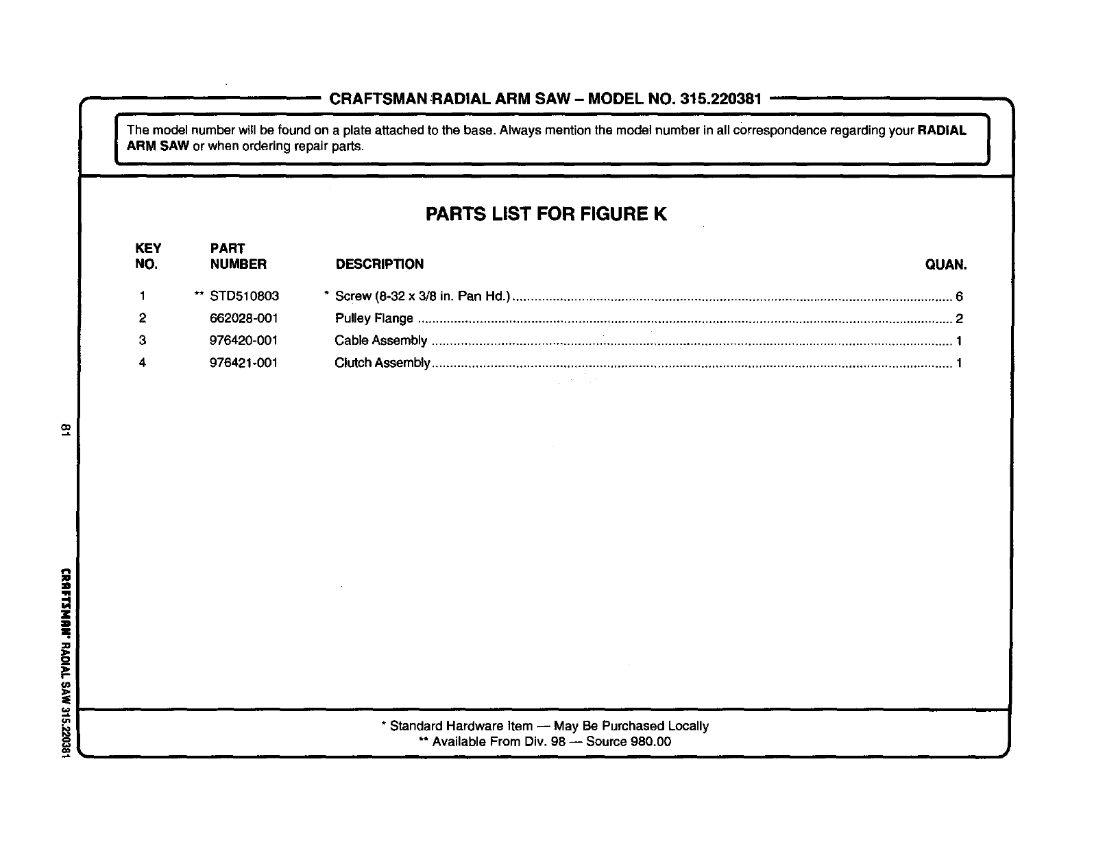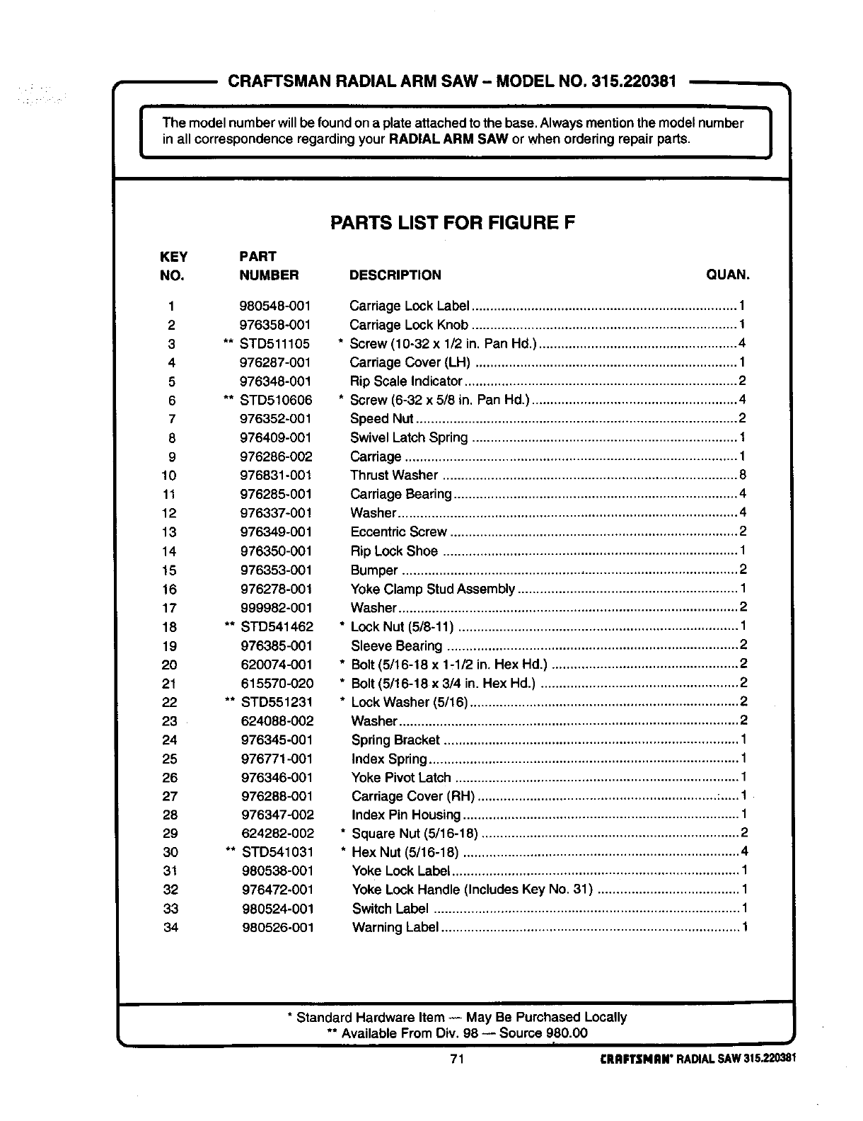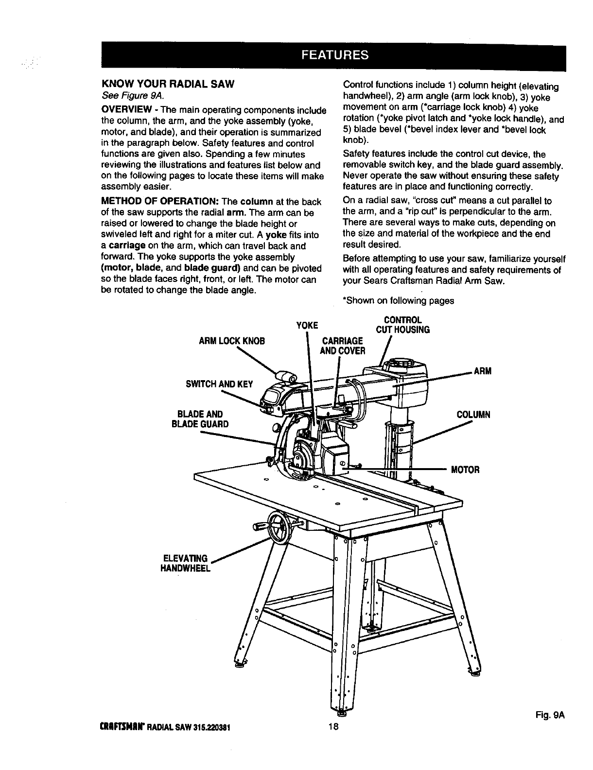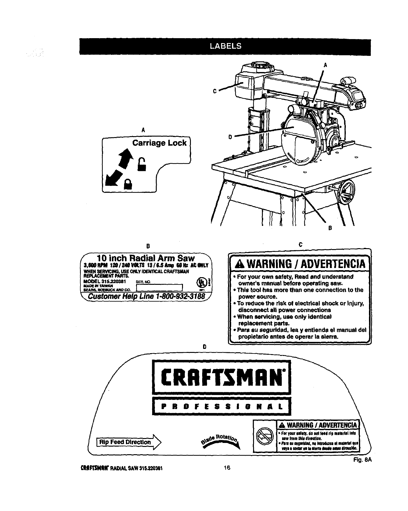 CRAFTSMANRADIAL ARM SAW- MODELNO. 315,220381