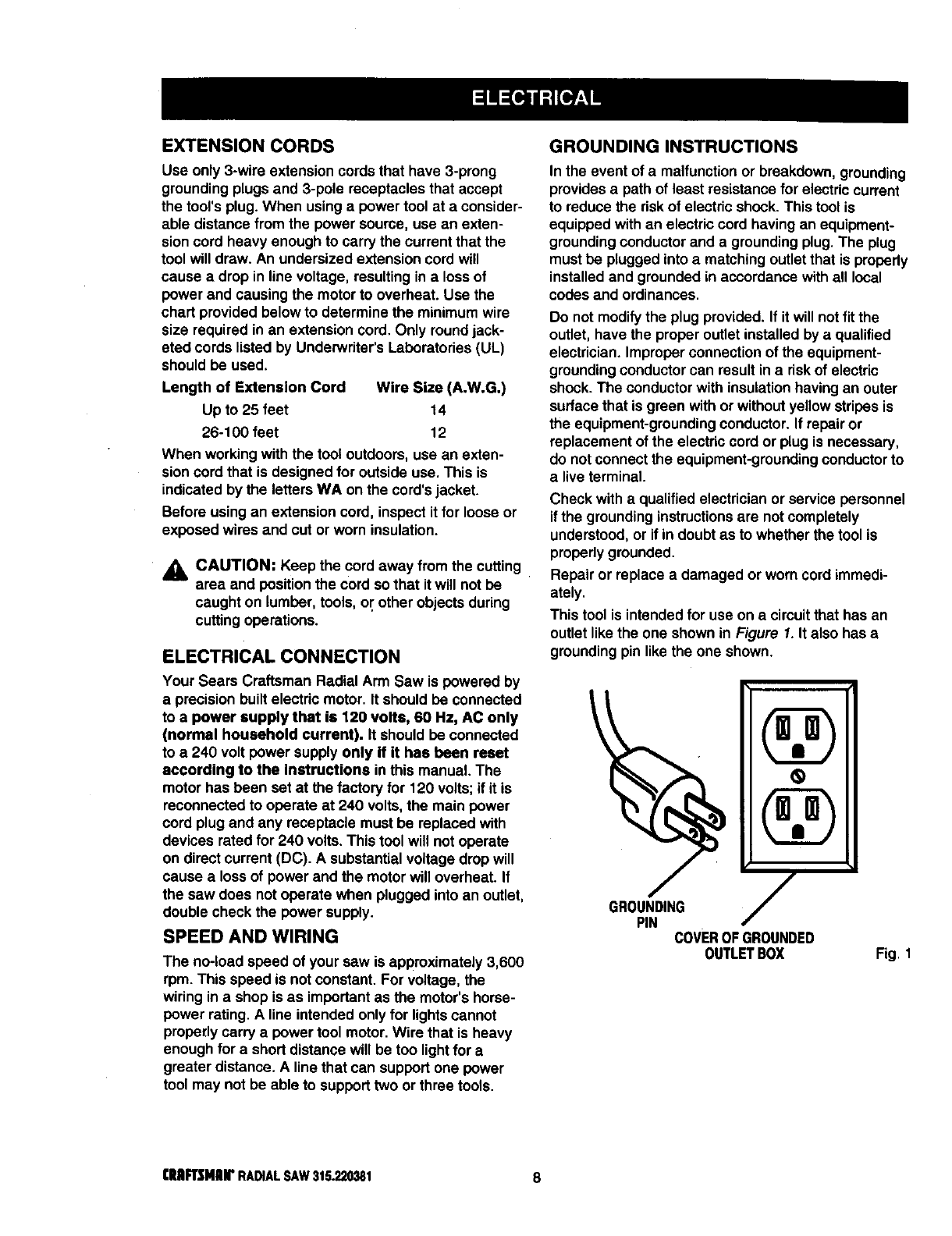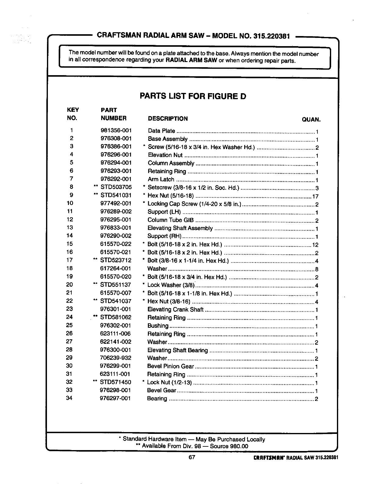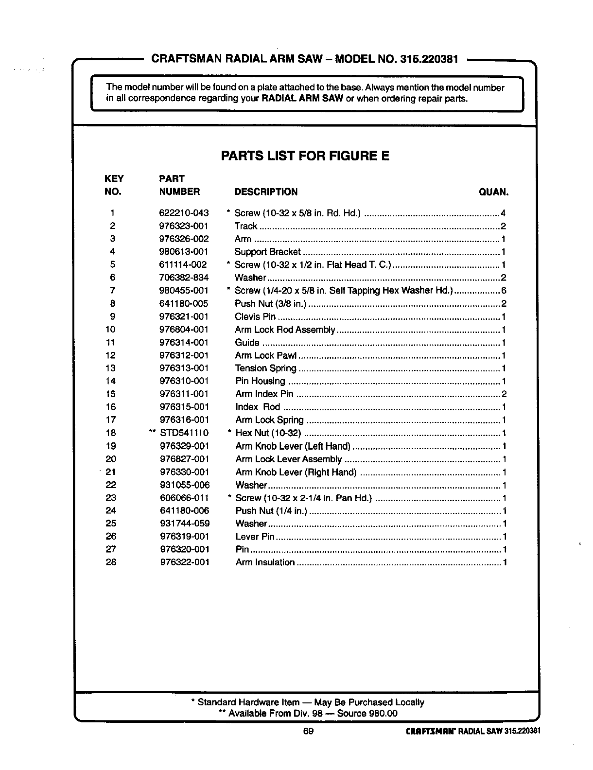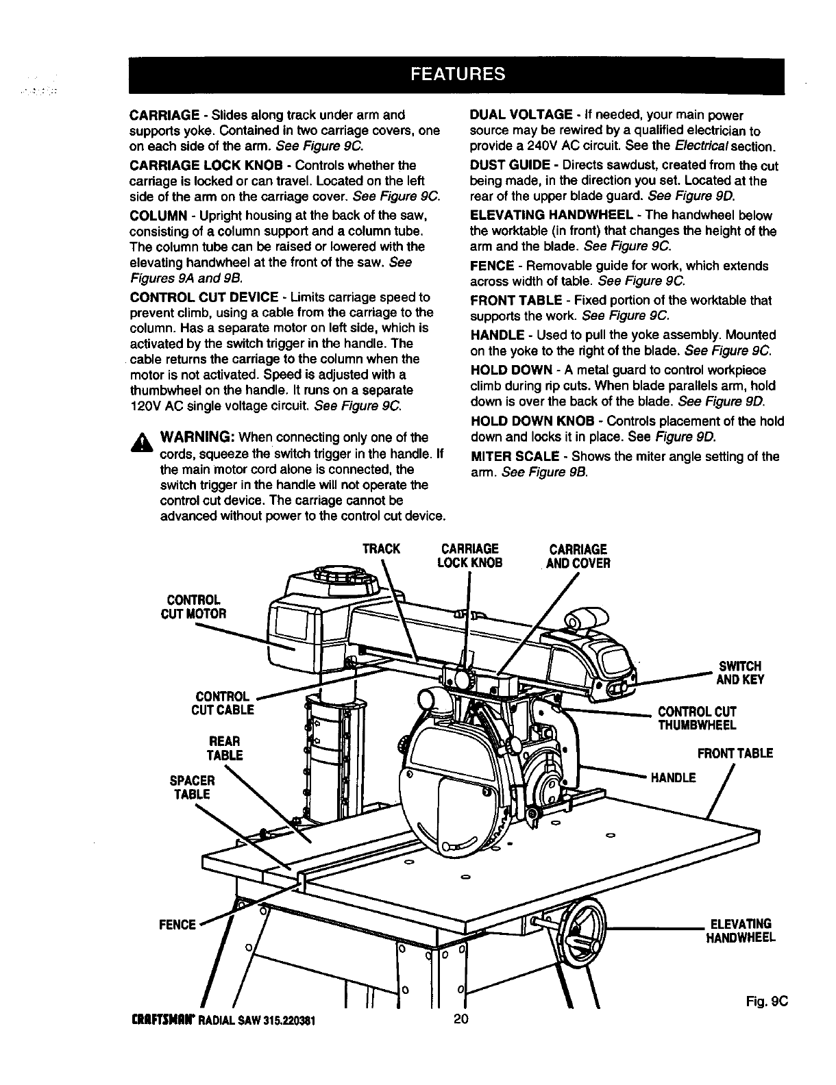 CRAFTSMANRADIAL ARM SAW- MODELNO. 315,220381