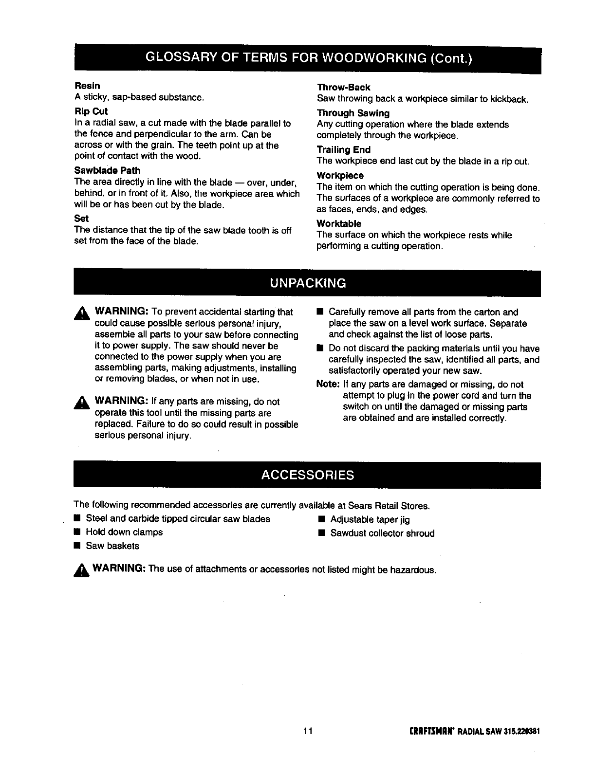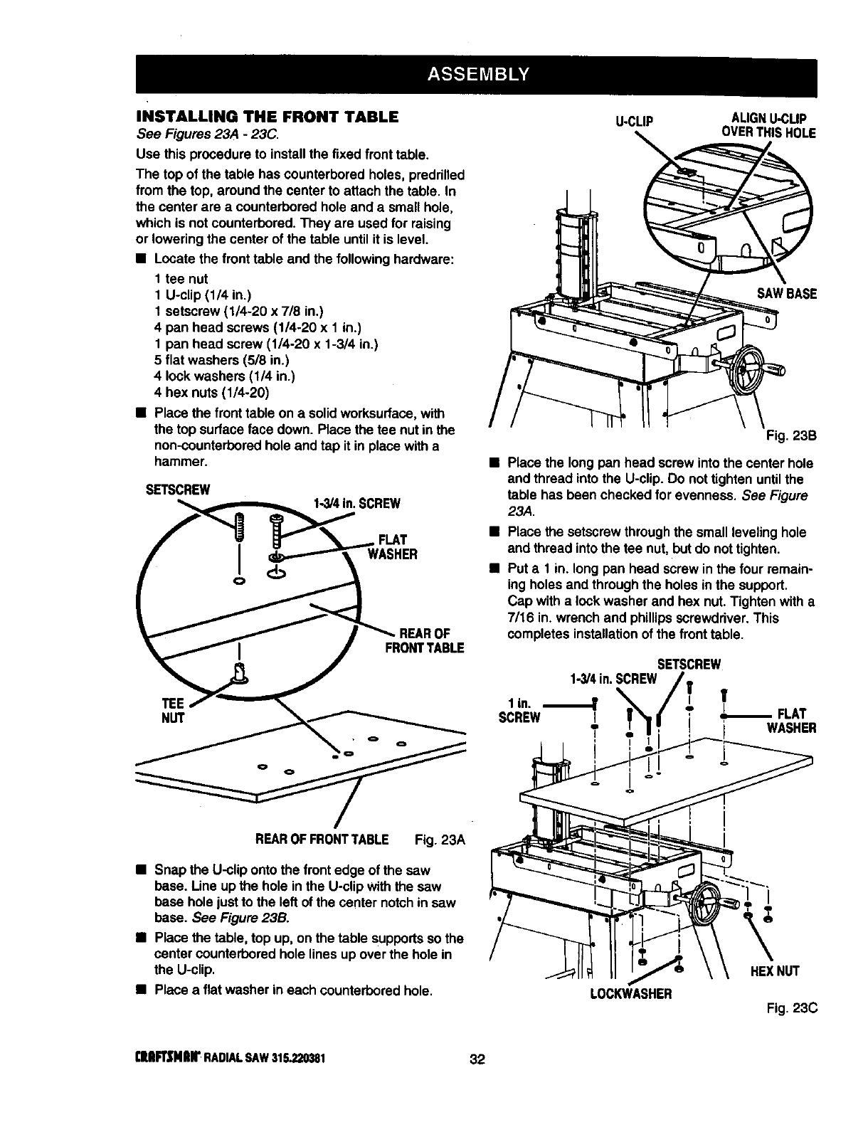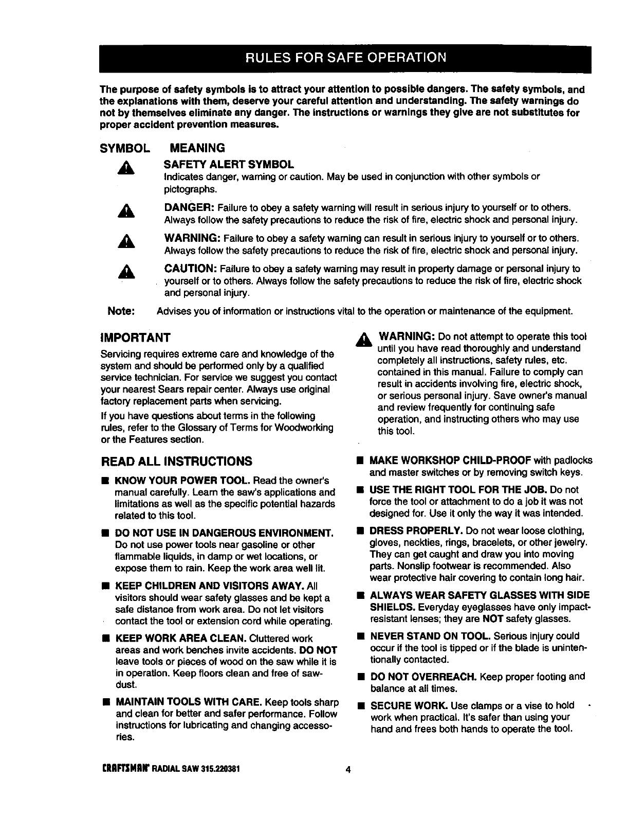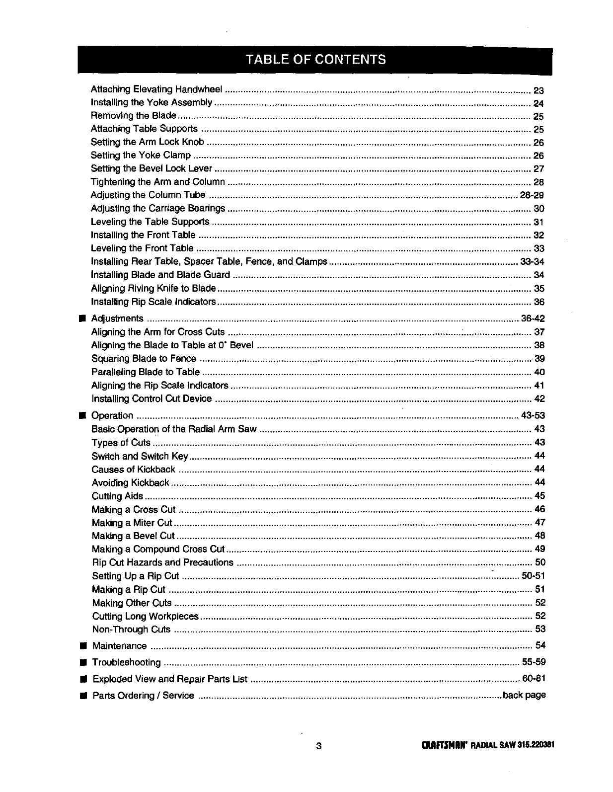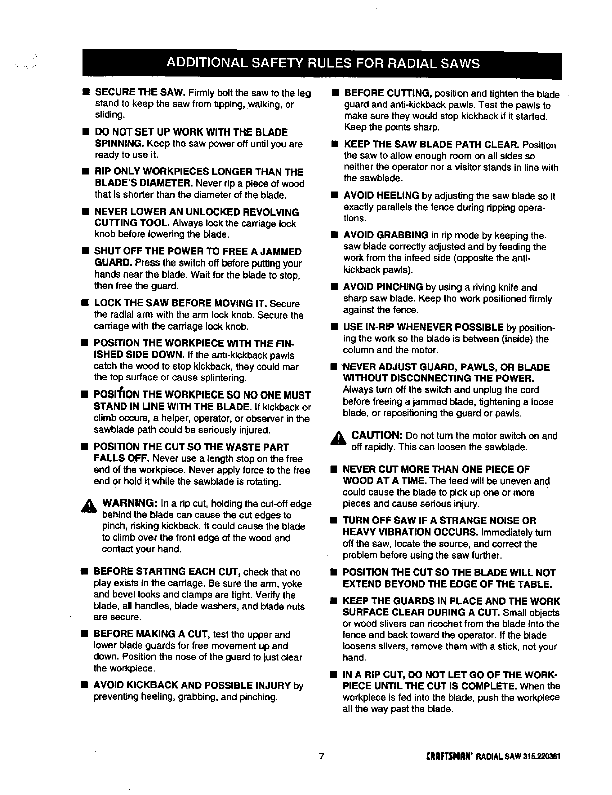 CRAFTSMAN Saw Radial Manual L0012257 CRAFTSMAN Saw Radial Owner's Manual, CRAFTSMAN Saw Radial installation guides
