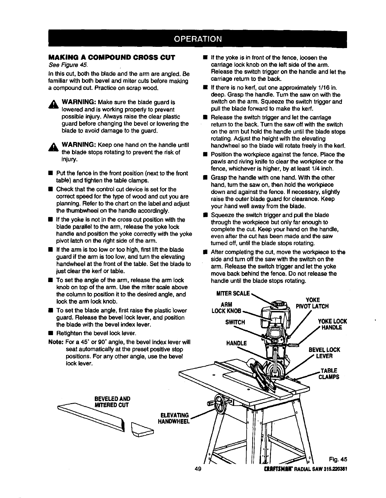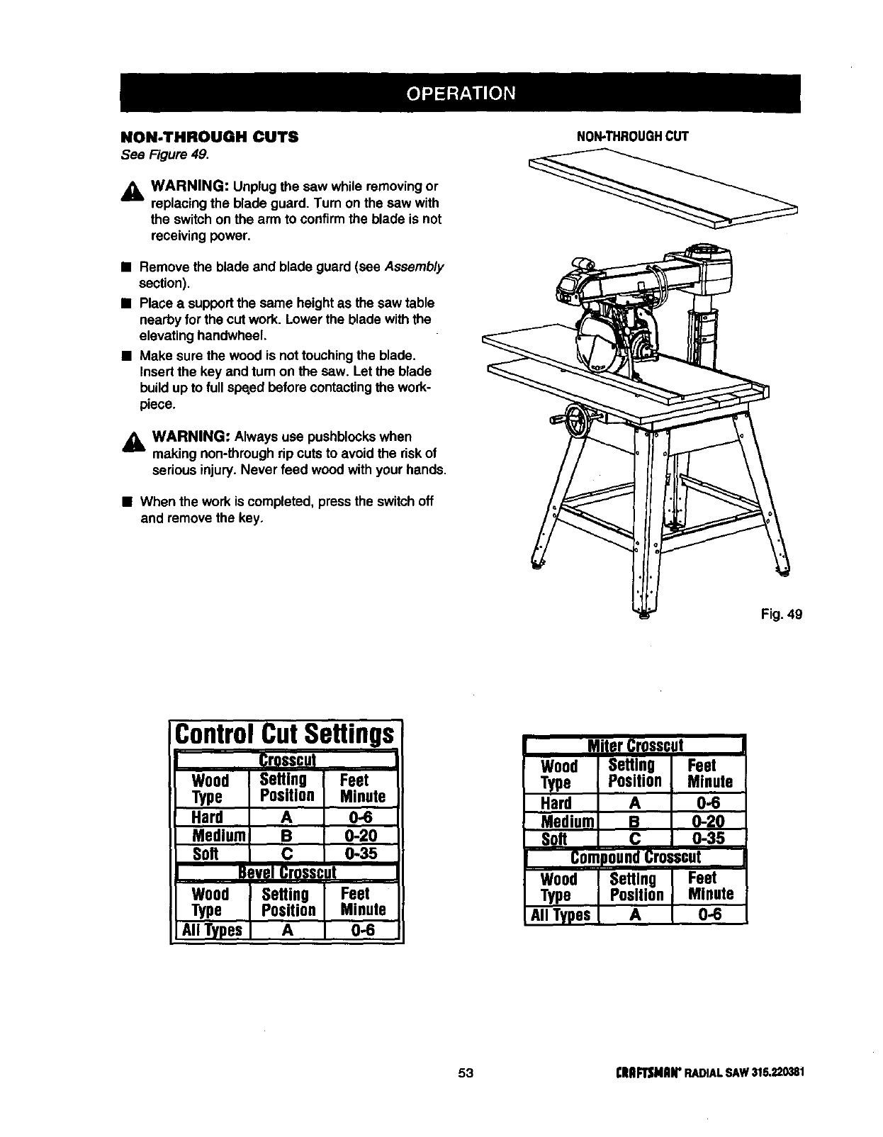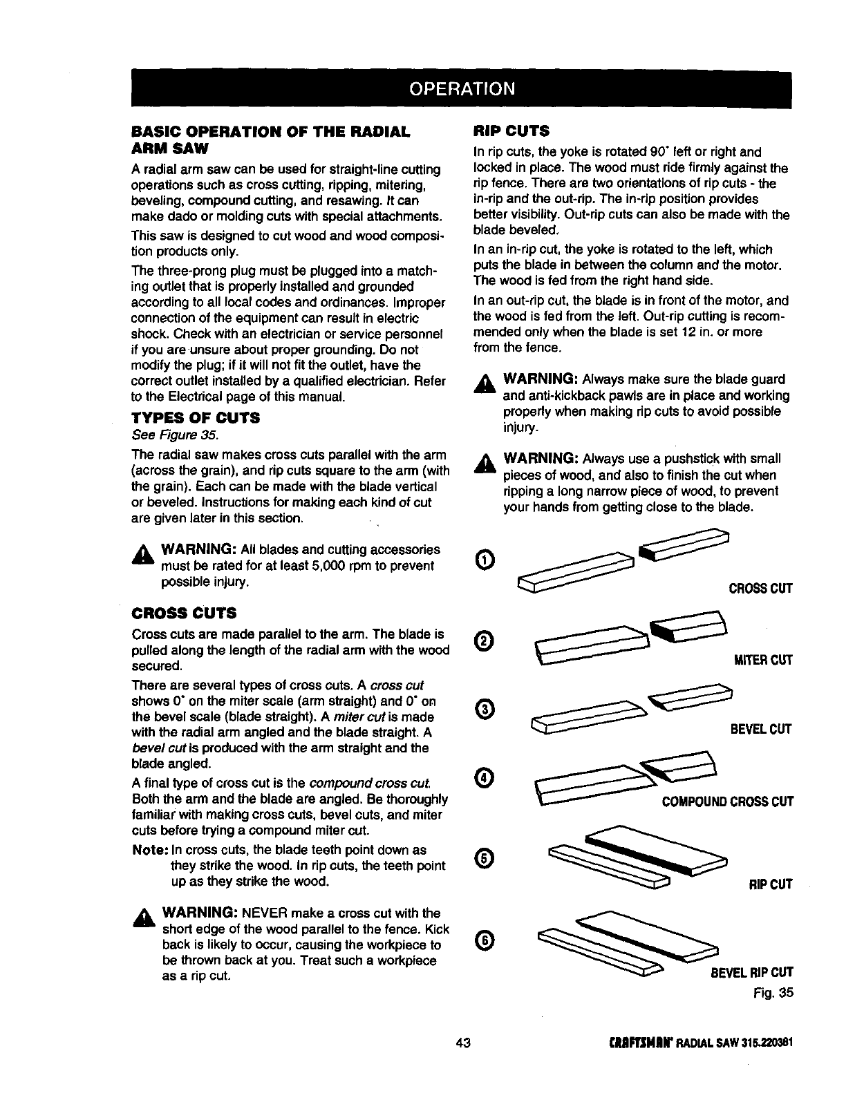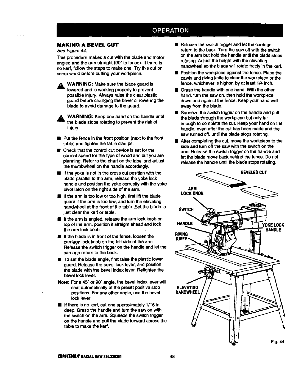 Basic Operationof the Radial Arm Saw ........................................................................................................ 43