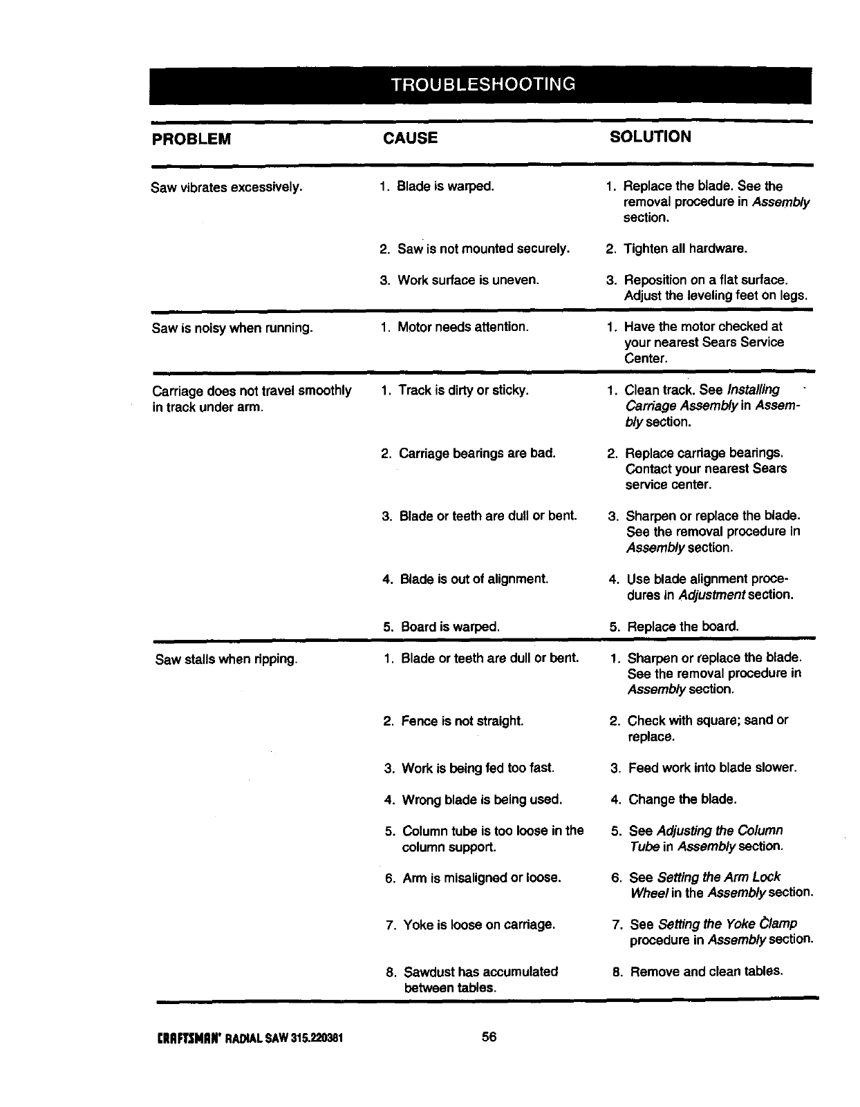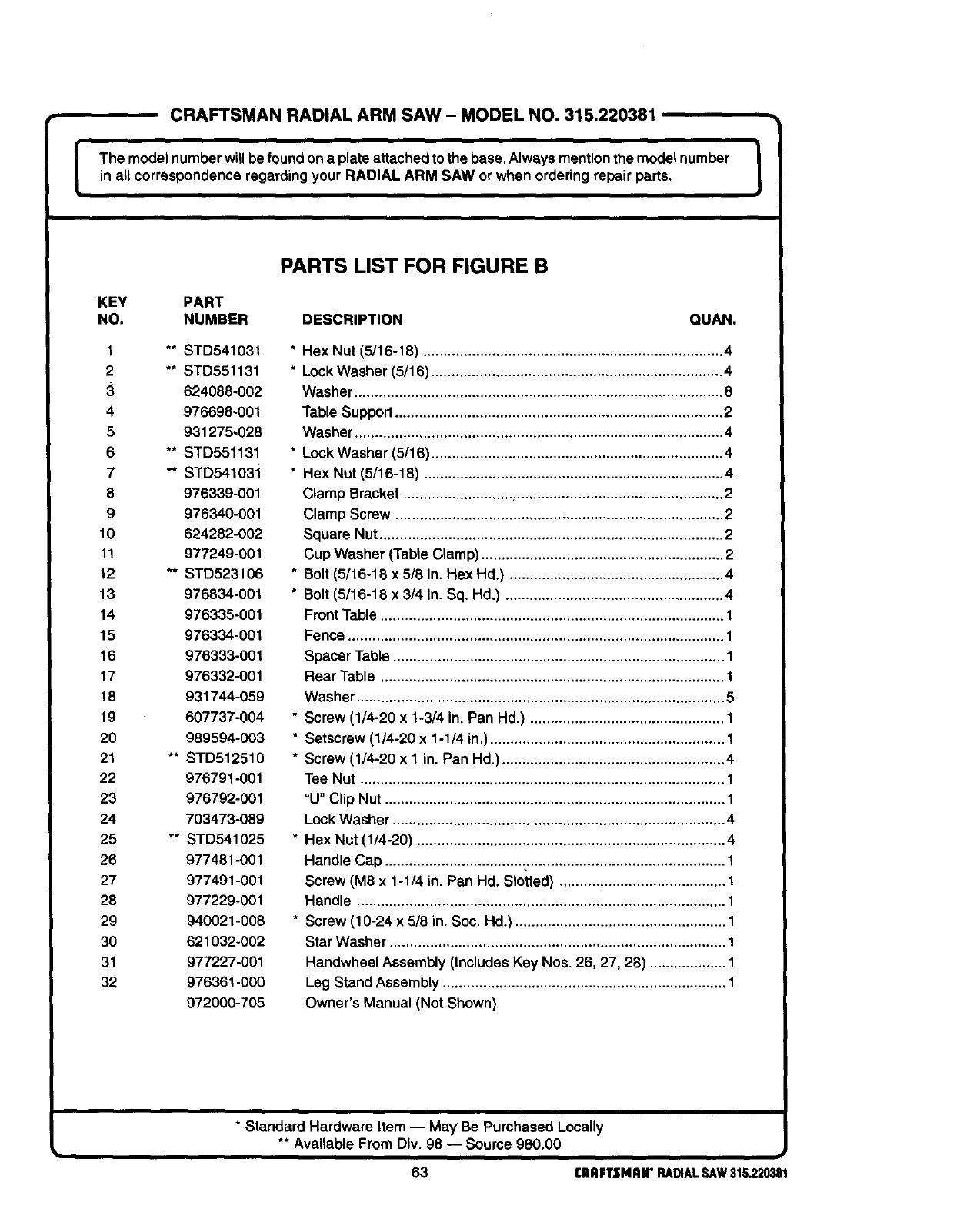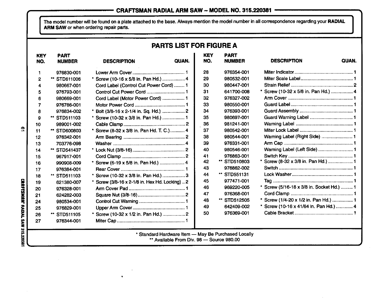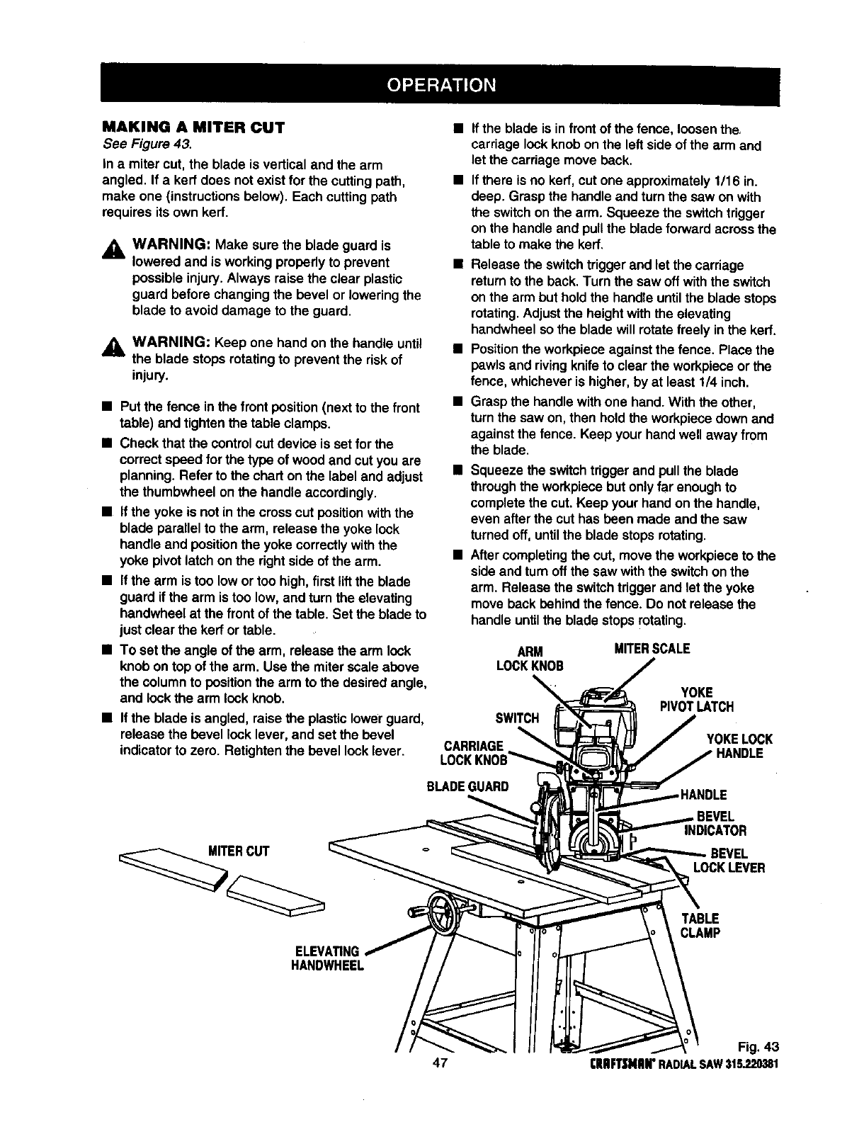 315220381 315220381 CRAFTSMAN 10 STATIONARY RADIAL ARM SAW - Manuals and Guides L0012257 View the owners manual for your CRAFTSMAN 10 STATIONARY RADIAL ARM SAW #315220381. Home:Tool Parts:Craftsman Parts:Craftsman 10 STATIONARY RADIAL ARM SAW Manual