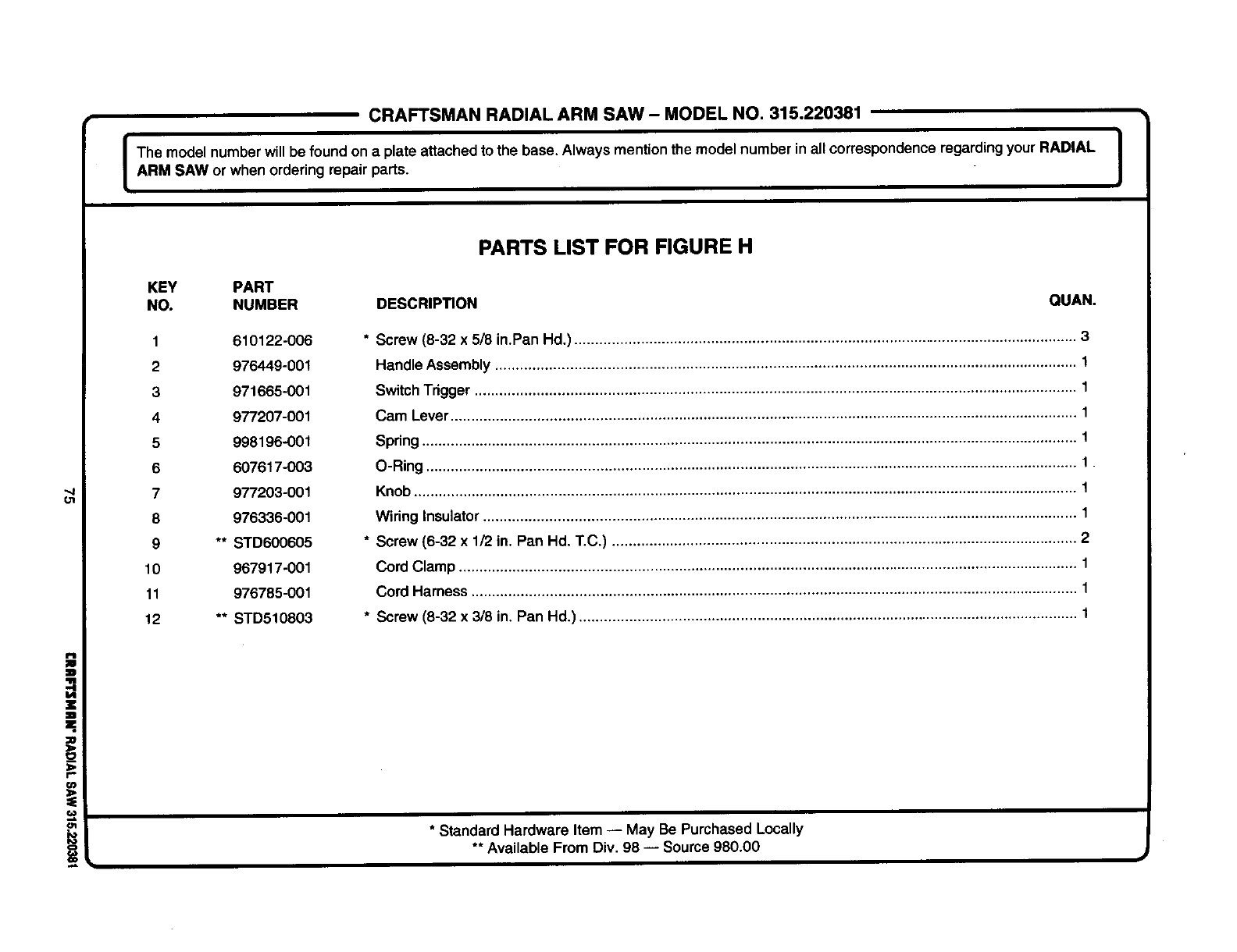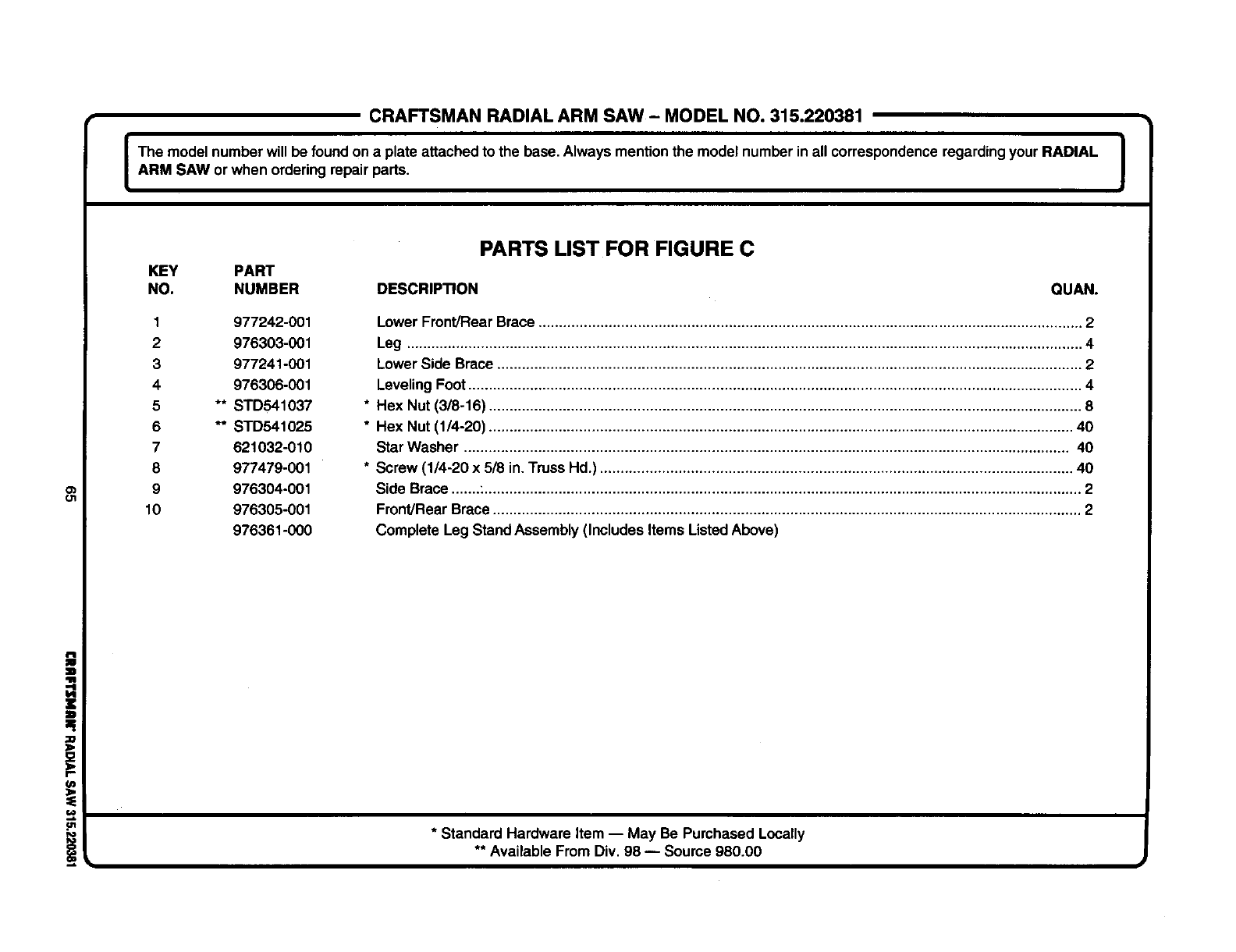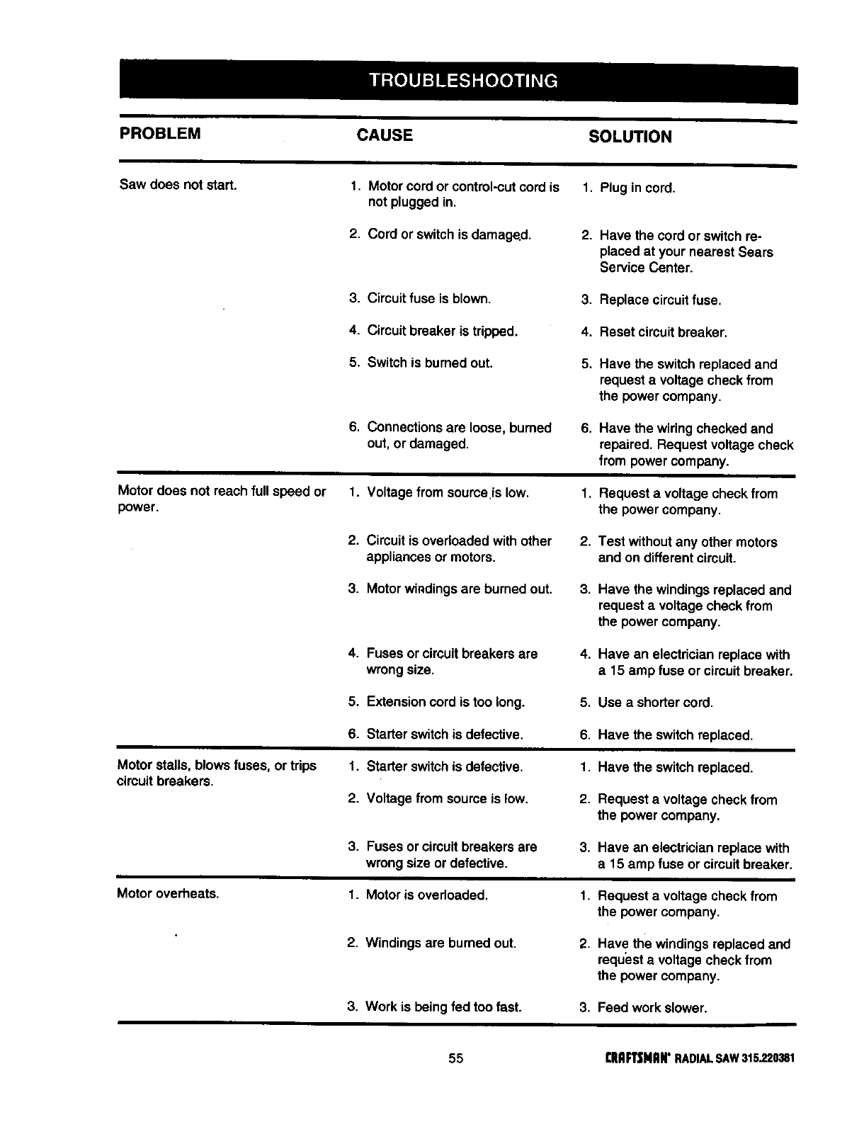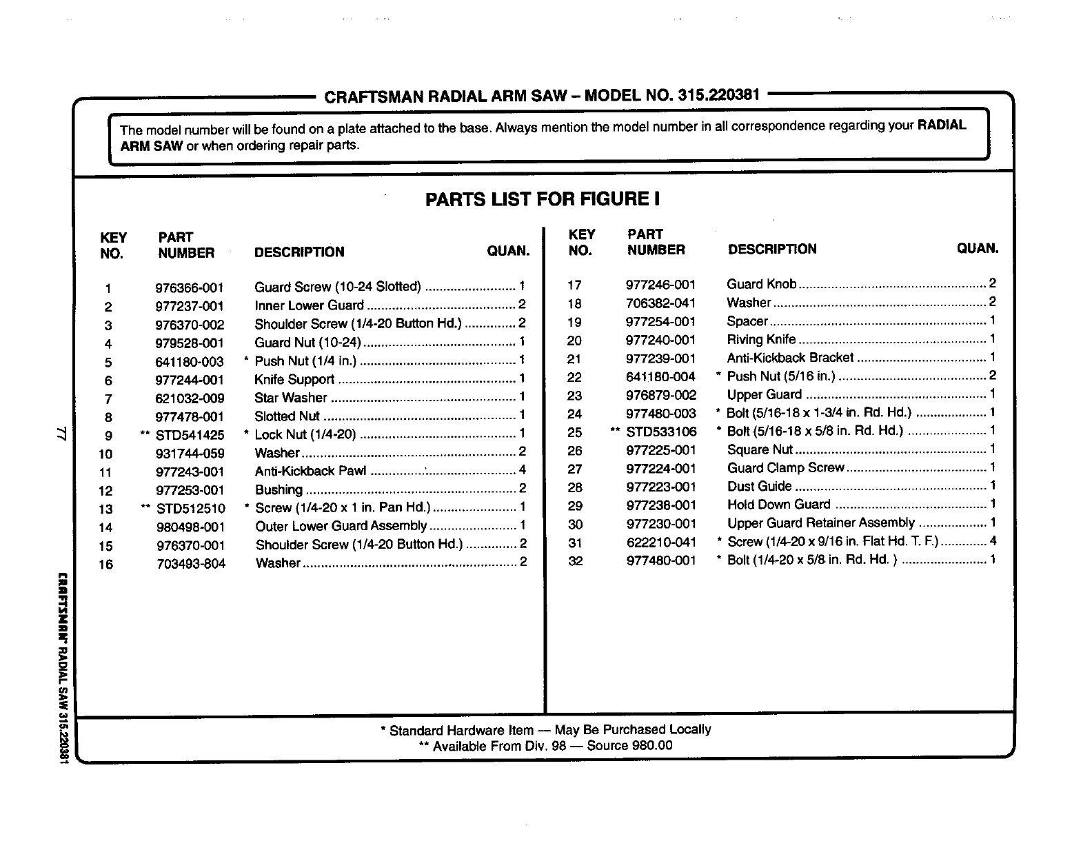 315220381 315220381 CRAFTSMAN 10 STATIONARY RADIAL ARM SAW - Manuals and Guides L0012257 View the owners manual for your CRAFTSMAN 10 STATIONARY RADIAL ARM SAW #315220381. Home:Tool Parts:Craftsman Parts:Craftsman 10 STATIONARY RADIAL ARM SAW Manual
