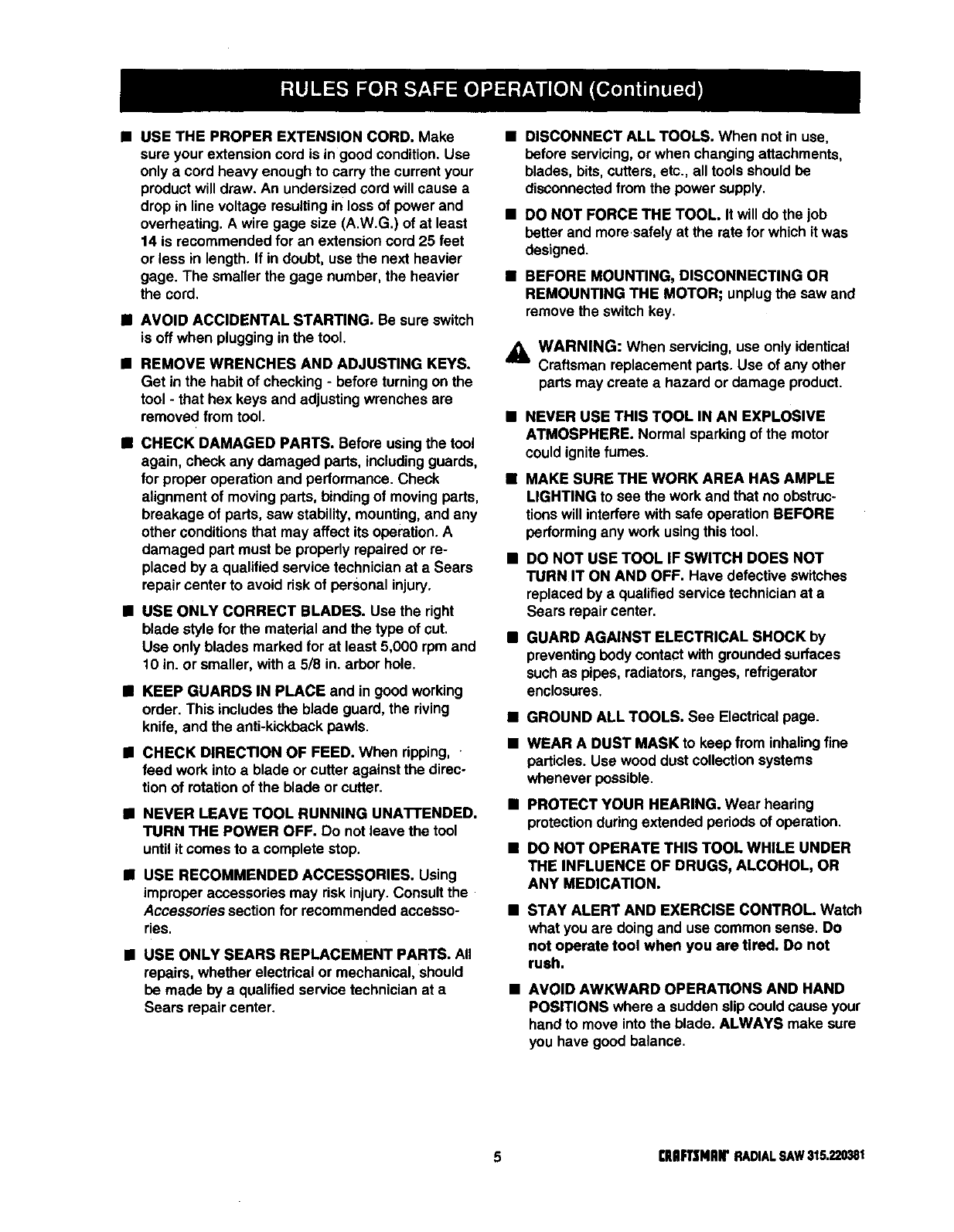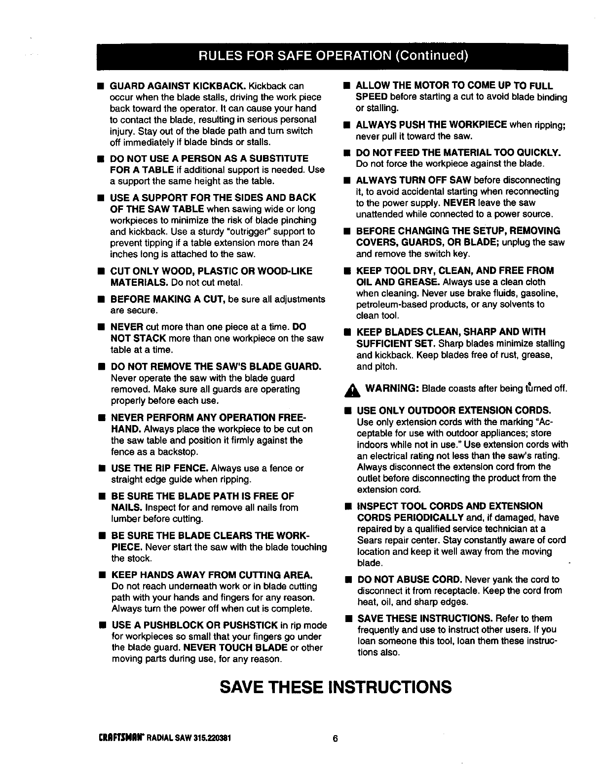 Caution. If you use your saw properlyand only for what it is intended, you will enjoy years of safe, reliable