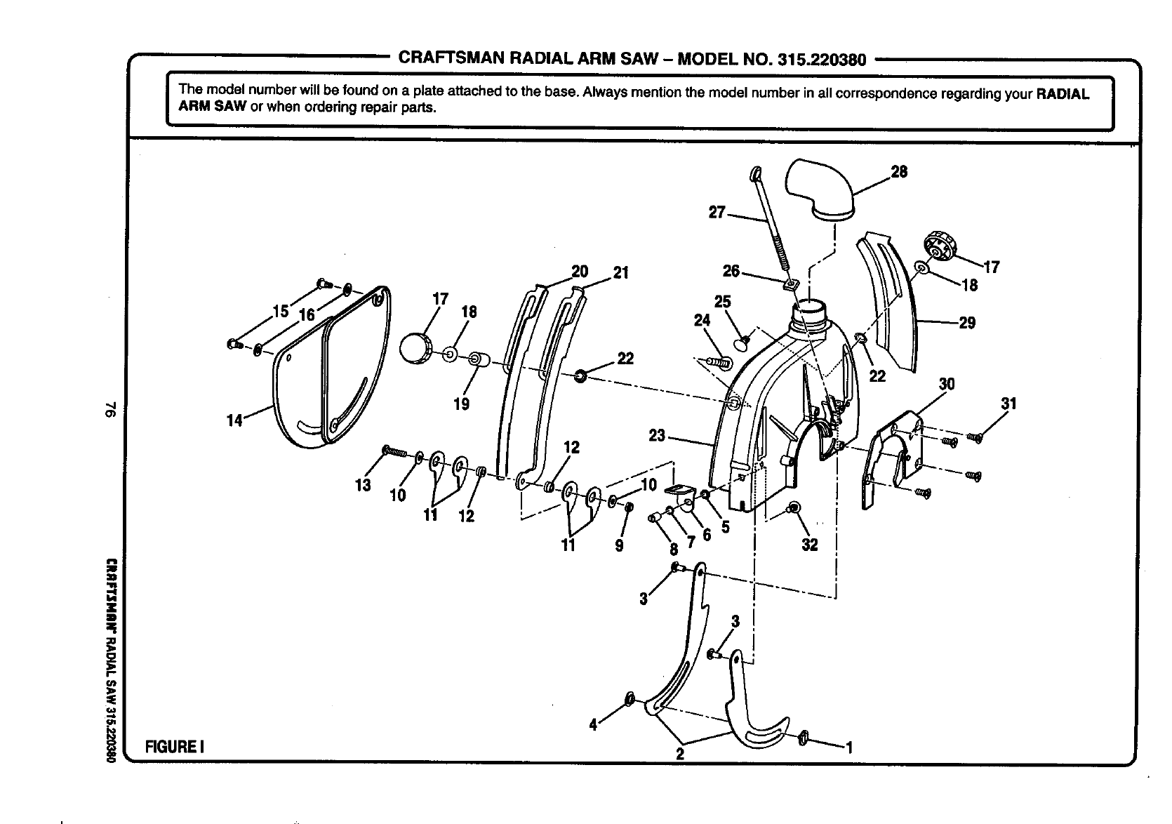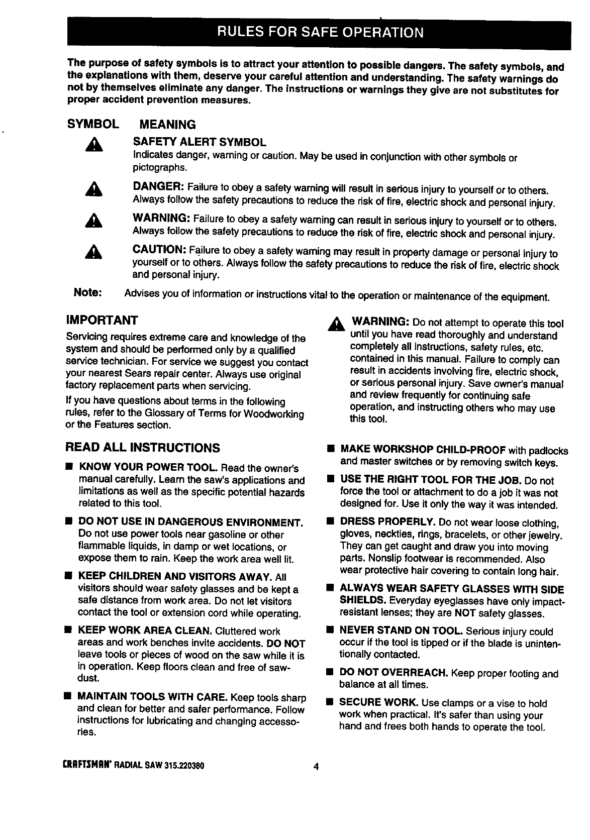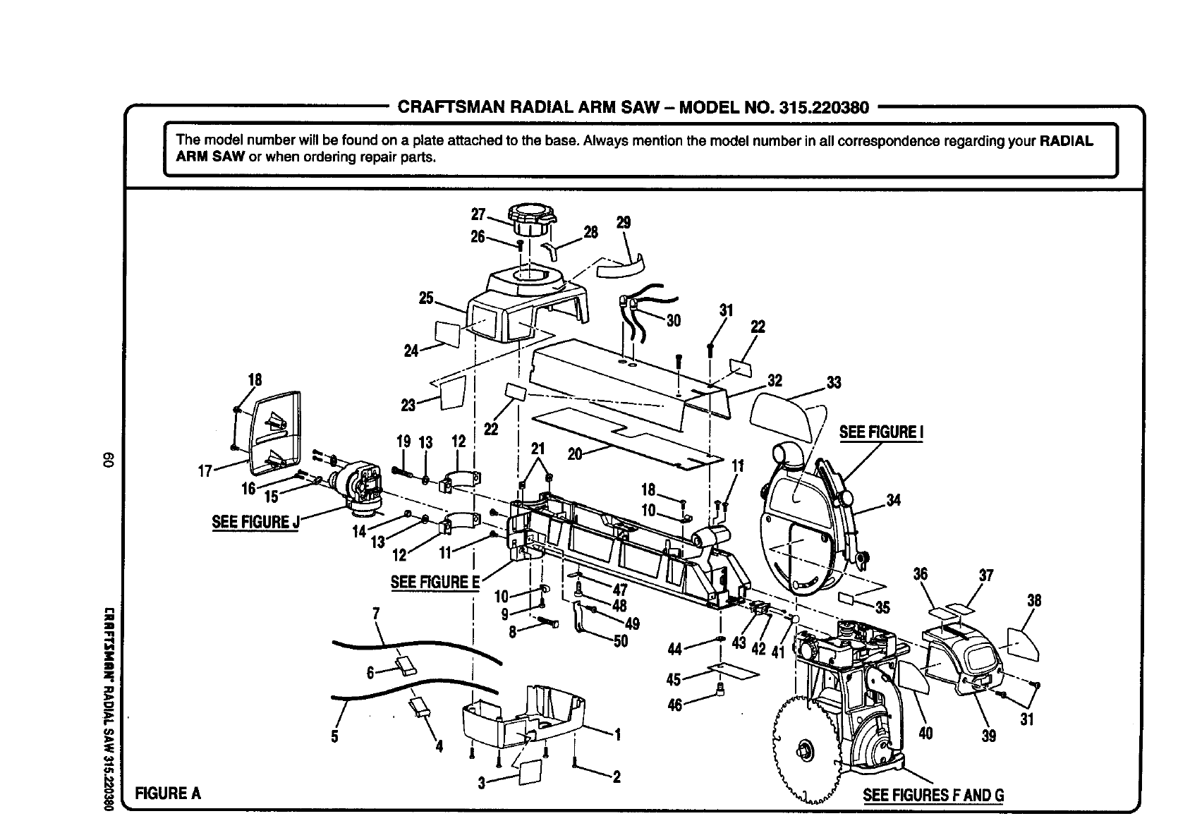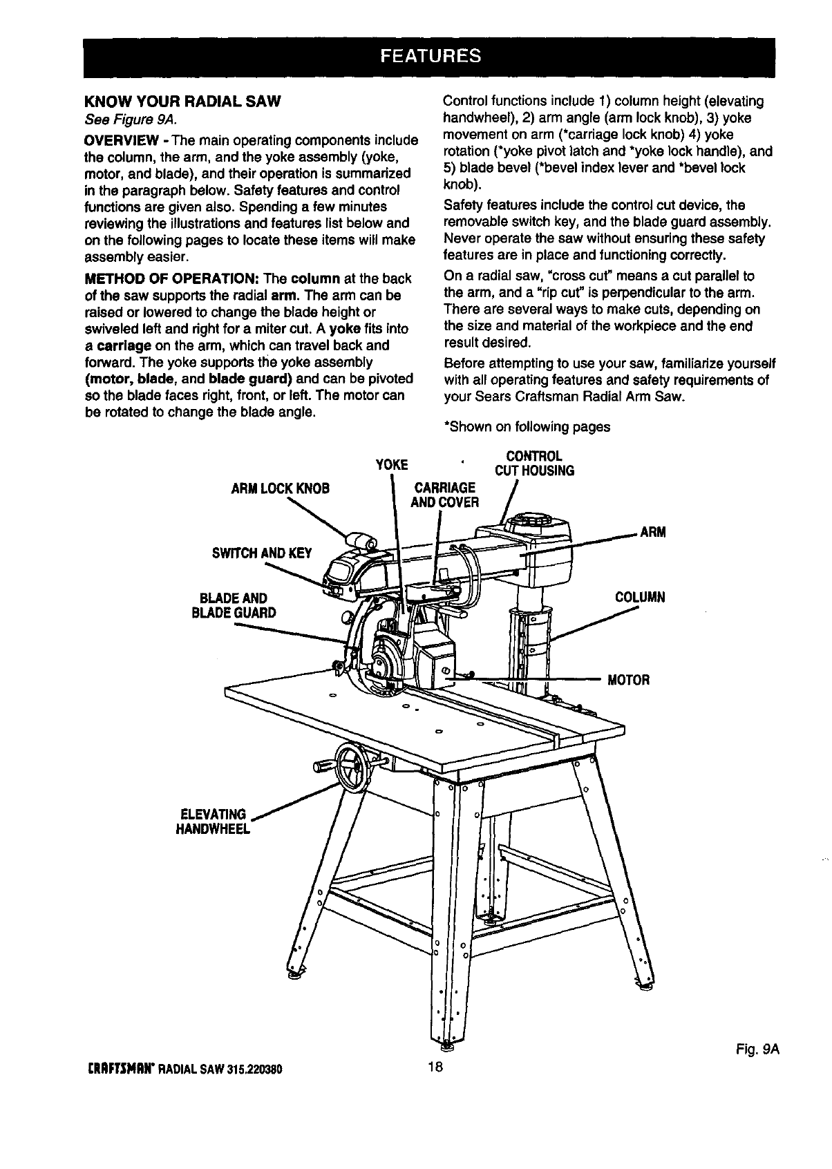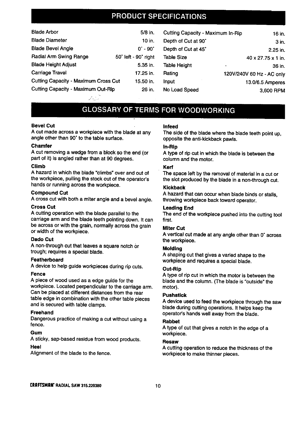 ICRAFTSMAN RADIAL ARM SAW - MODEL NO. 315.220380