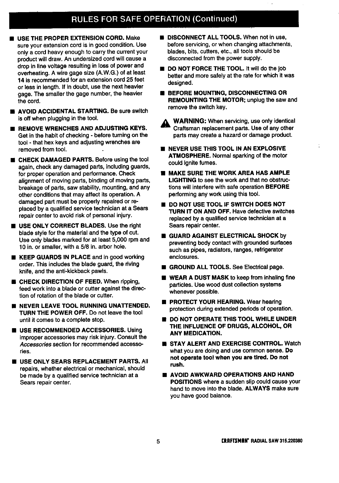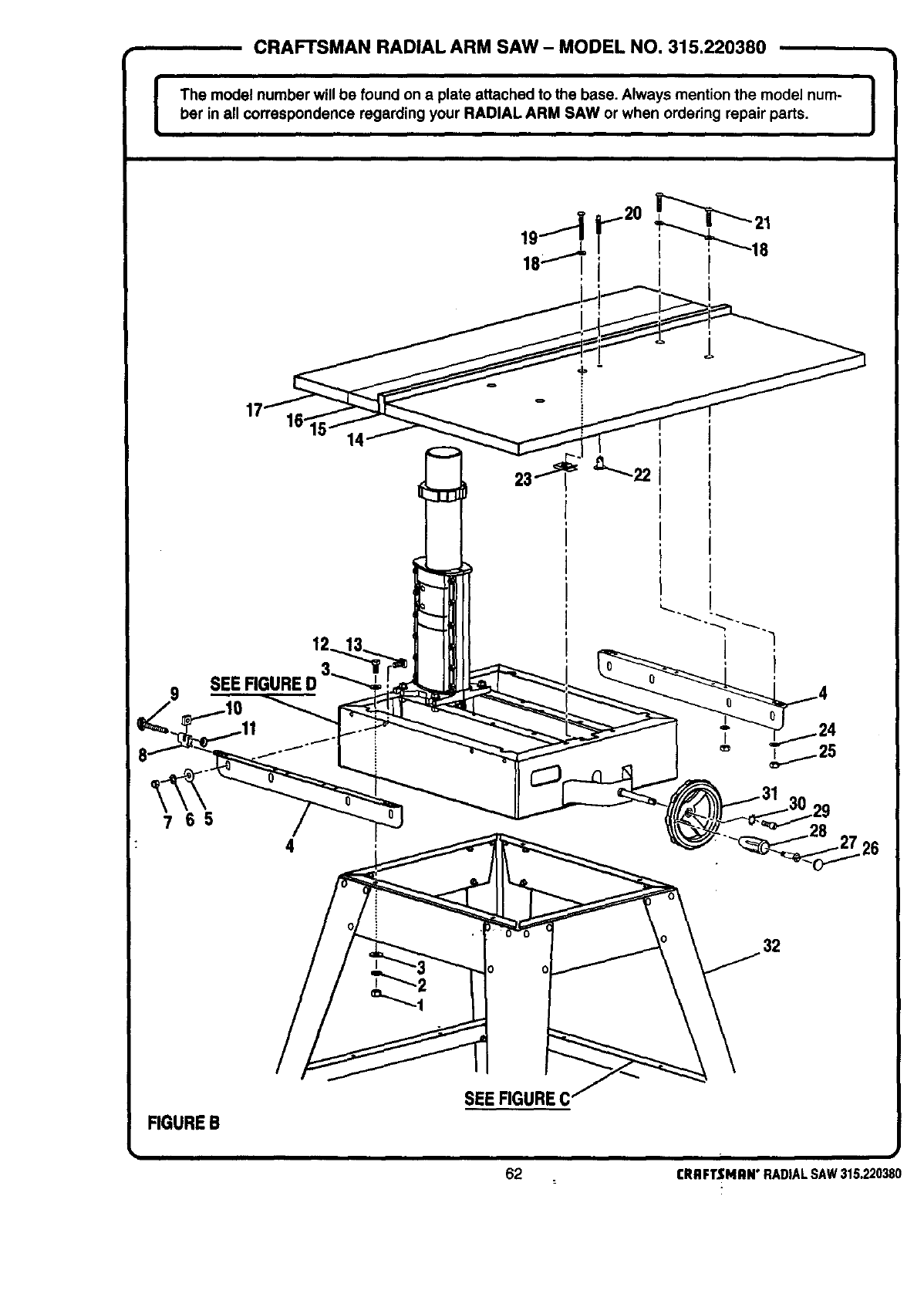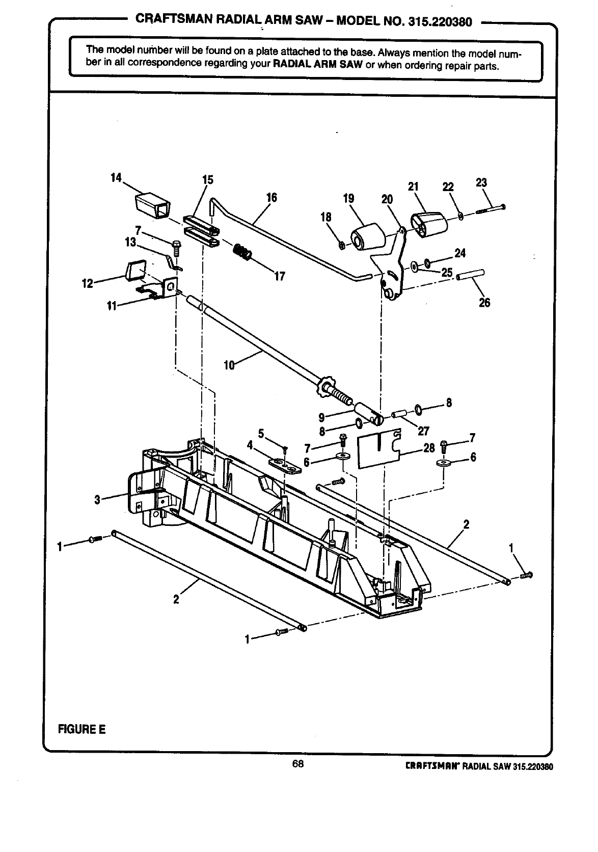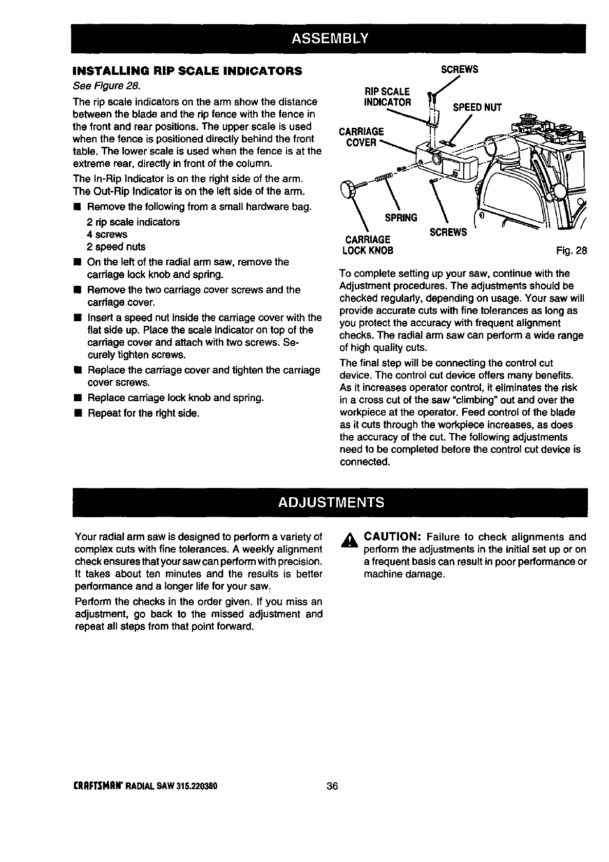 ICRAFTSMAN RADIAL ARM SAW - MODEL NO. 315.220380