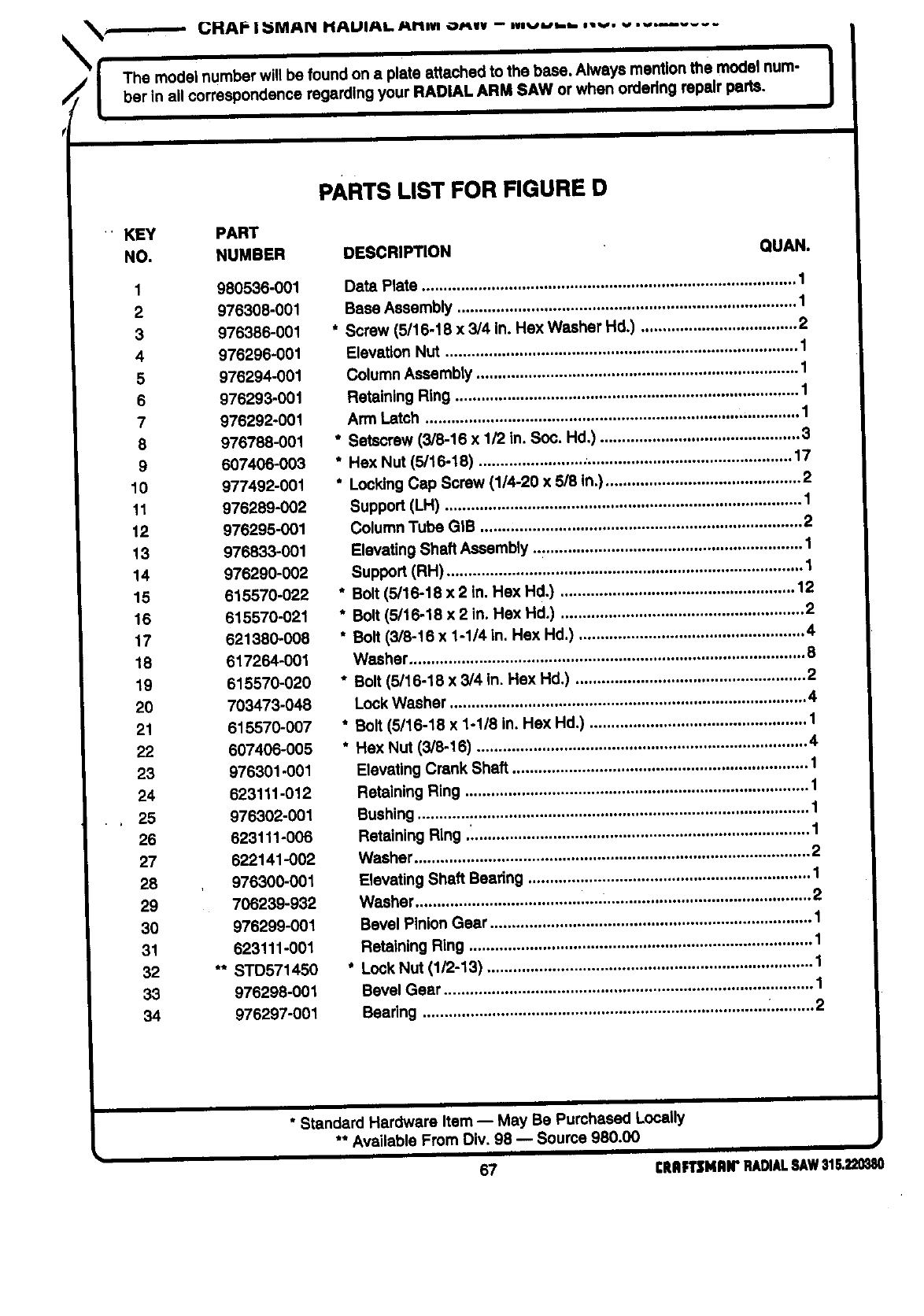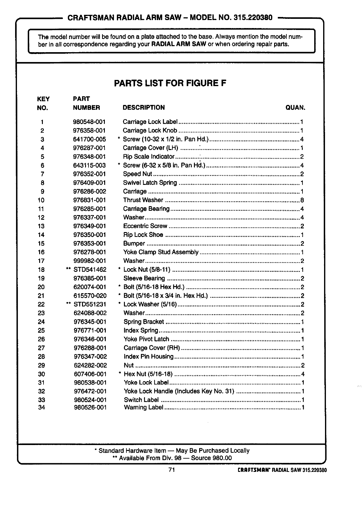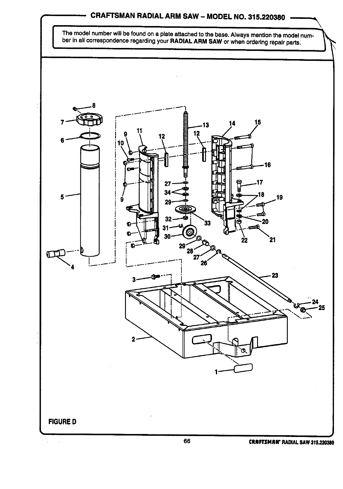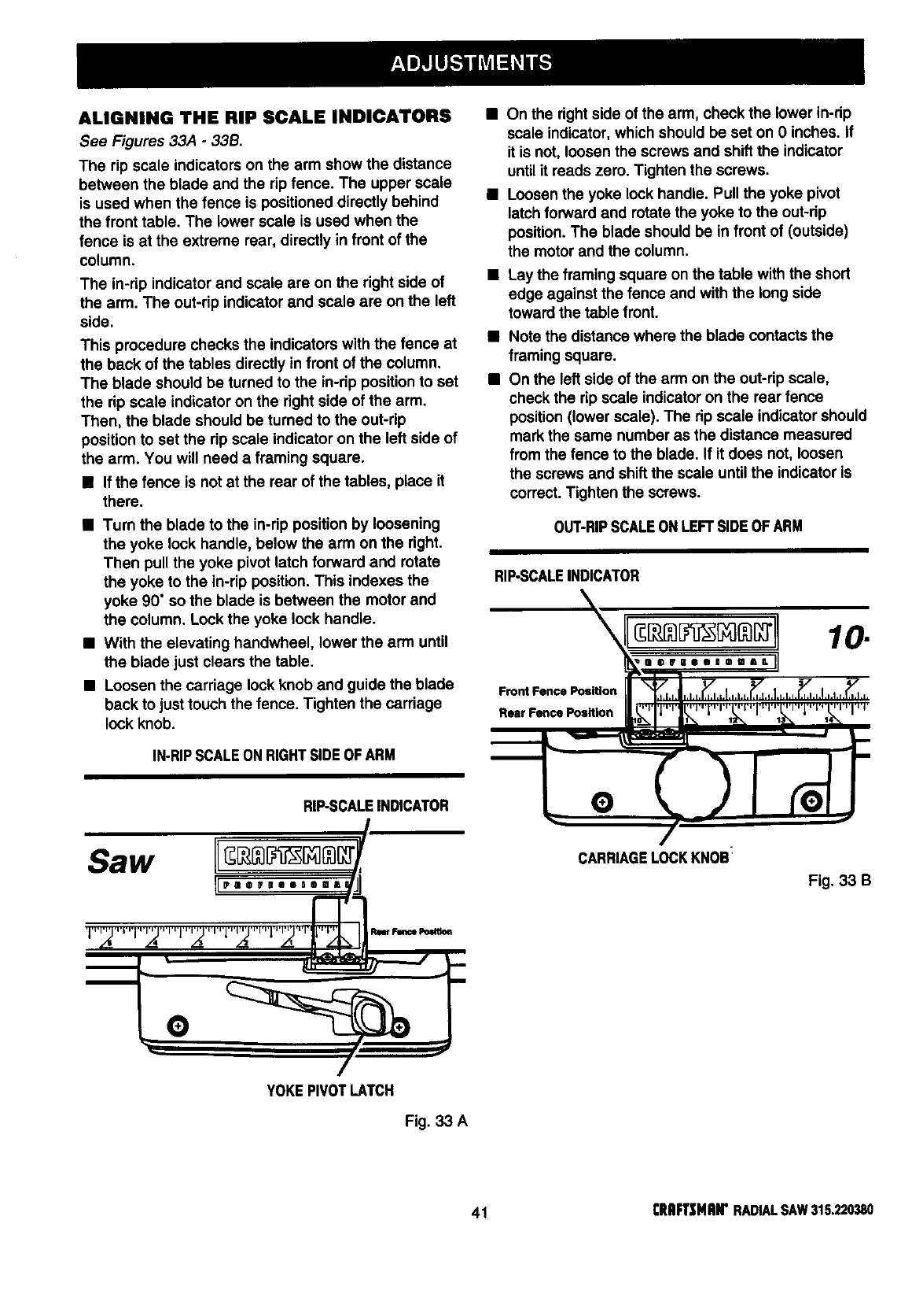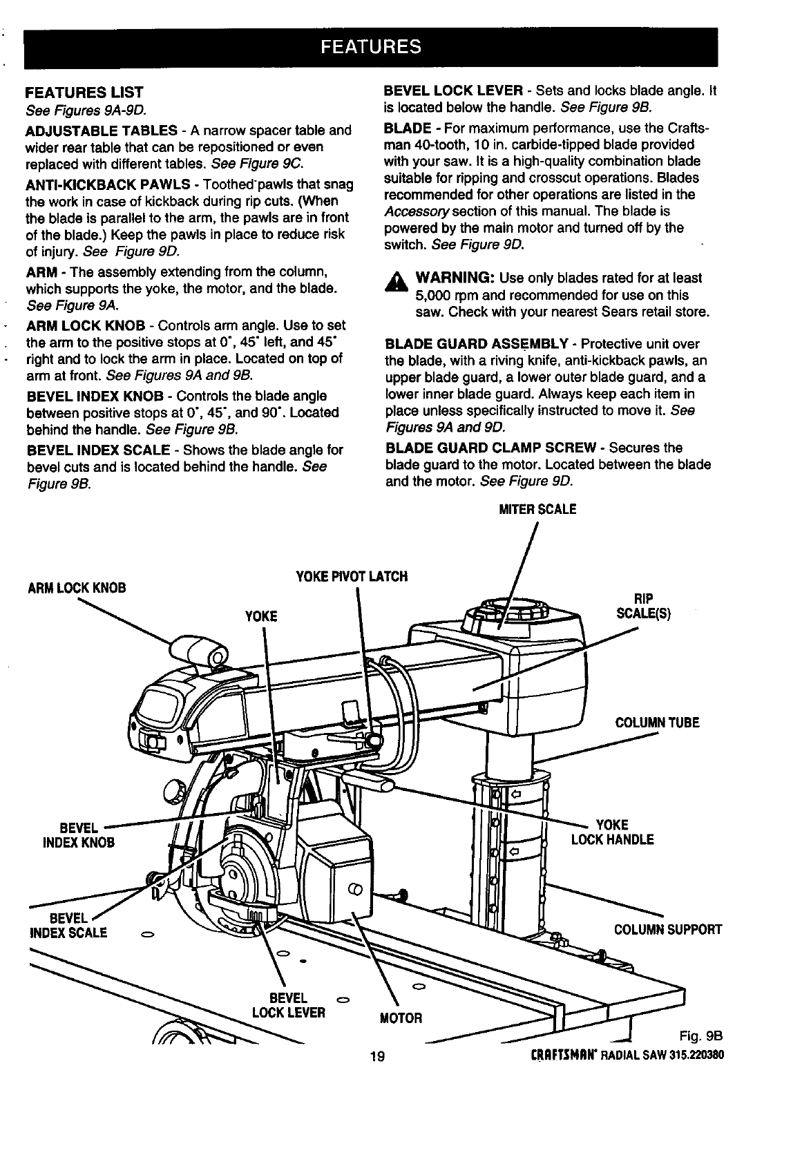 ICRAFTSMAN RADIAL ARM SAW - MODEL NO. 315.220380
