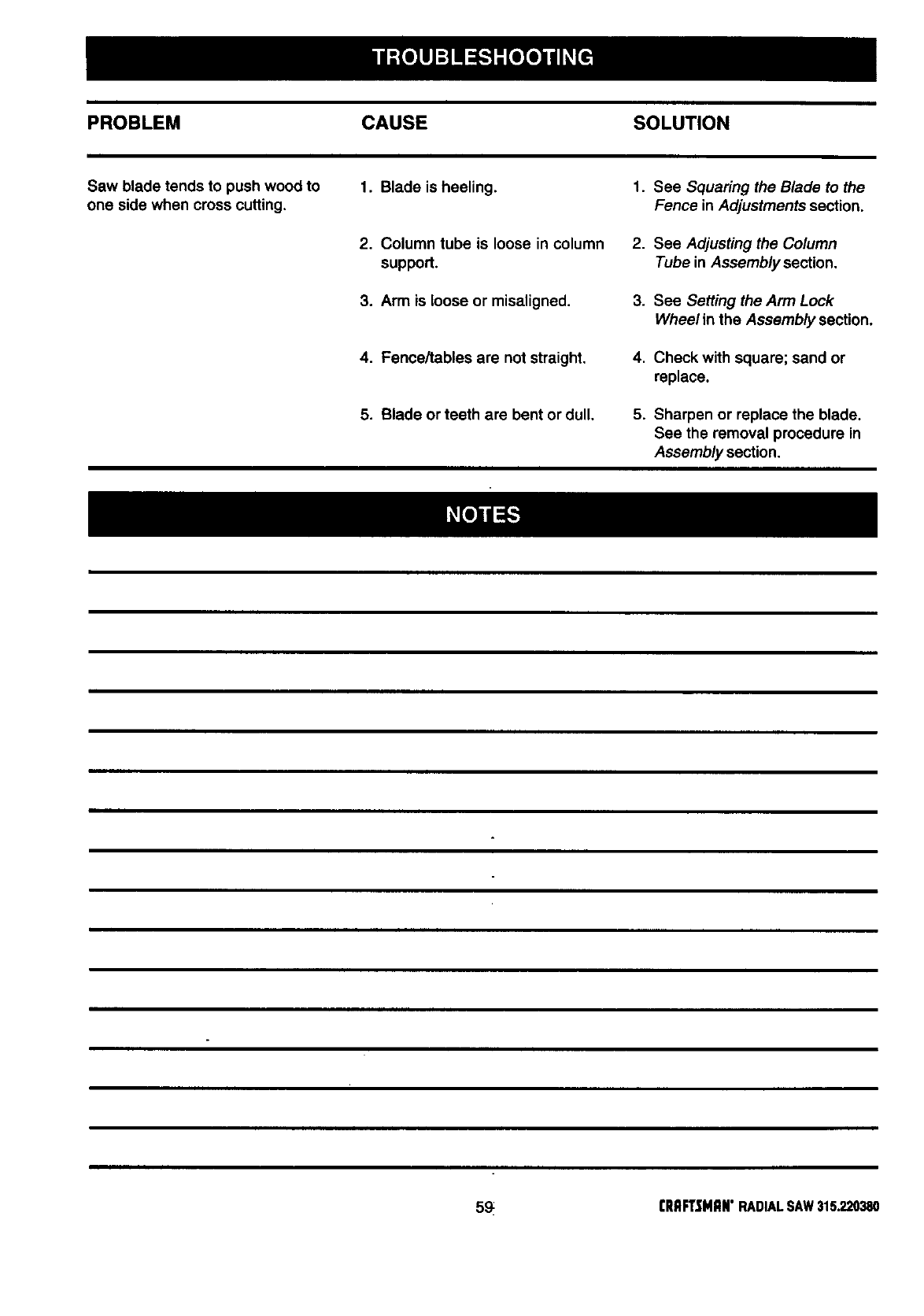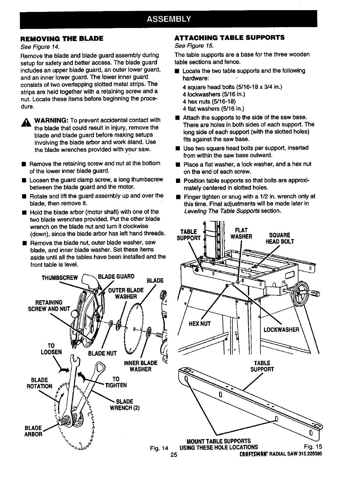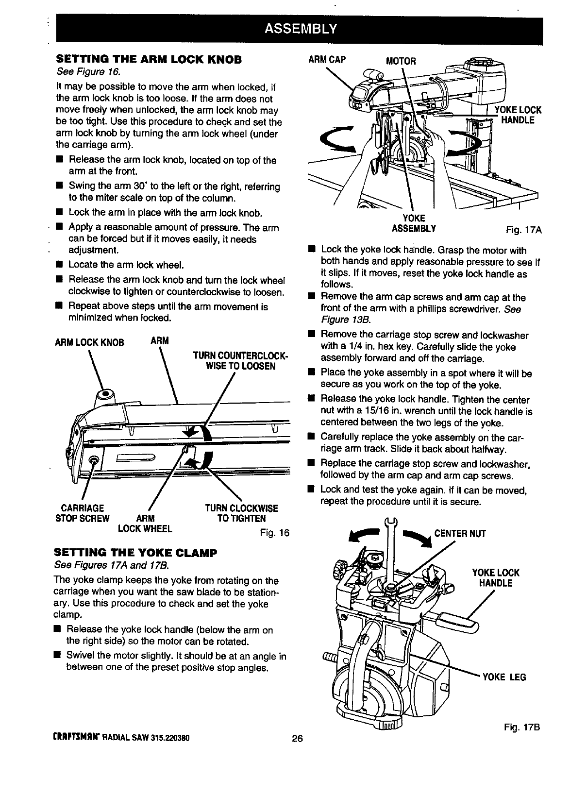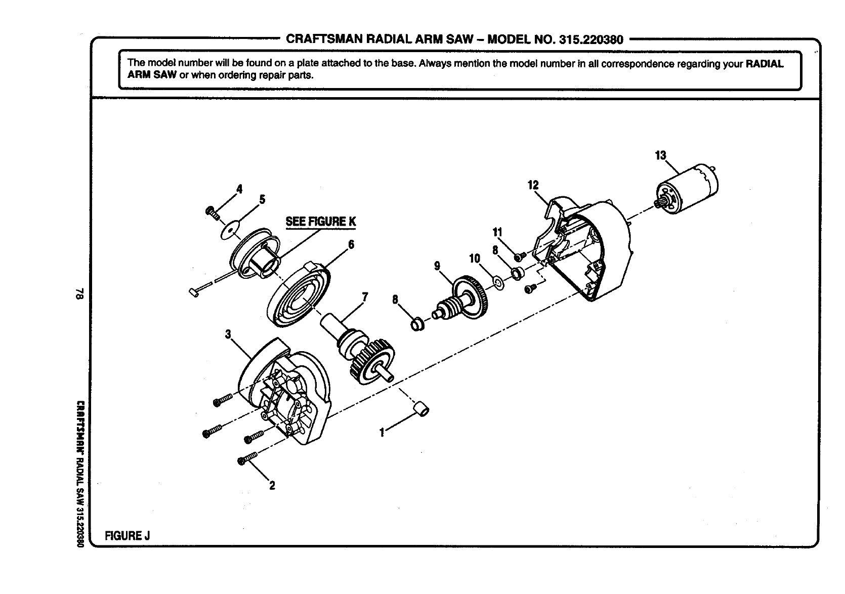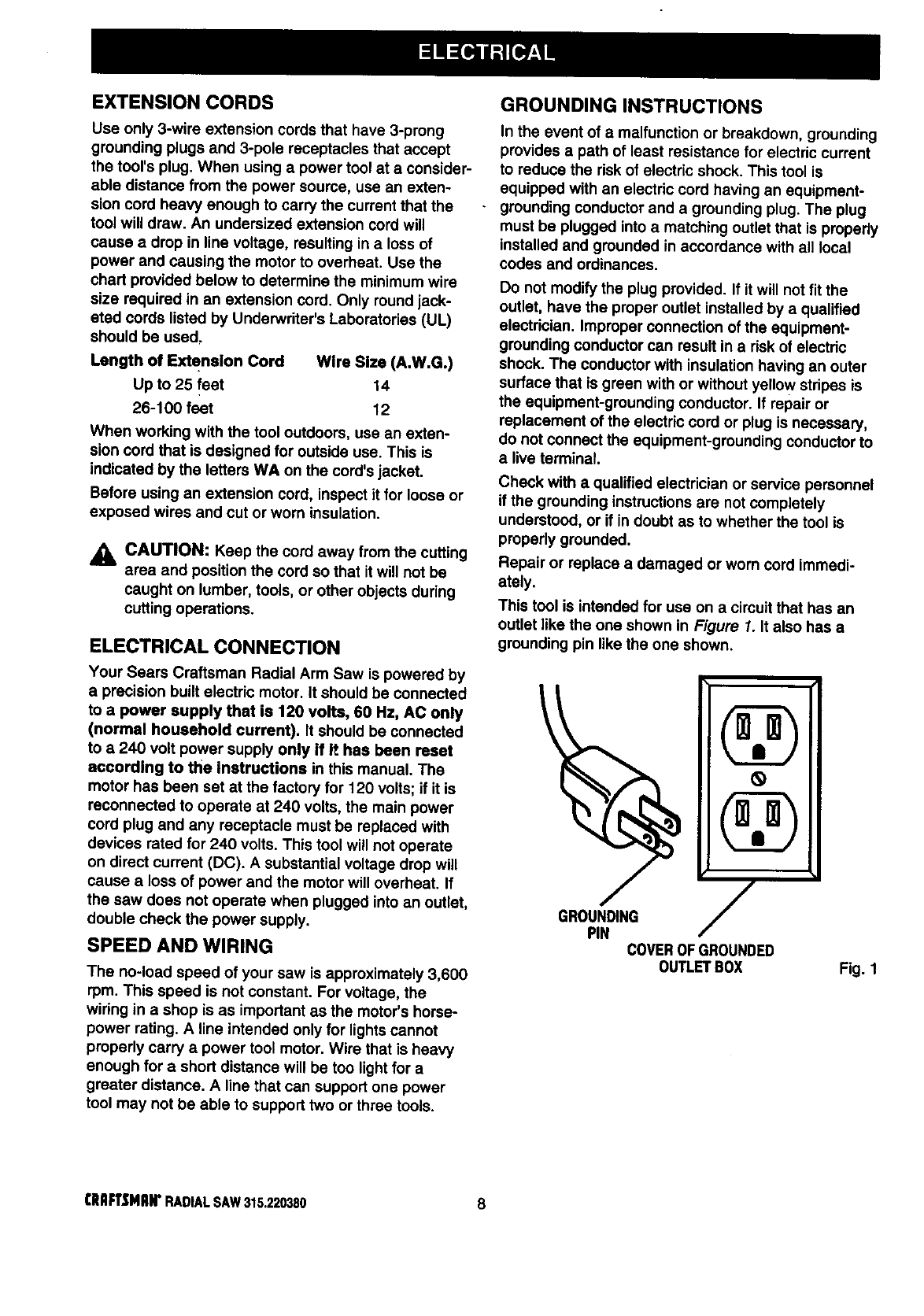 ICRAFTSMAN RADIAL ARM SAW - MODEL NO. 315.220380