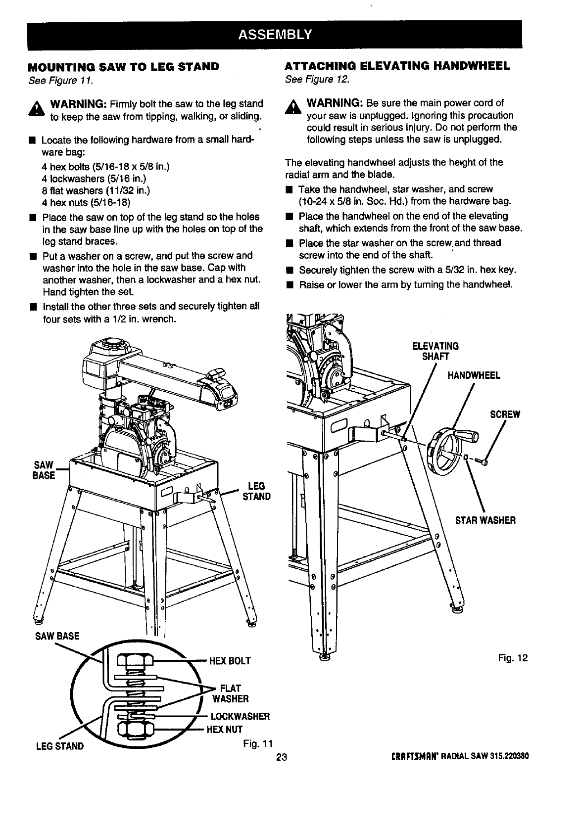Mounting Saw to Leg Stand ........................................................................................................................... 23