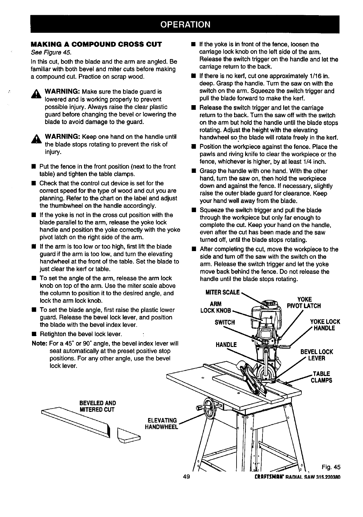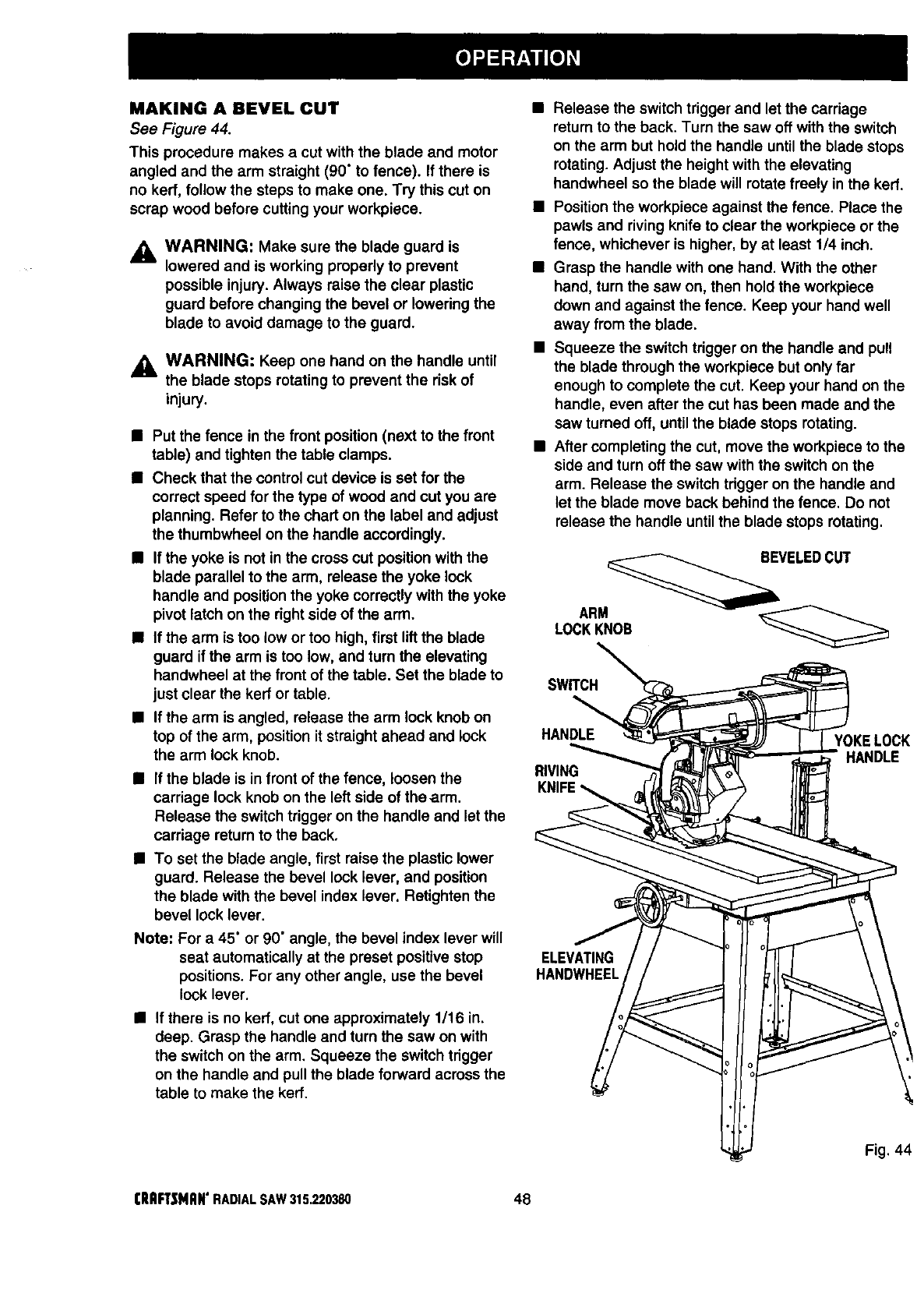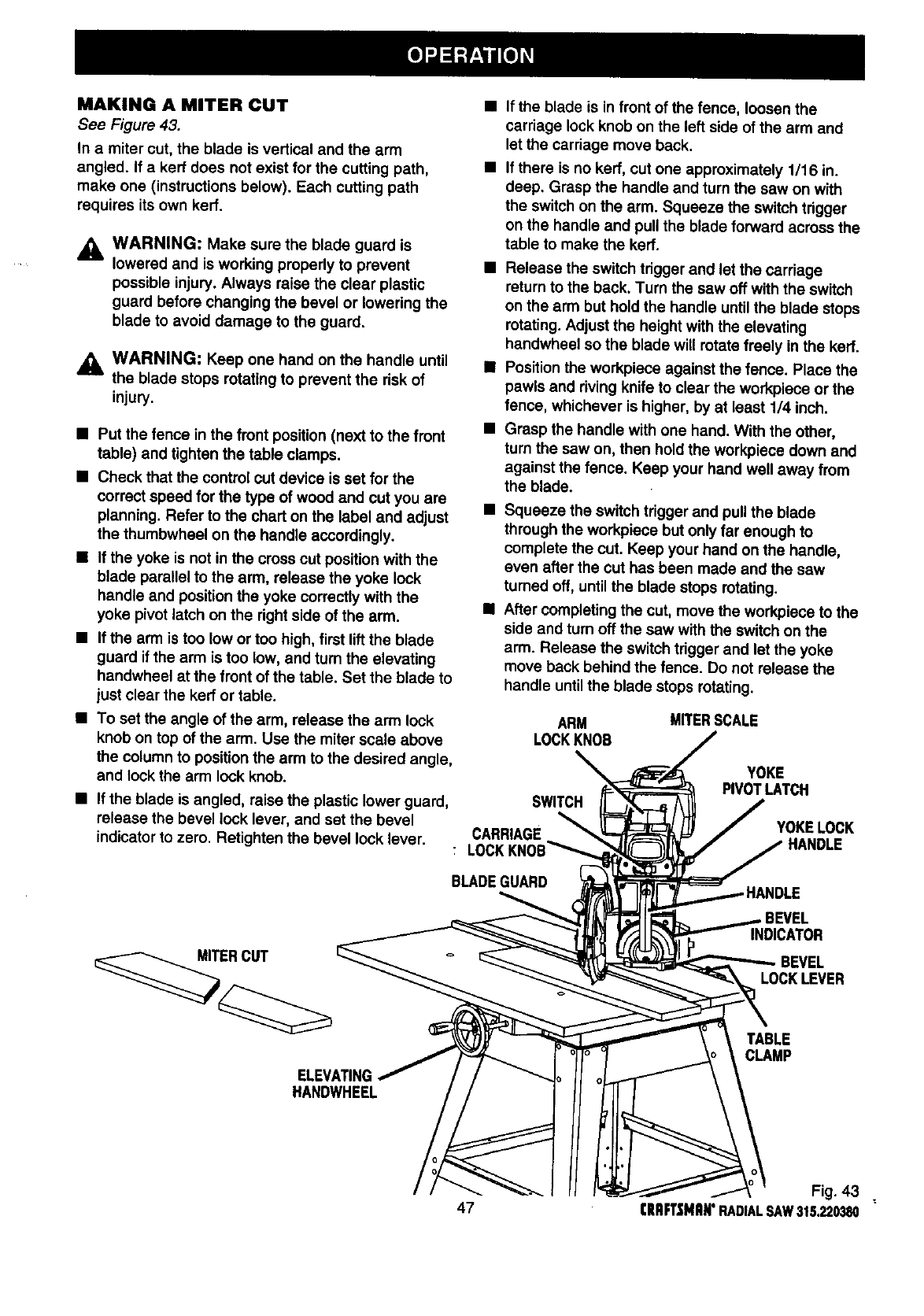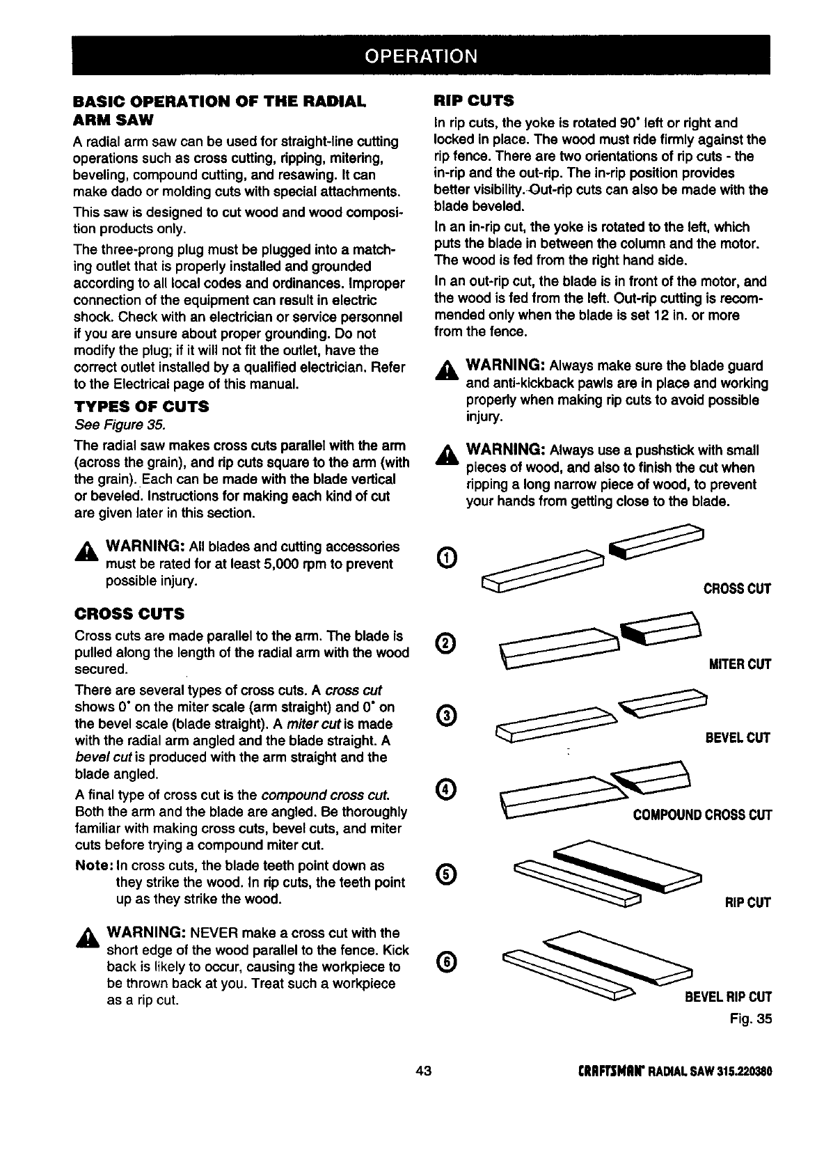 Basic Operation of the Radial Arm Saw ........................................................................................................ 43