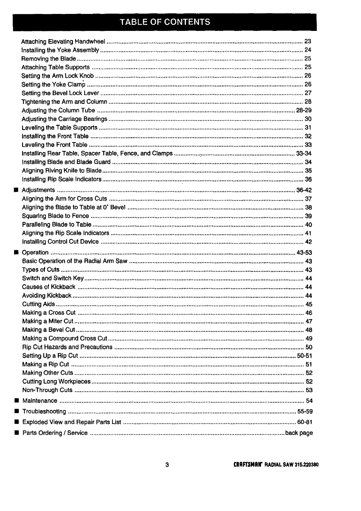 •Adjustments .............................................................................................................................................. 36-42