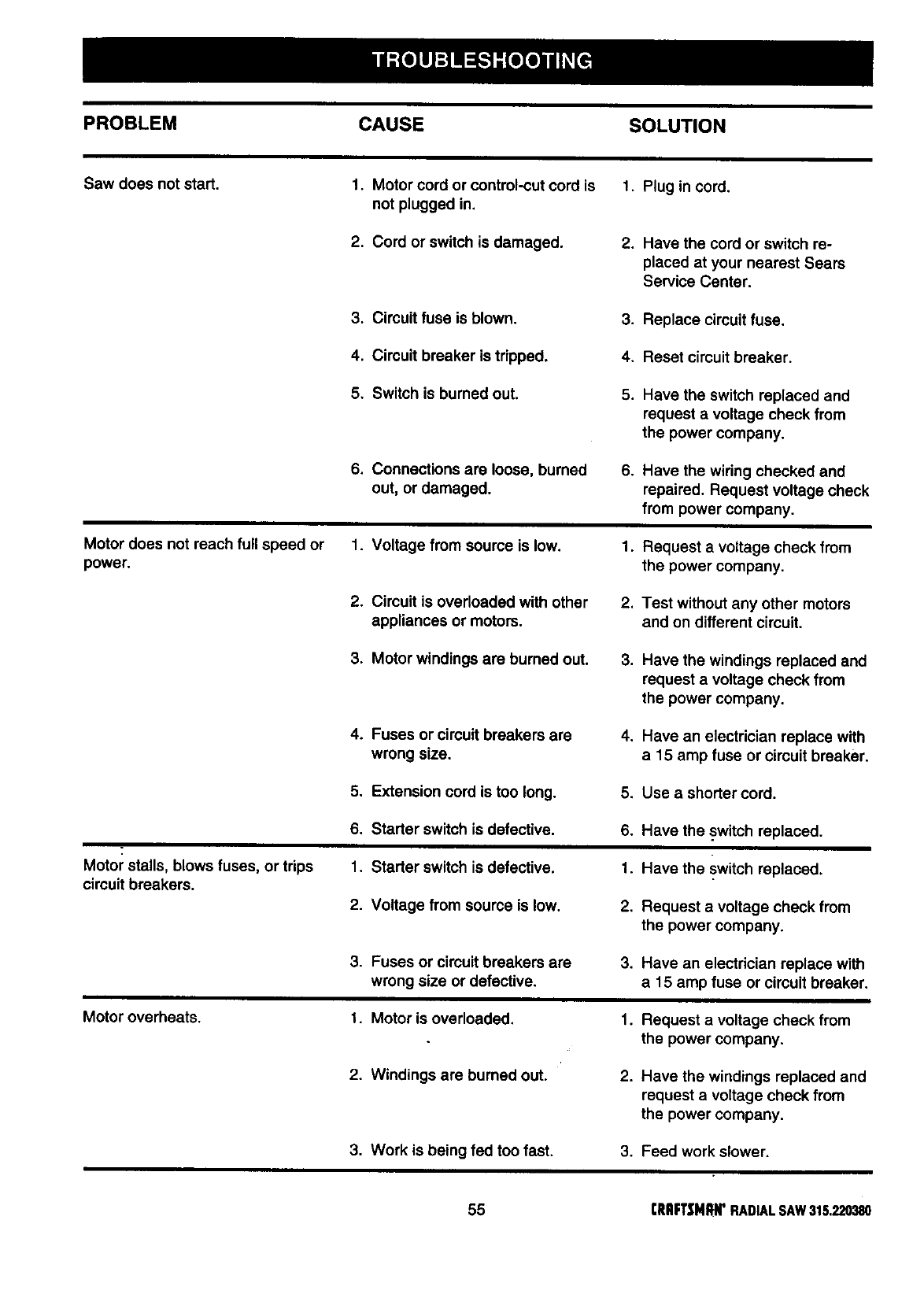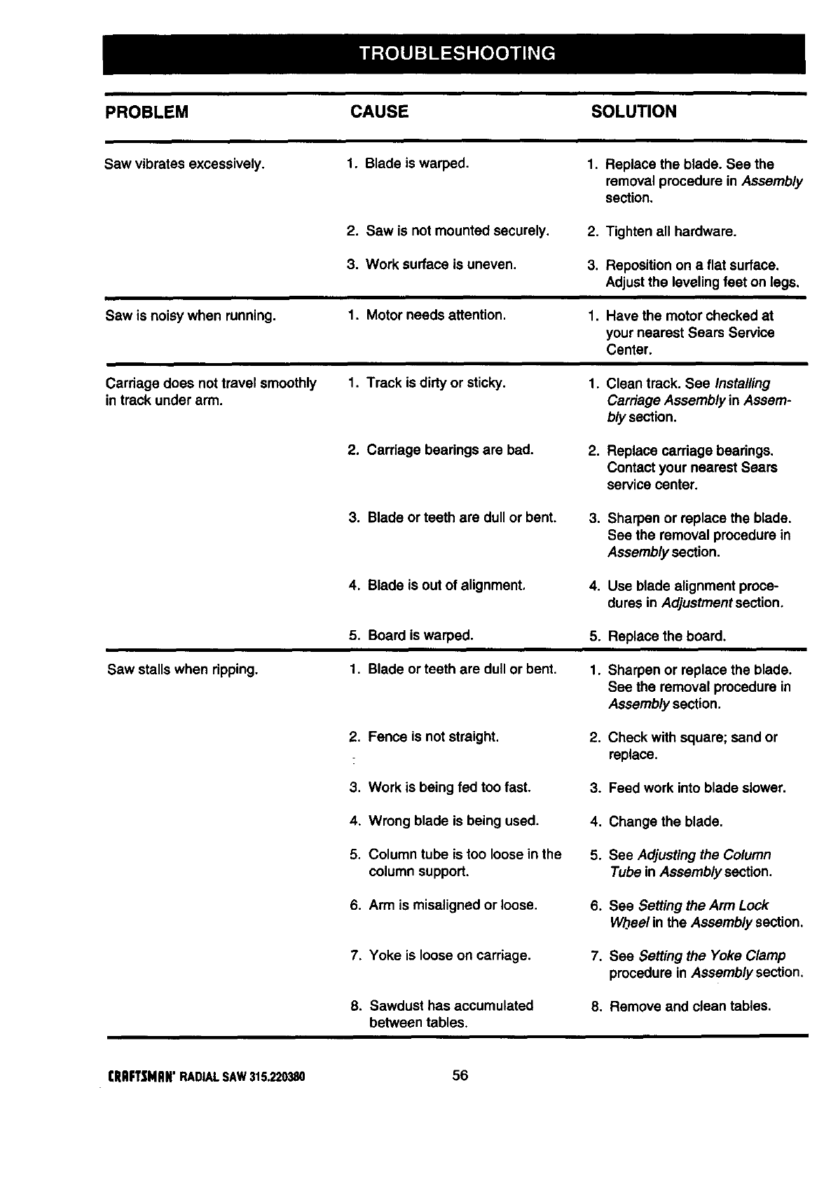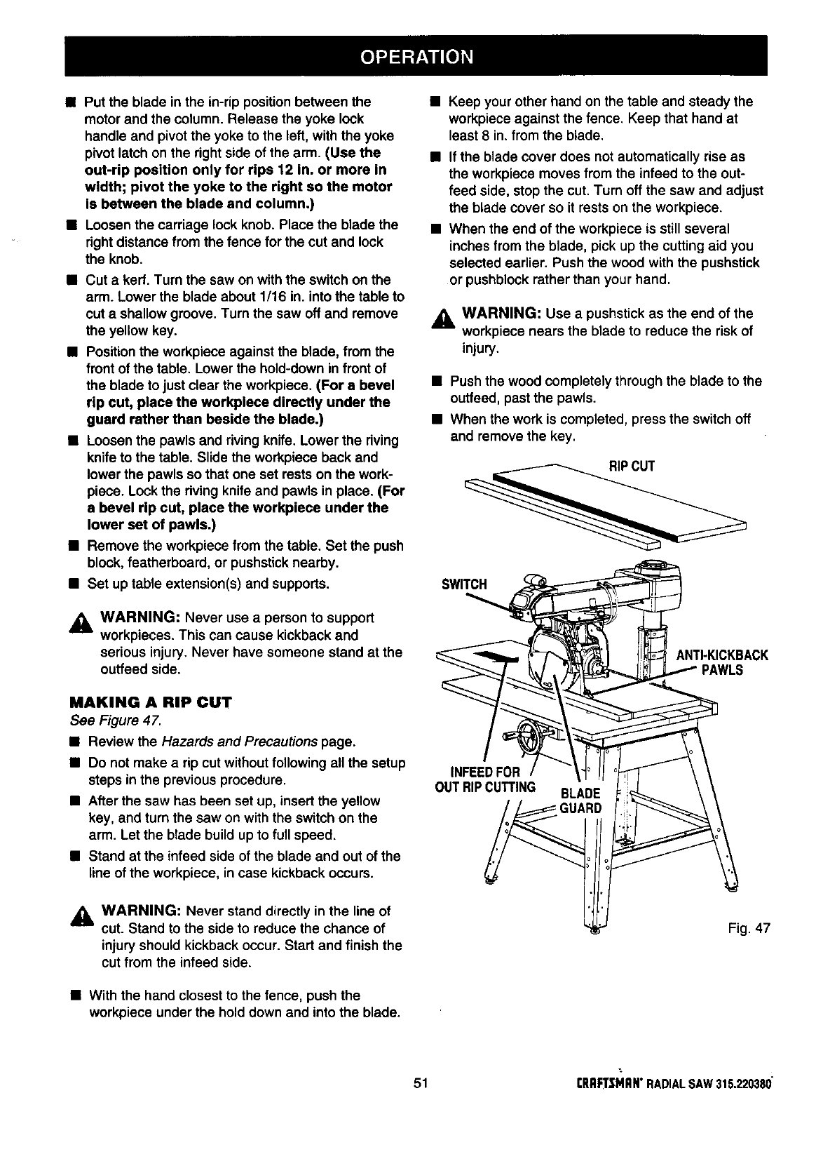 CRAFTSMAN Saw Radial Manual 99020056 CRAFTSMAN Saw Radial Owner's Manual, CRAFTSMAN Saw Radial installation guides