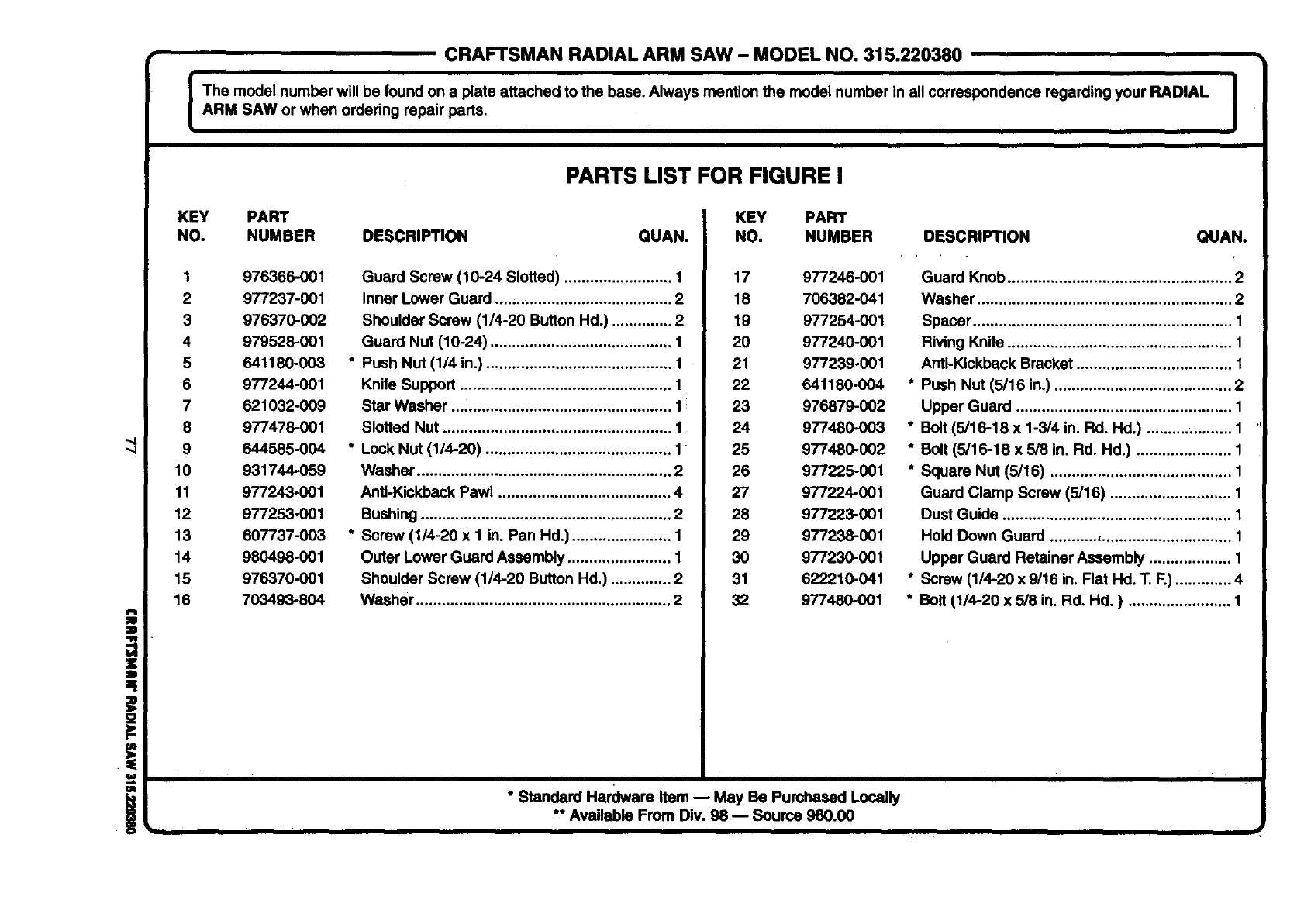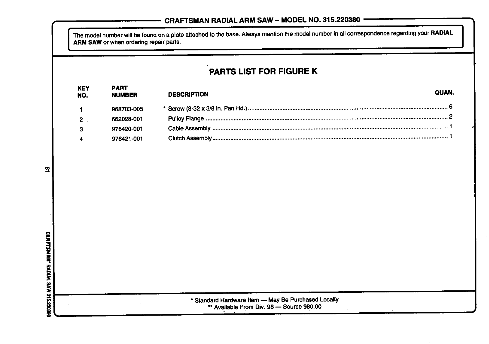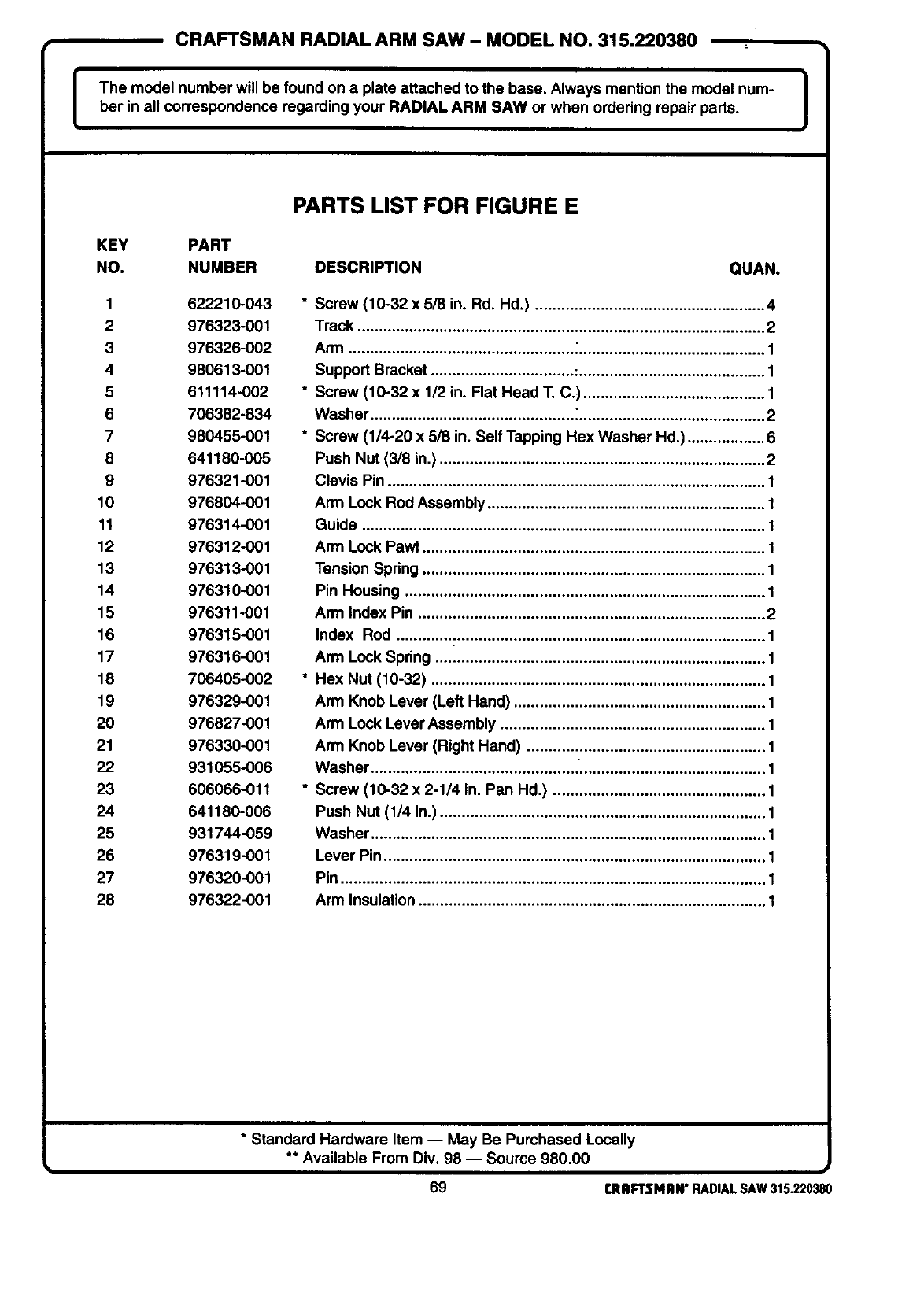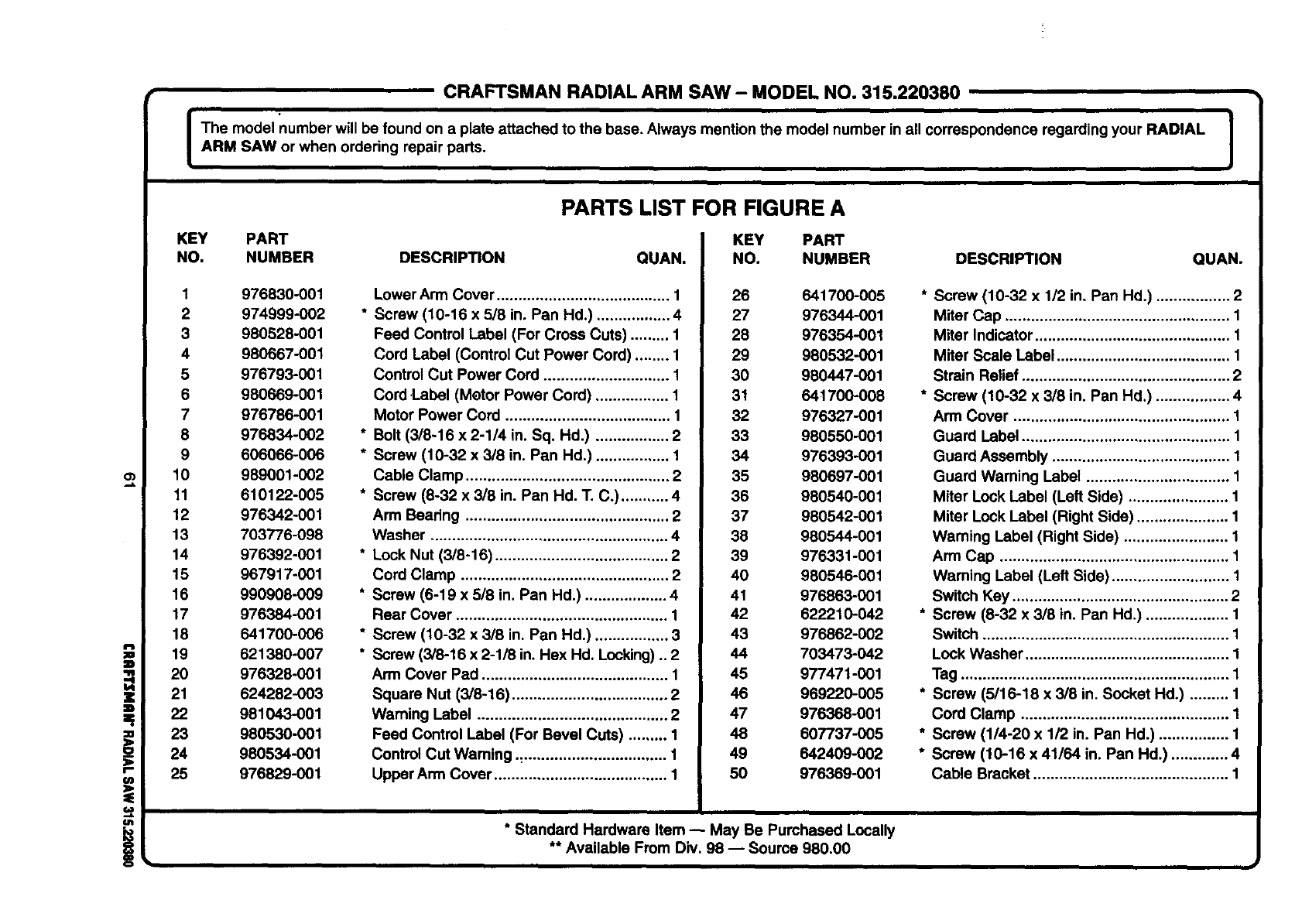 ARM SAW or when ordedng repair parts. I